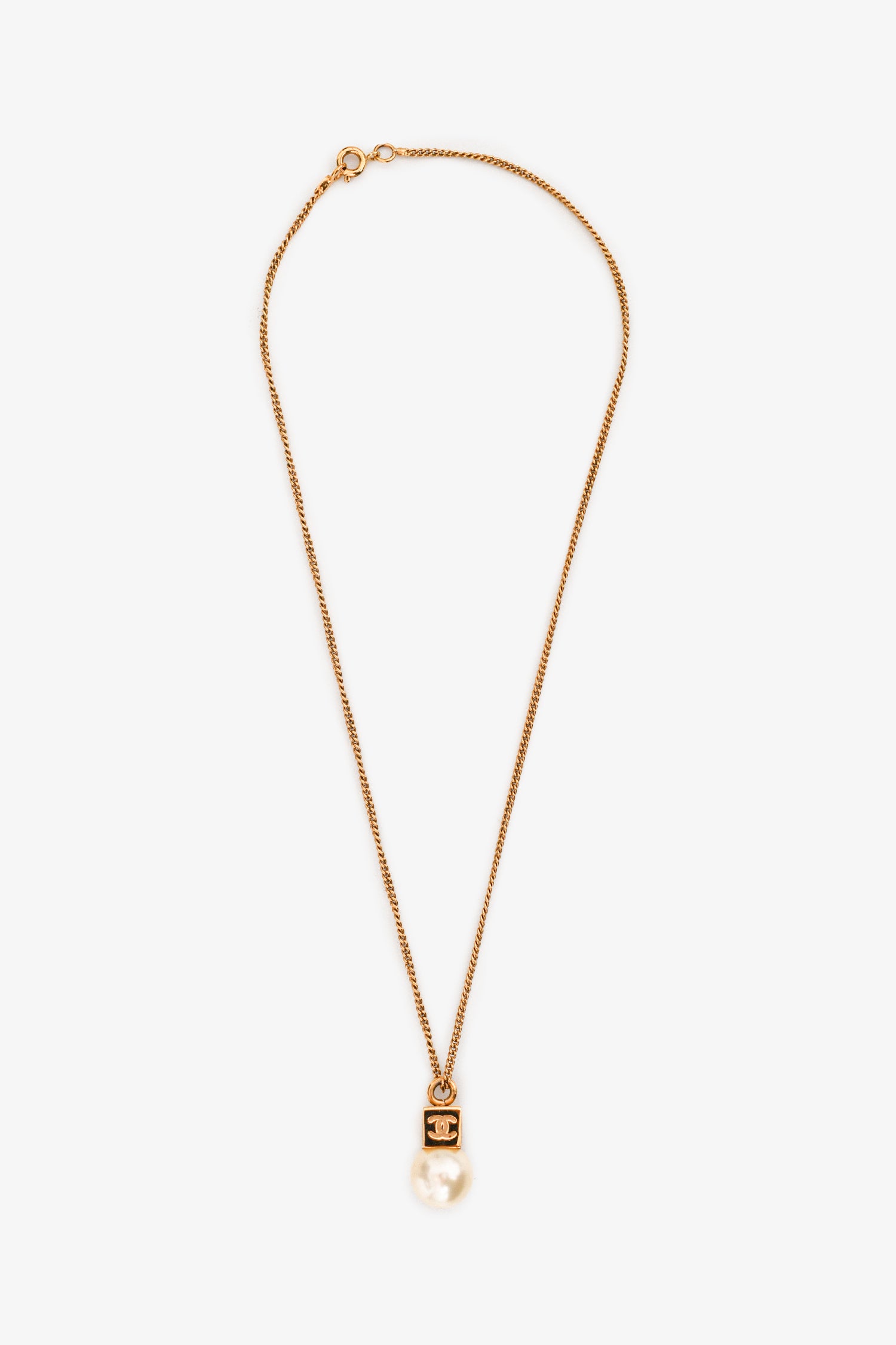 Pre-Loved Chanel™ Gold Tone Coco Mark Pearl Necklace