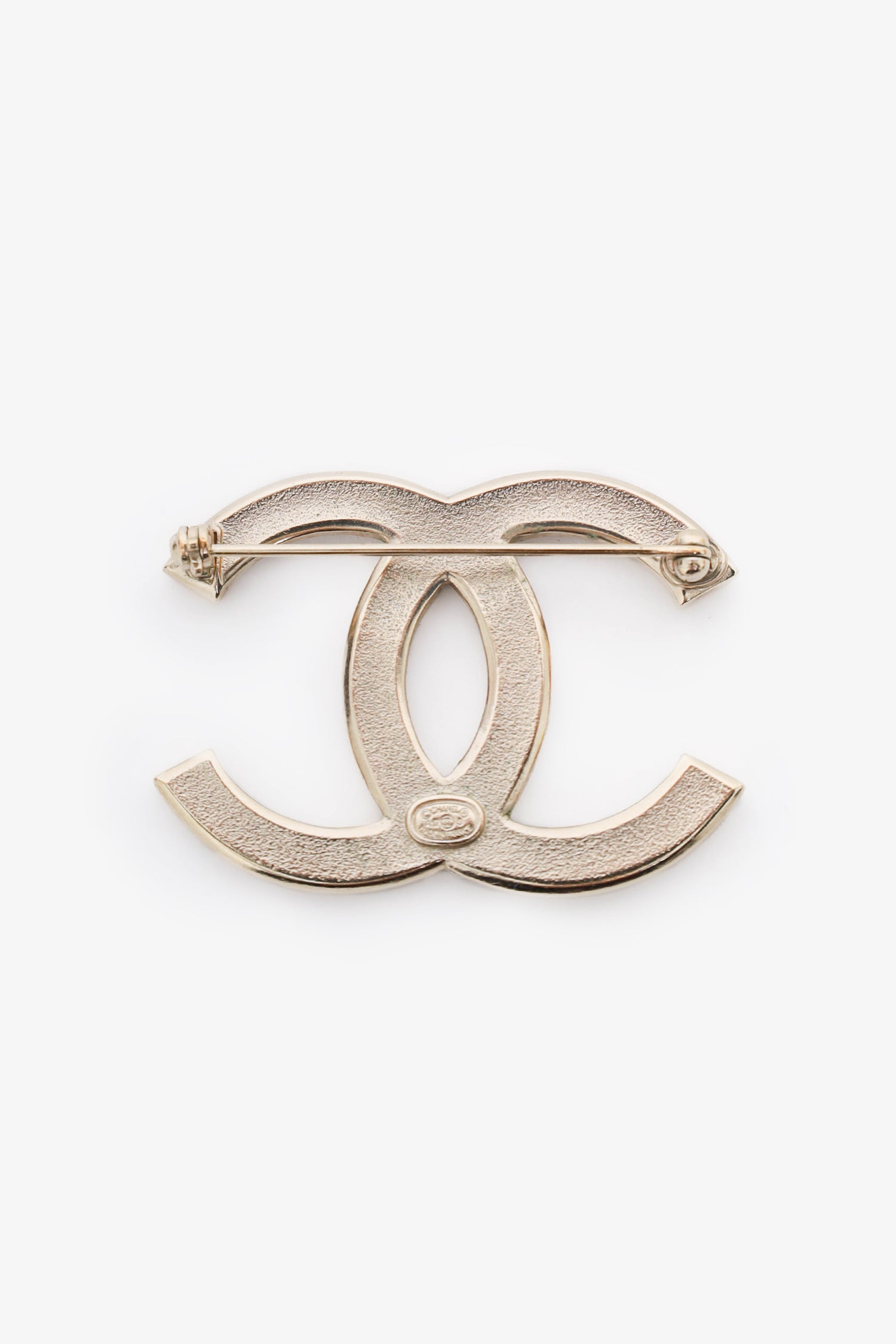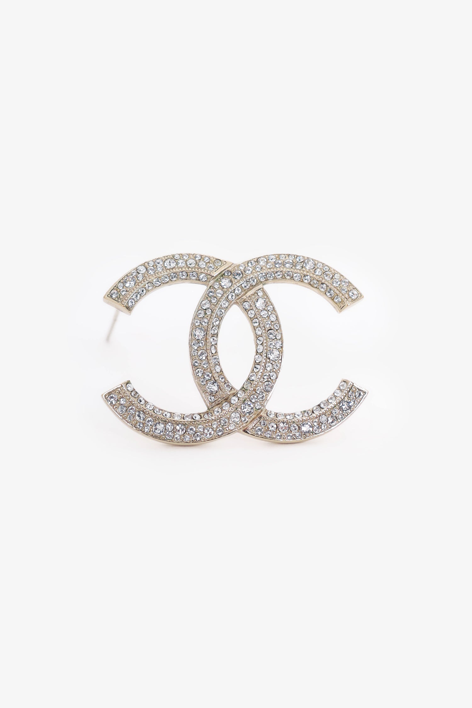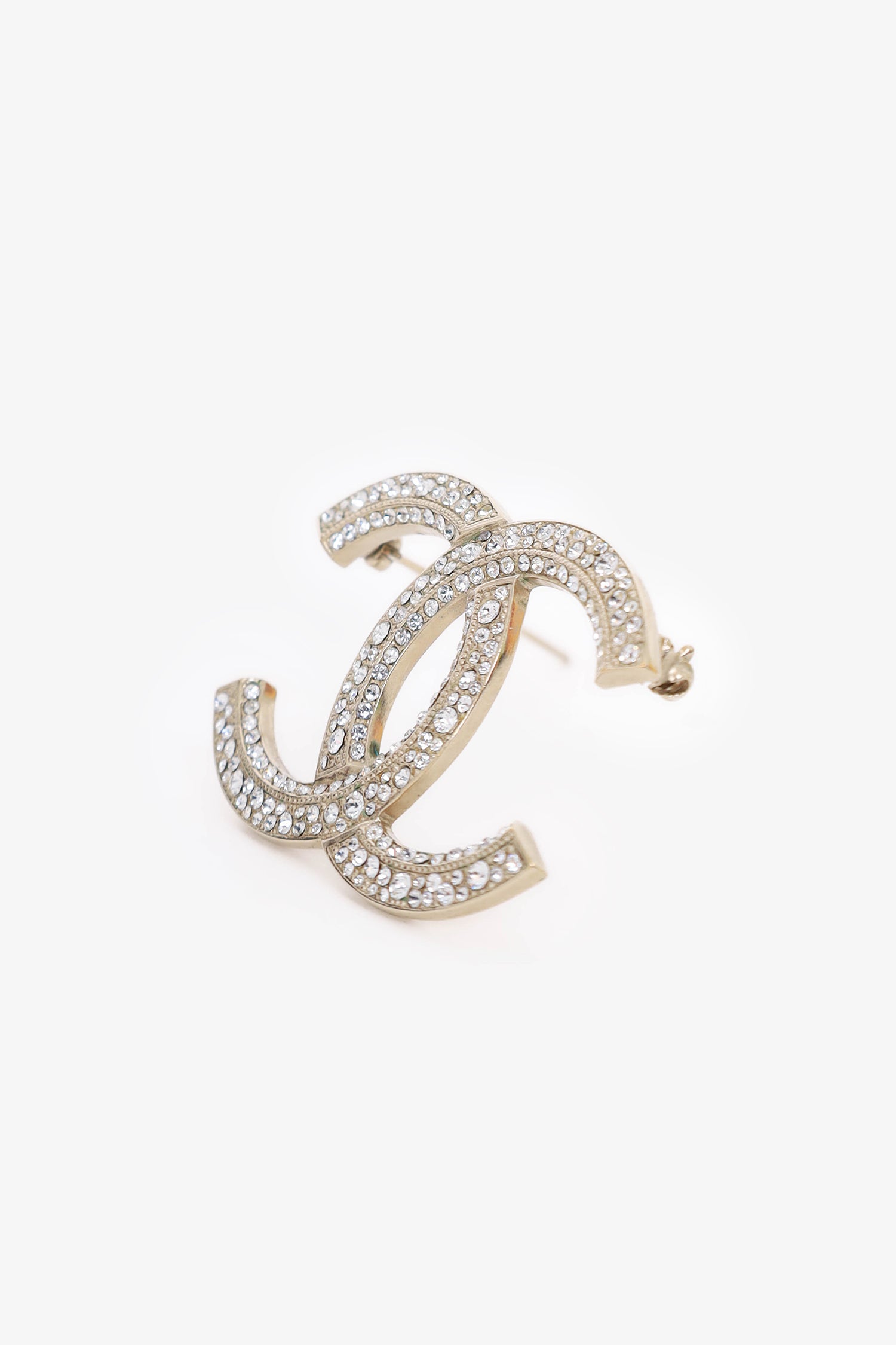Refresh availabilityPre-Loved Chanel™ Gold Tone Crystal CC Brooch. Push-hook closure. Silver-tone hardware.