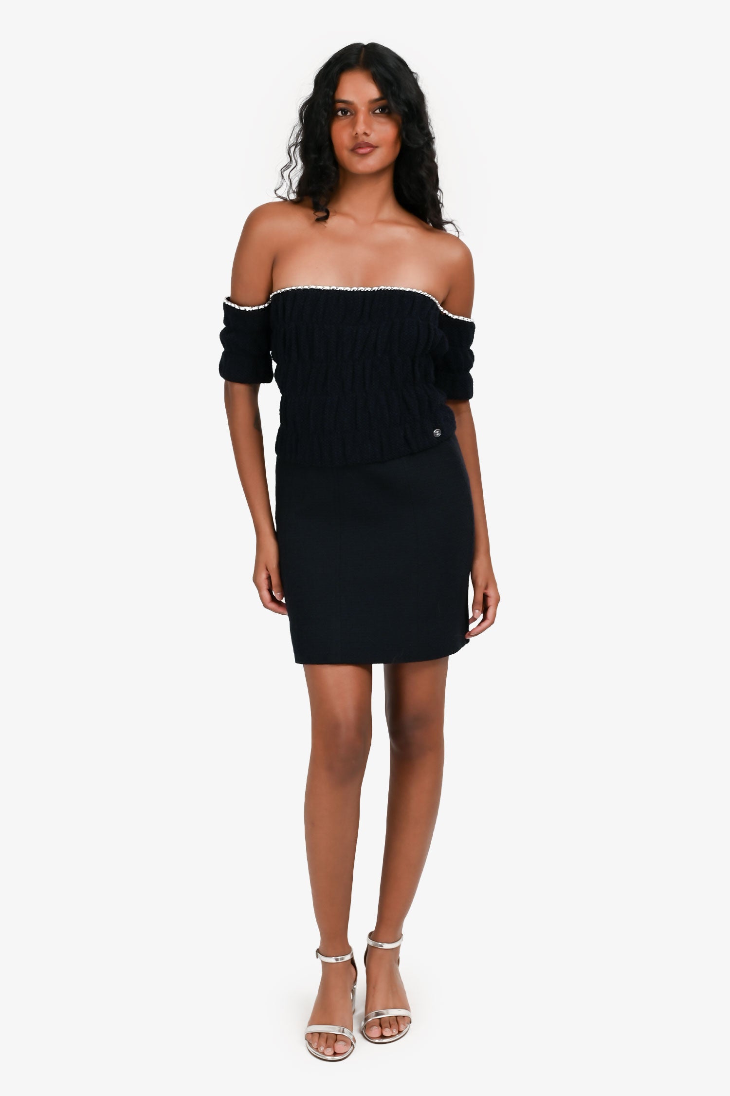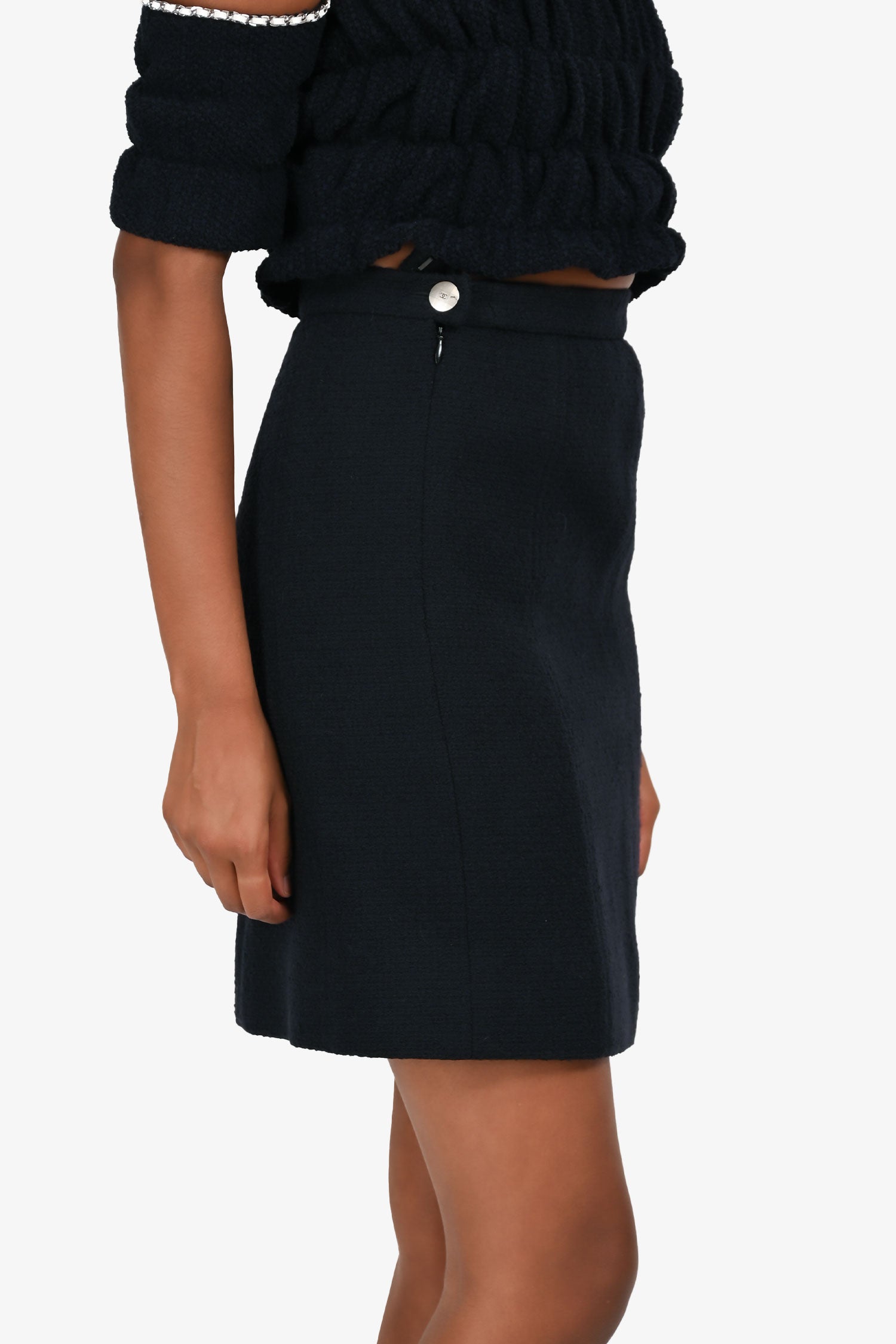 Pre-Loved Chanel™ Navy Blue Wool Pencil Skirt Size 36