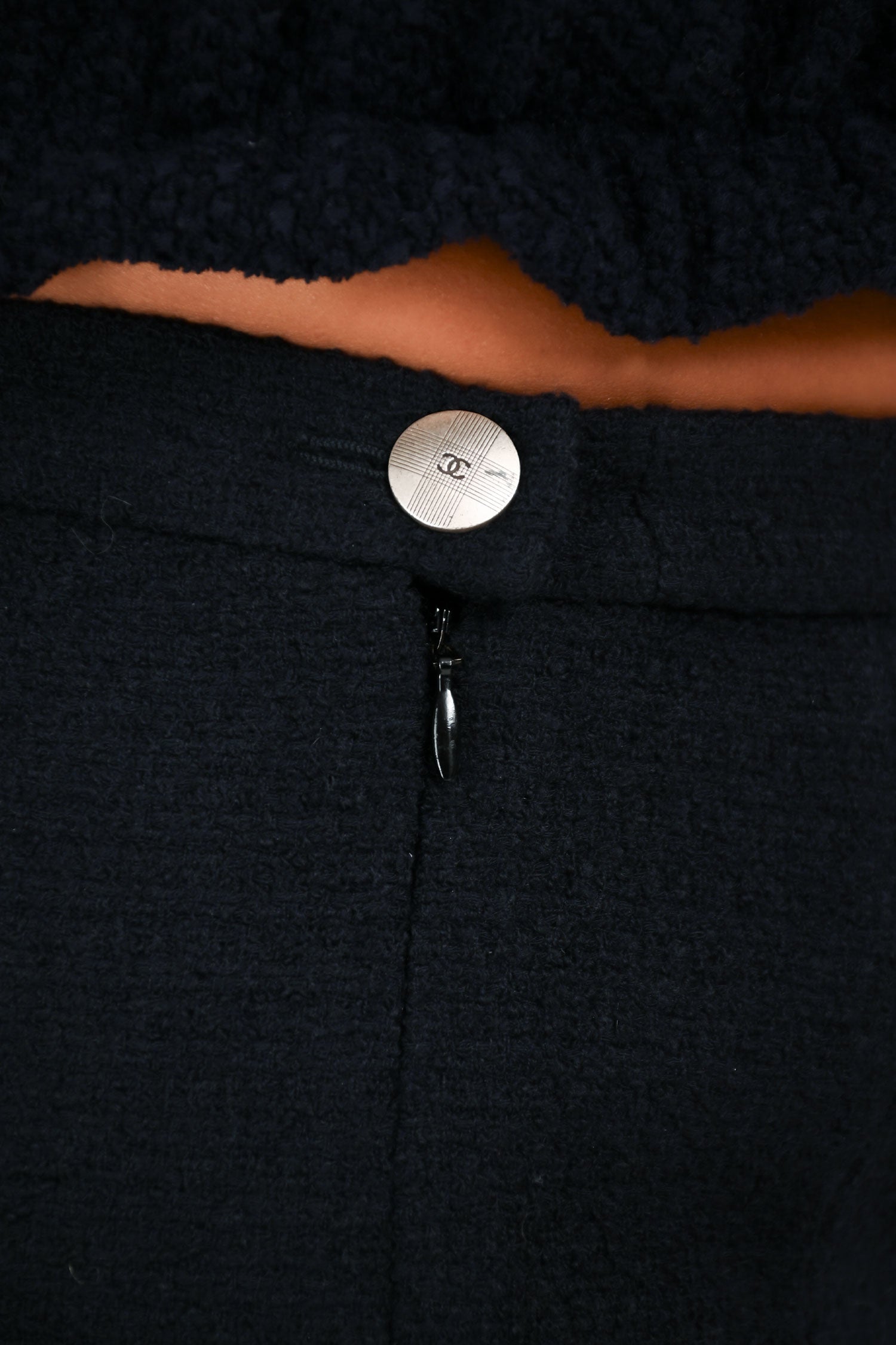 Refresh availabilityPre-Loved Chanel™ Navy Blue Wool Pencil Skirt. Back zip and button closure. Fully lined. Tonal stitching.