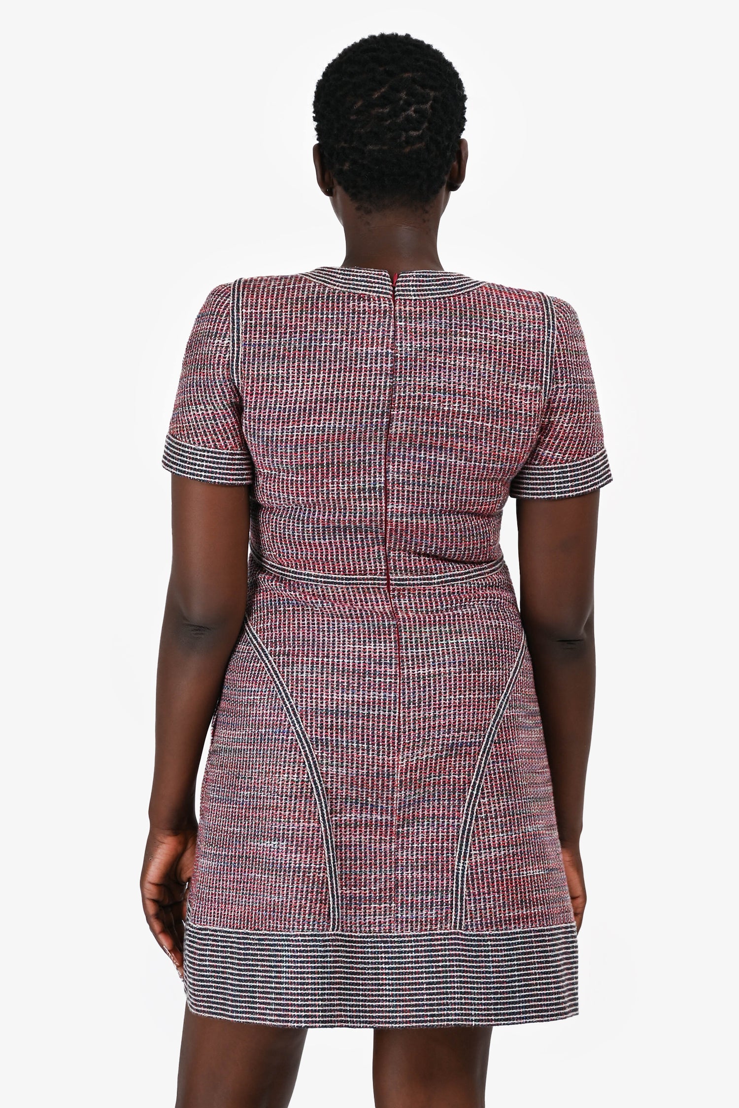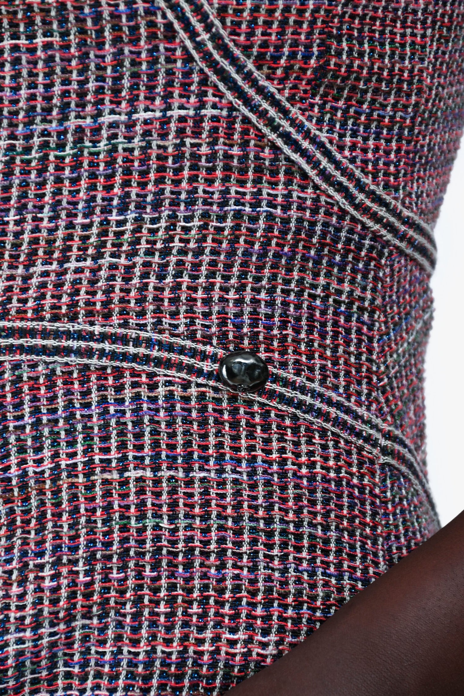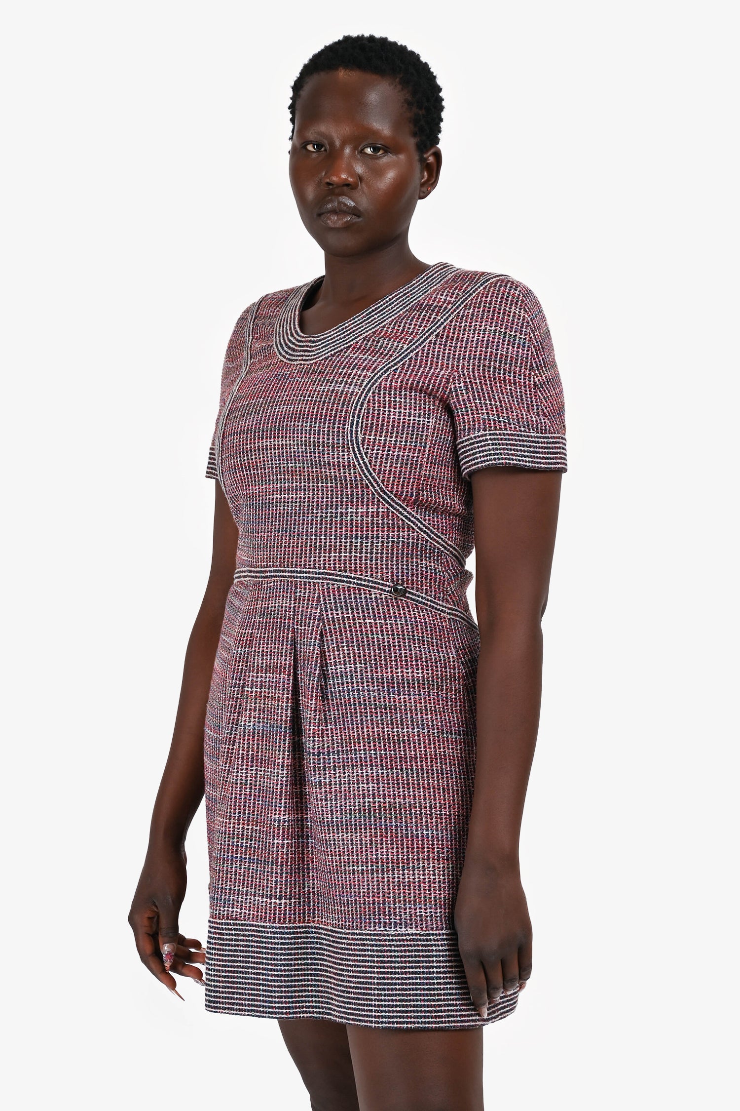 Refresh availabilityPre-Loved Chanel™ Pink/Blue Metallic Tweed Dress. Round neck. Rear zip closure. Lined. Front pockets.