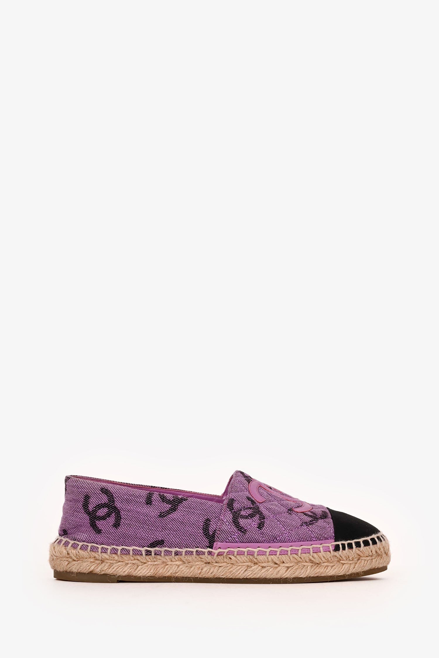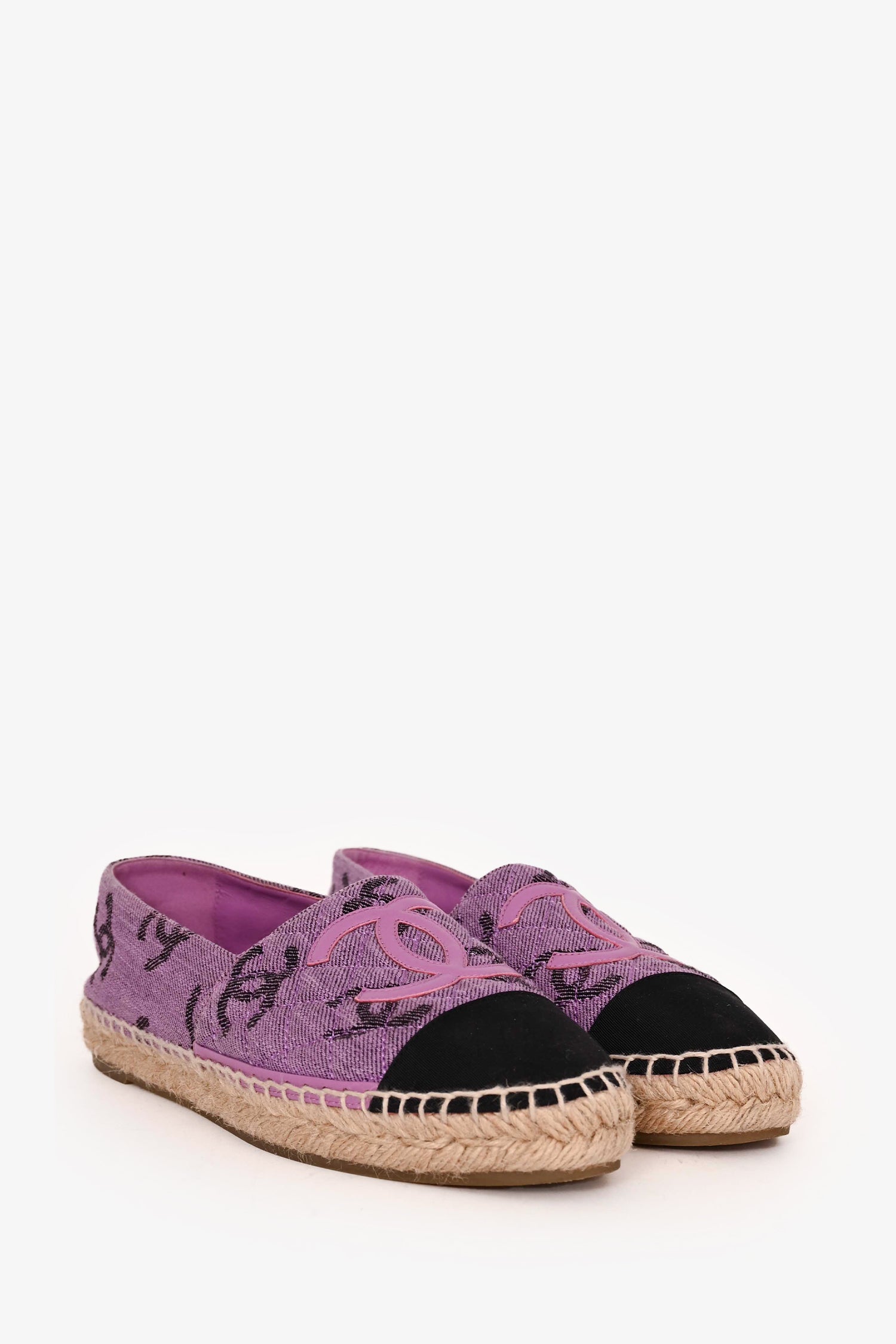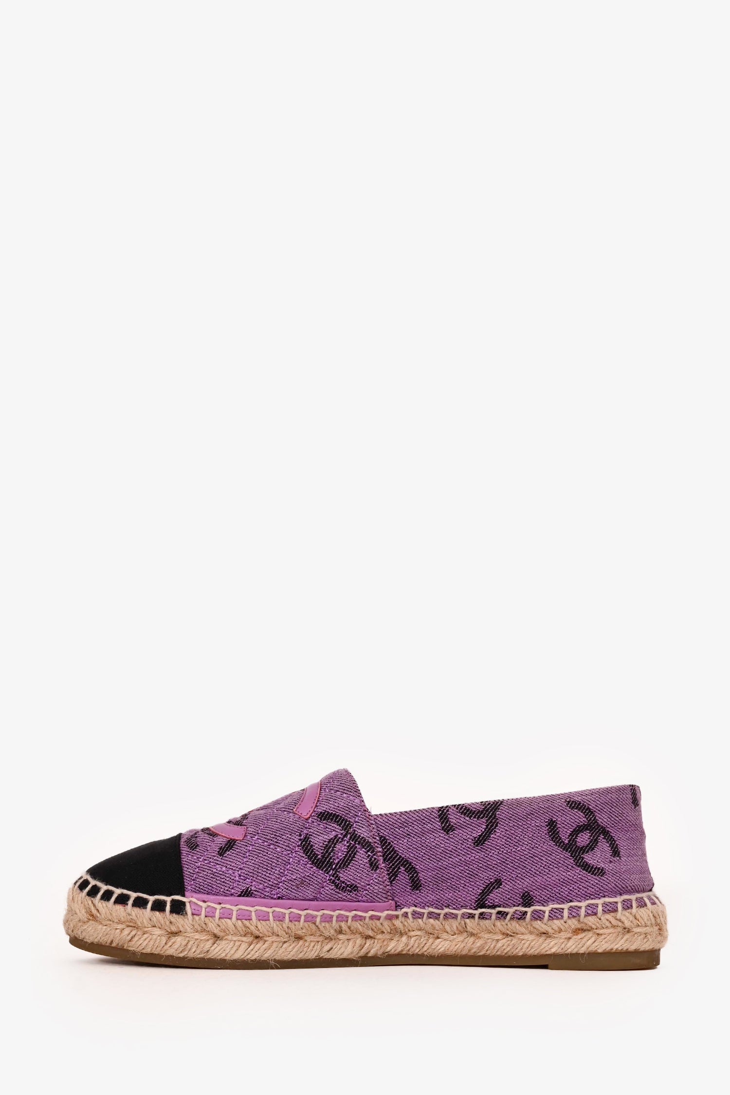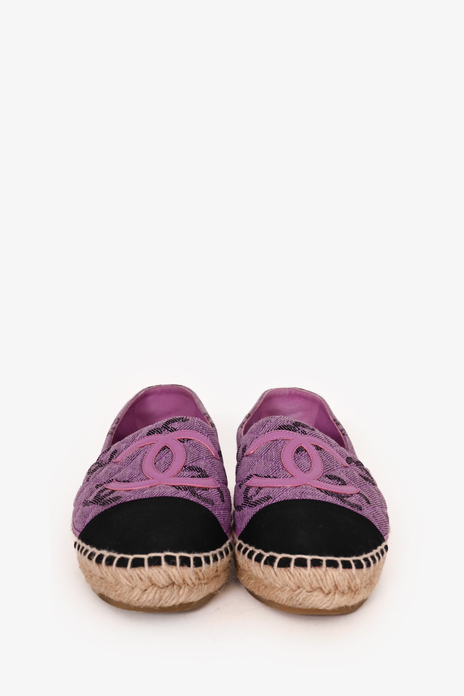Pre-Loved Chanel™ Purple/Black Canvas Quilted CC Logo Espadrilles Size 38
