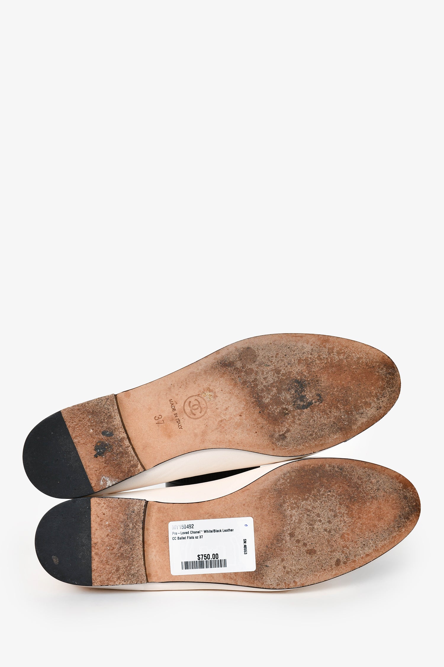 Pre-Loved Chanel™ White/Black Leather CC Ballet Flats Size 37