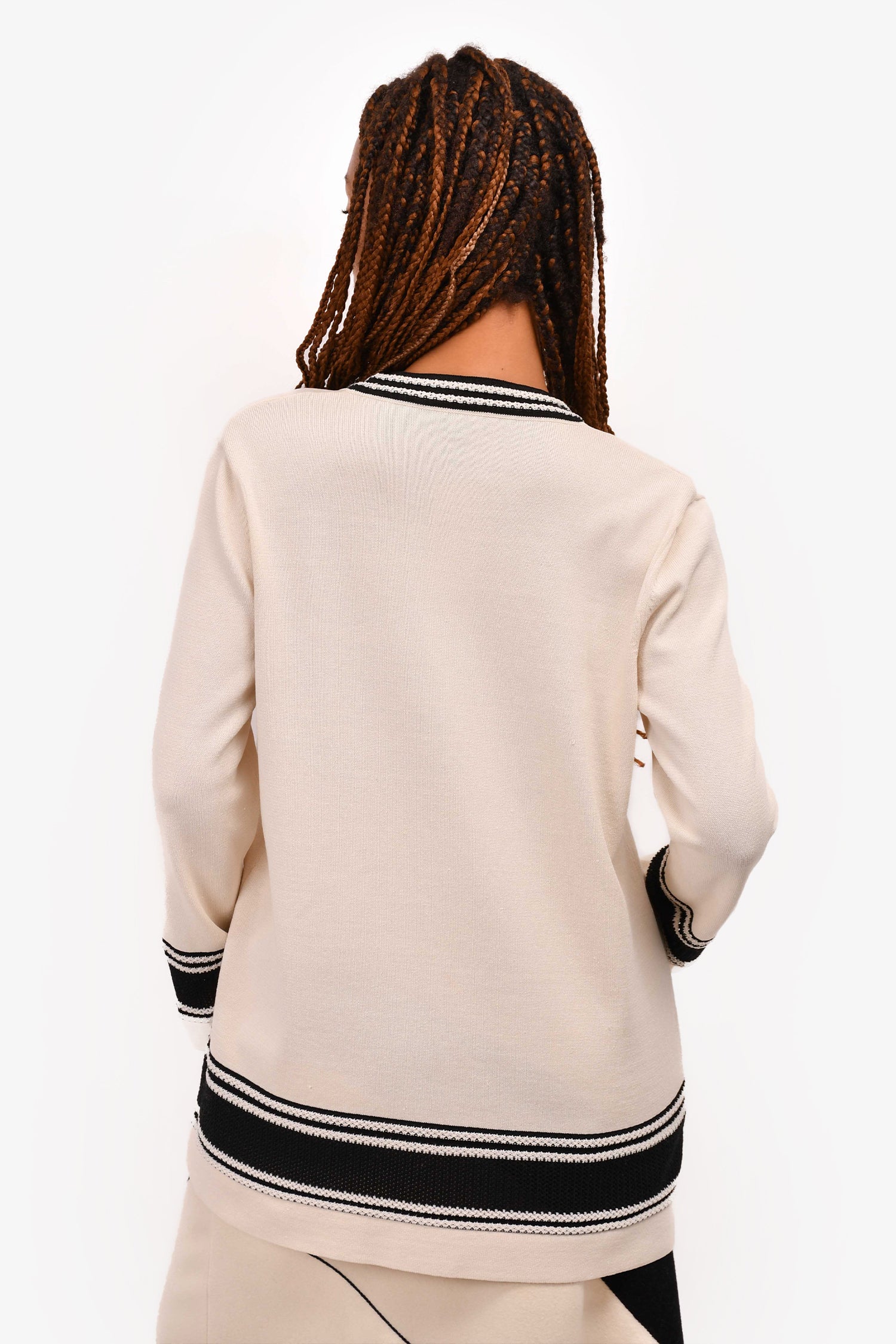 Pre-Loved Chanel™ White/ Black Trim Detailed Cardigan Size 44