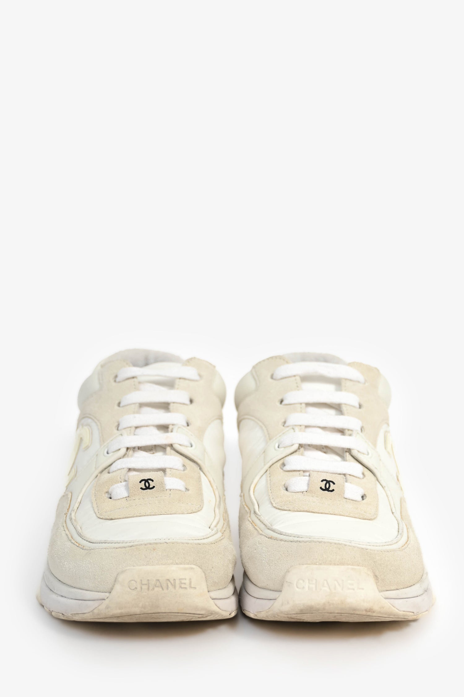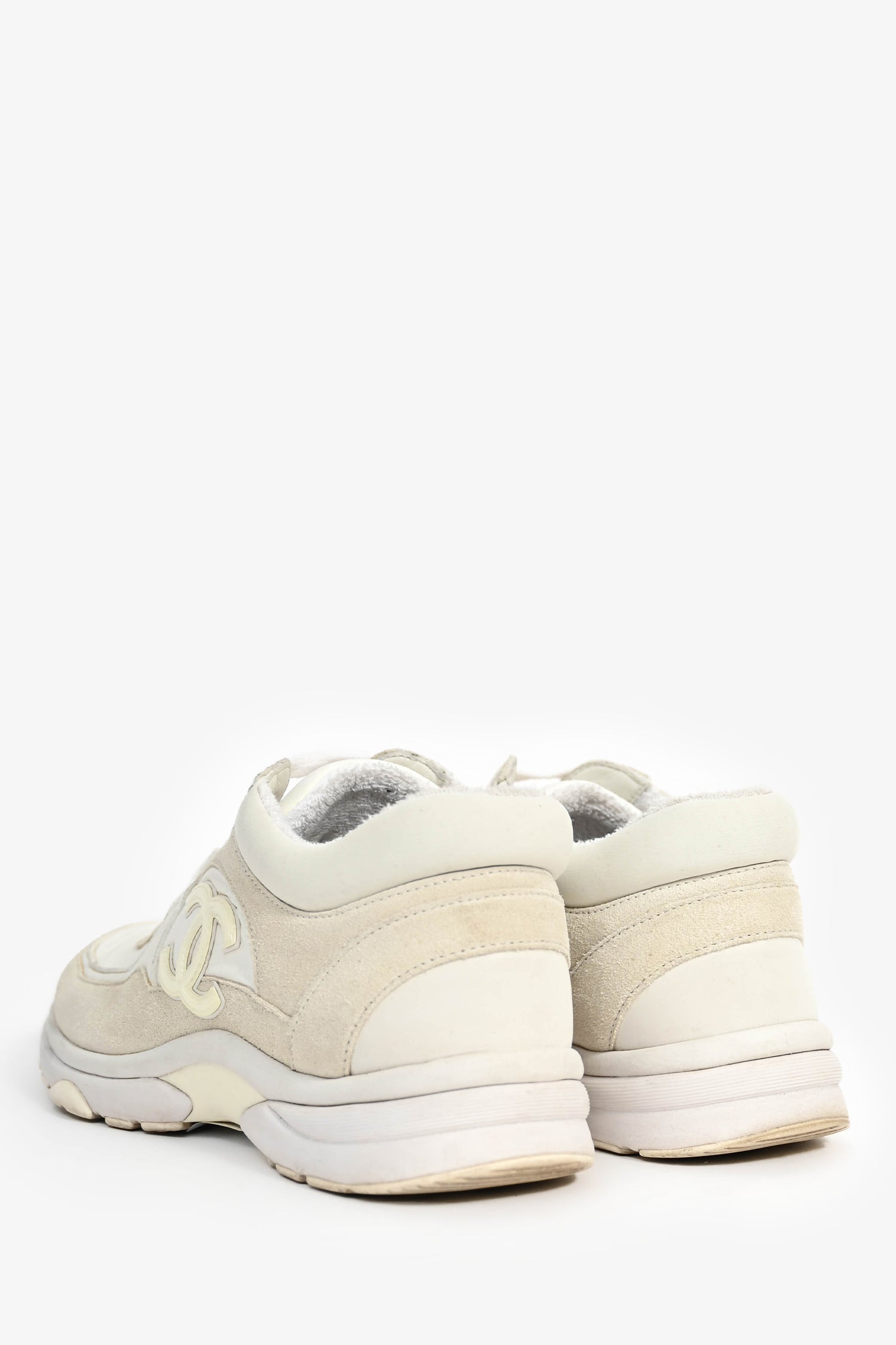 Pre-Loved Chanel™ White Suede/ Leather CC Sneakers (As Is)