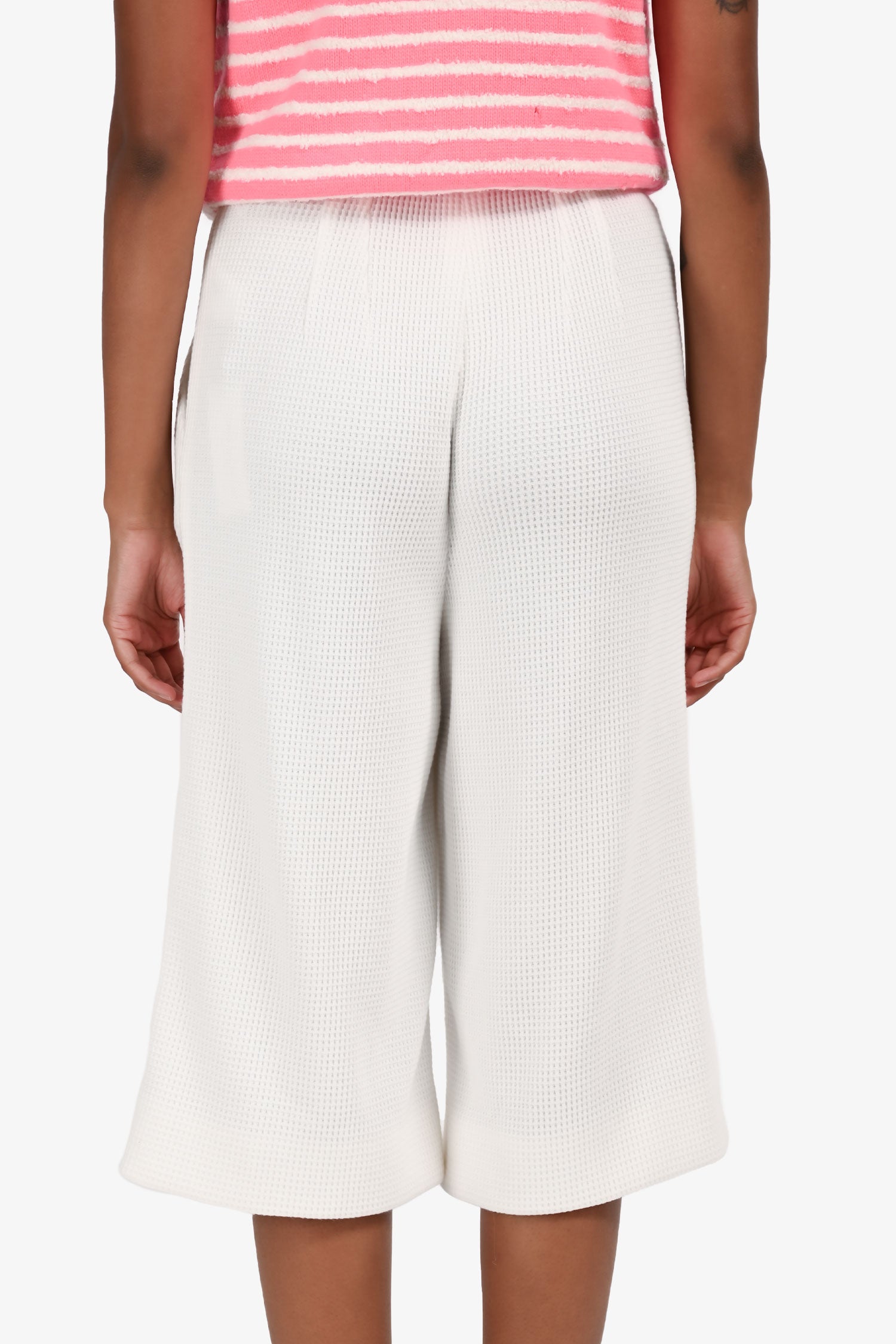Pre Loved Chanel™ White Waffle Print Long Pleated Shorts Size 36