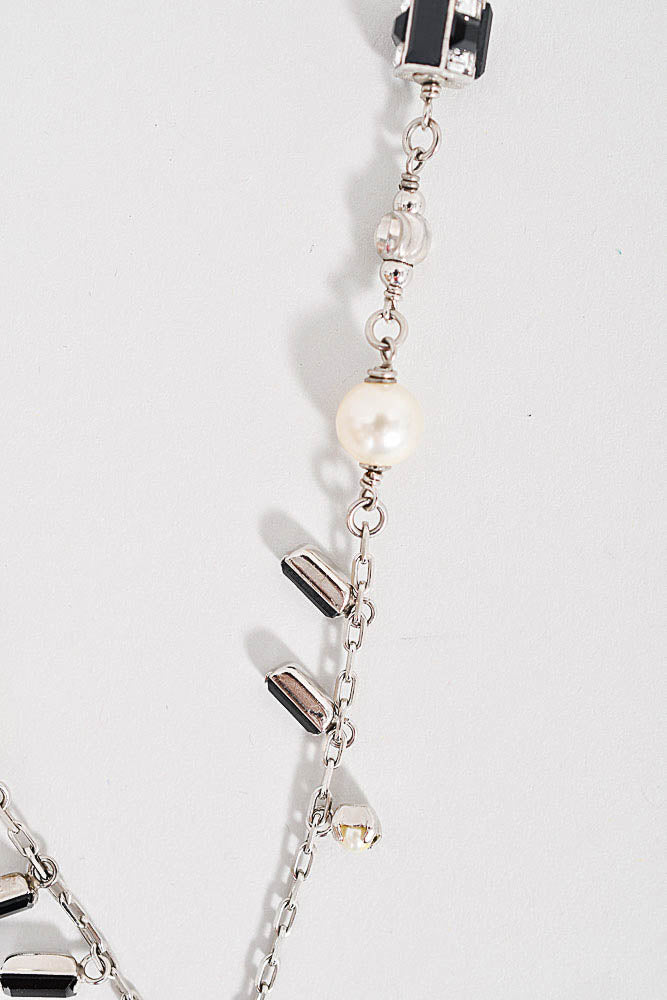 Pre-loved Chanel™ Silver/Black Crystal "CC" Necklace with Pearl Detail