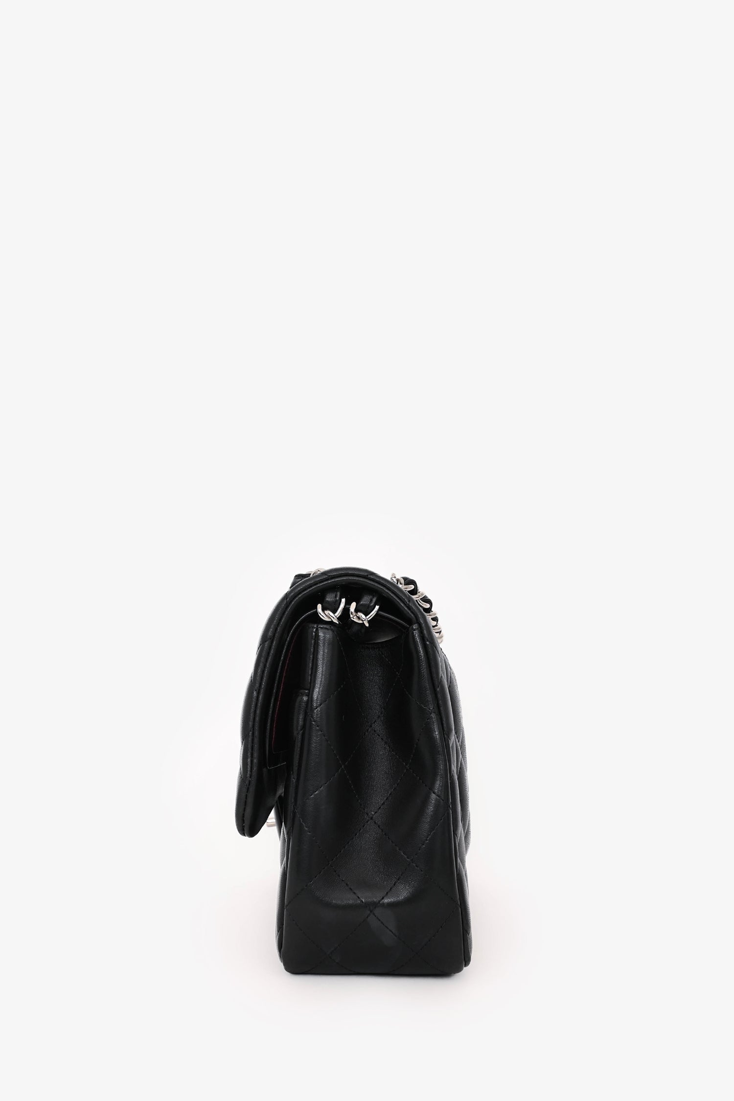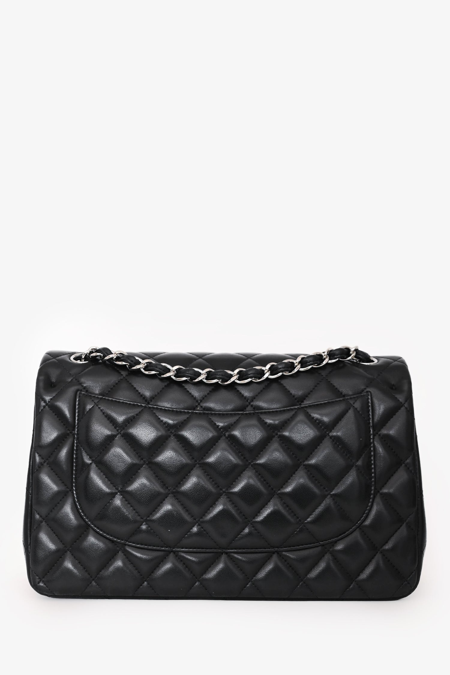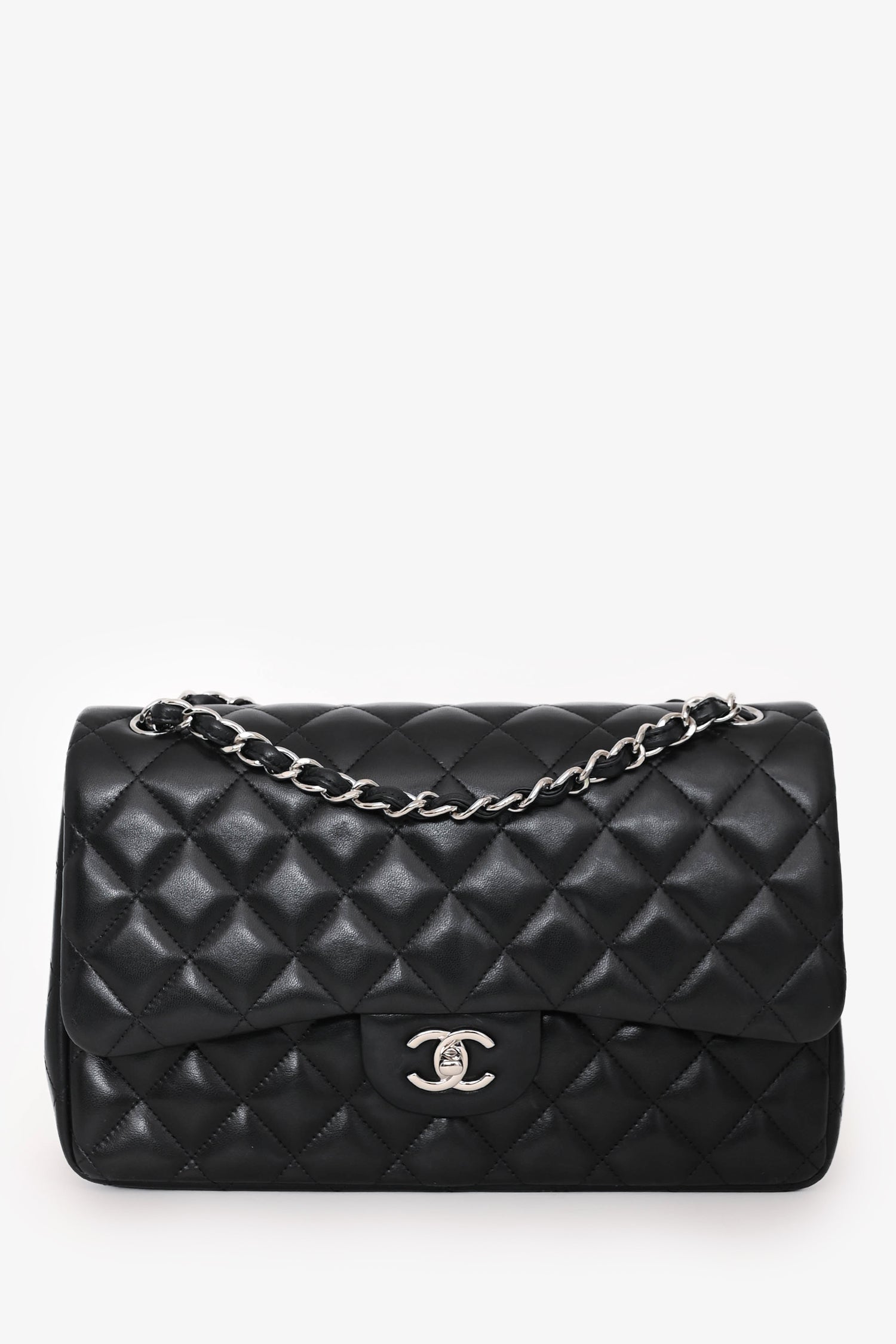 Refresh availabilityPre-Loved Chanel™ 2012 Black Lambskin Jumbo Double Flap. Dual front fold-over flaps with a turn-lock closure. Chain-link and leather shoulder strap. 2 interior compartments with 2 pockets. Silver-tone hardware. Tonal stitching.