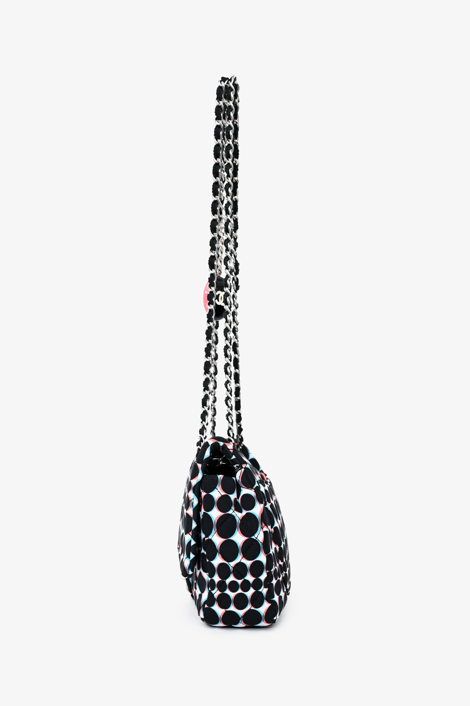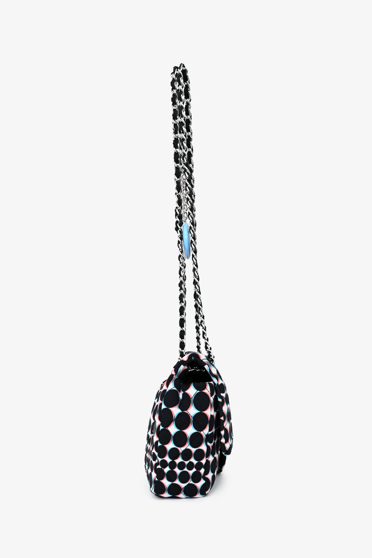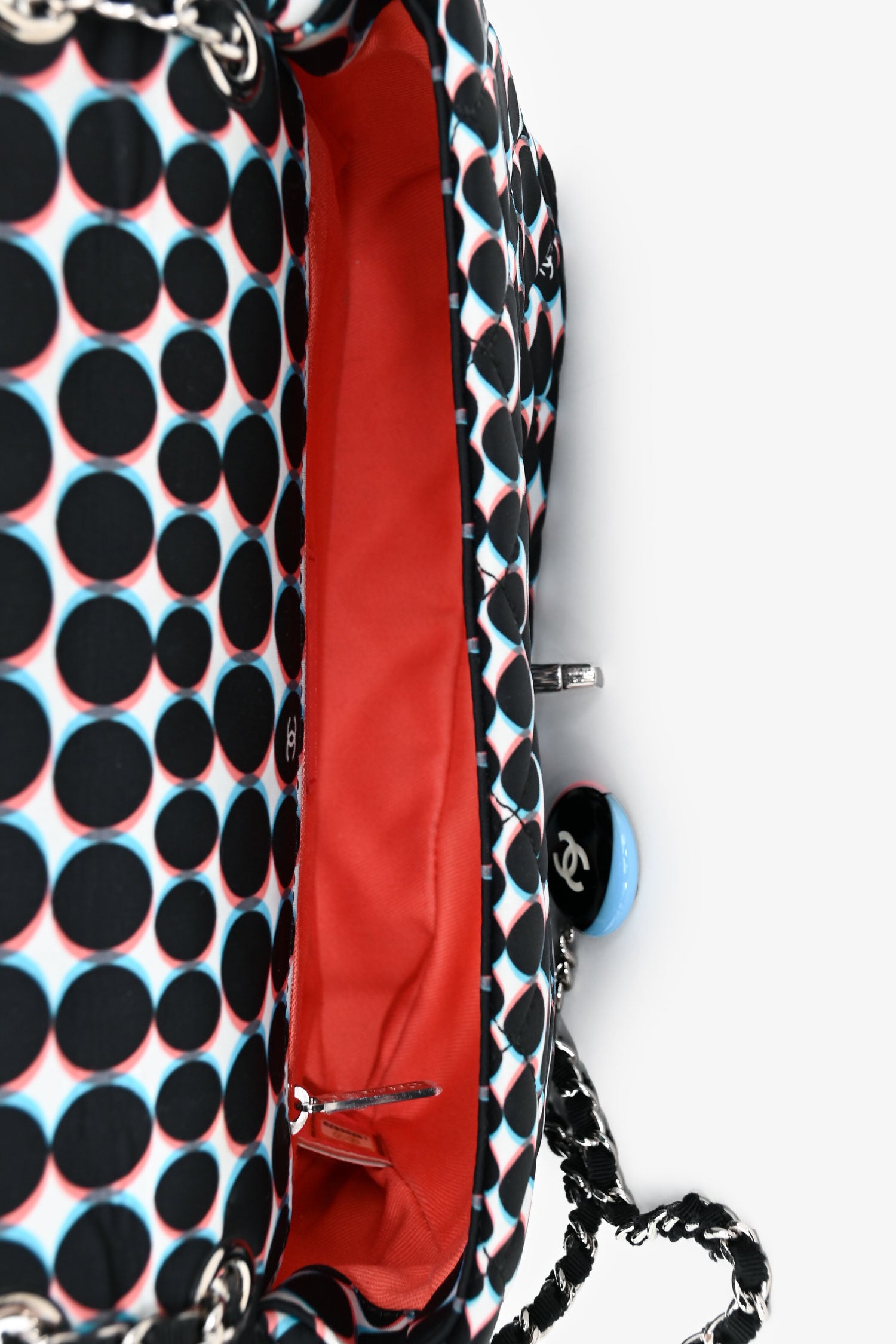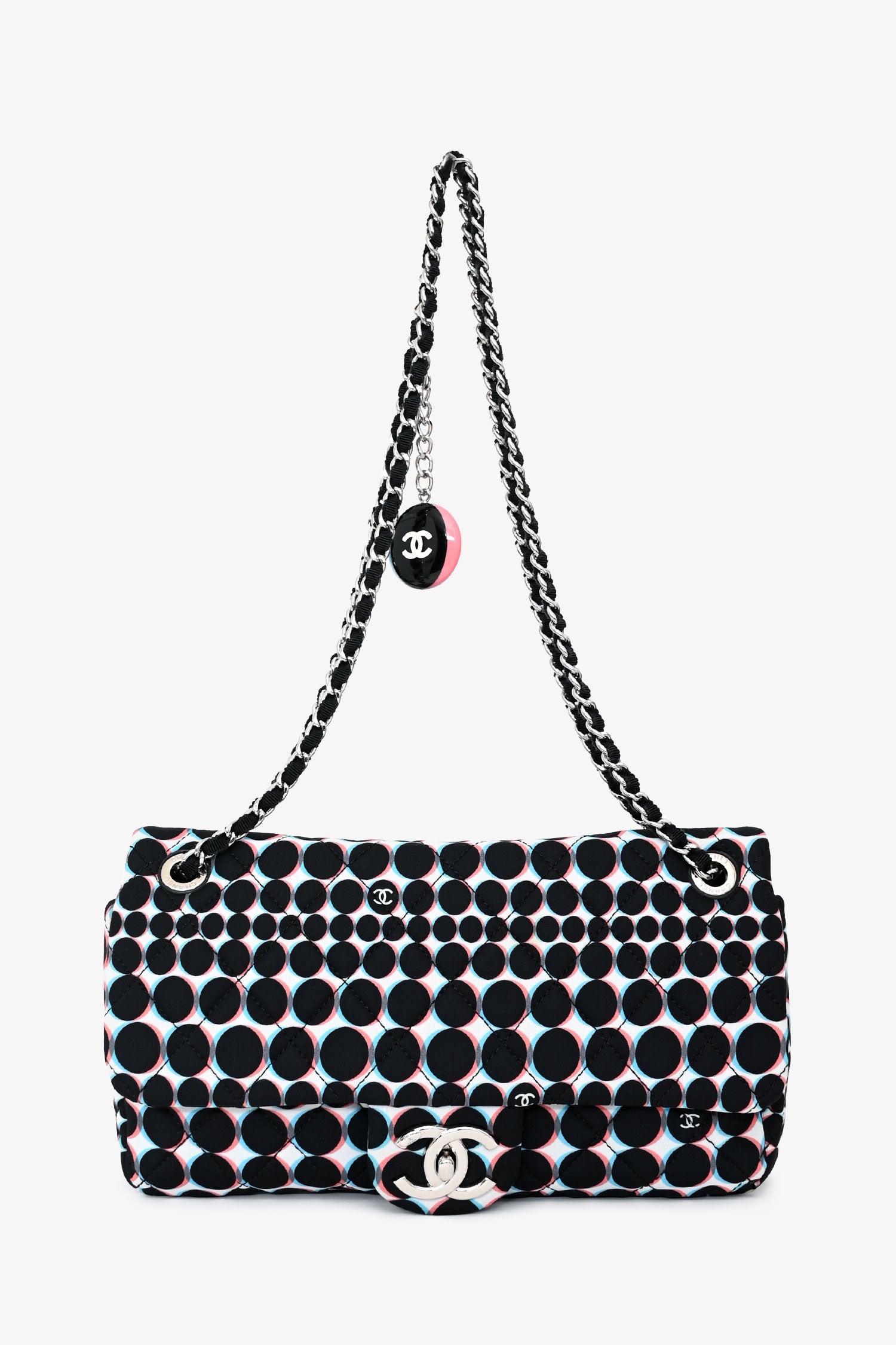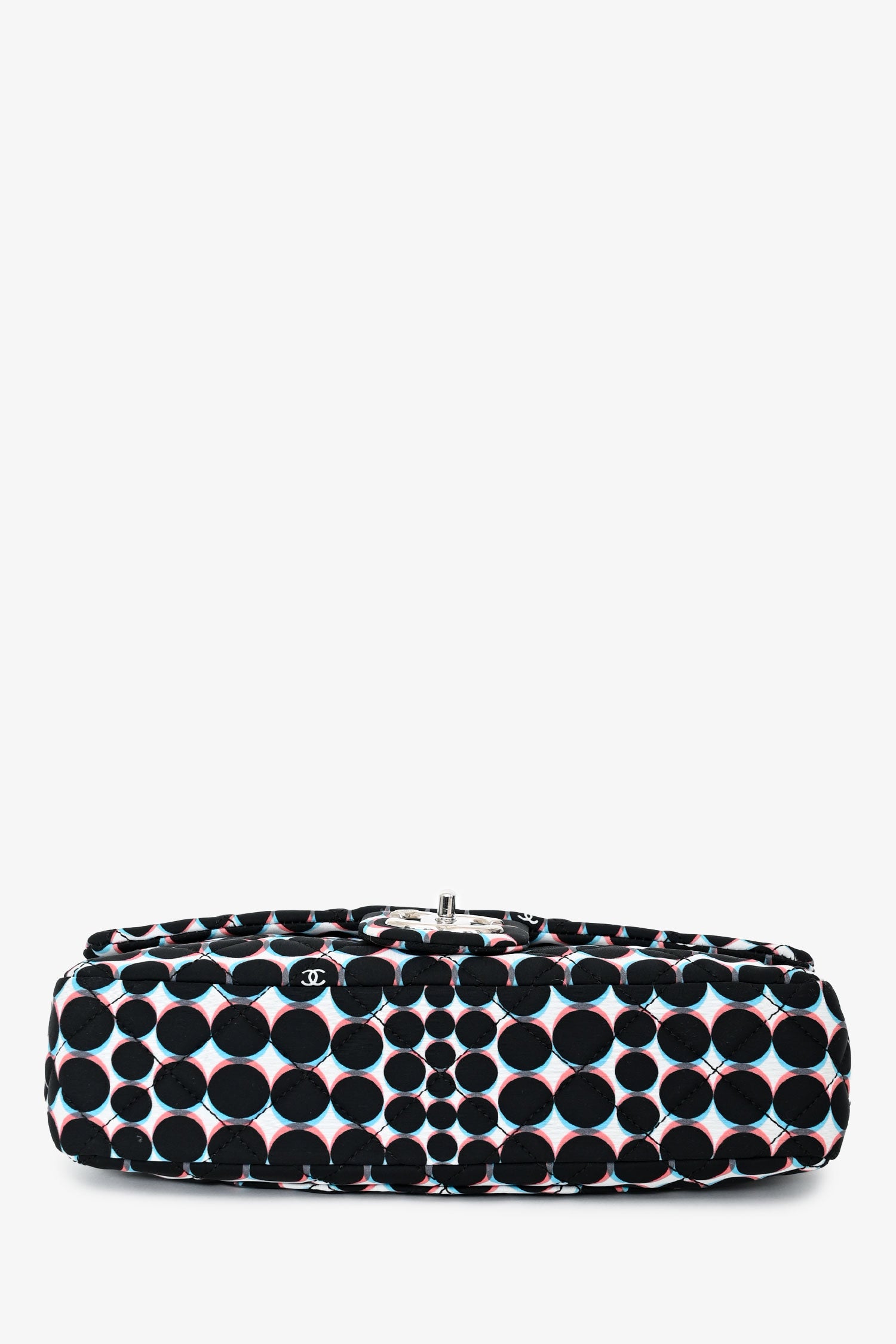 Pre-Loved Chanel™ 2014 Black/White Nylon Polka Dot Printed Medium Classic Single Flap Silver Hardware