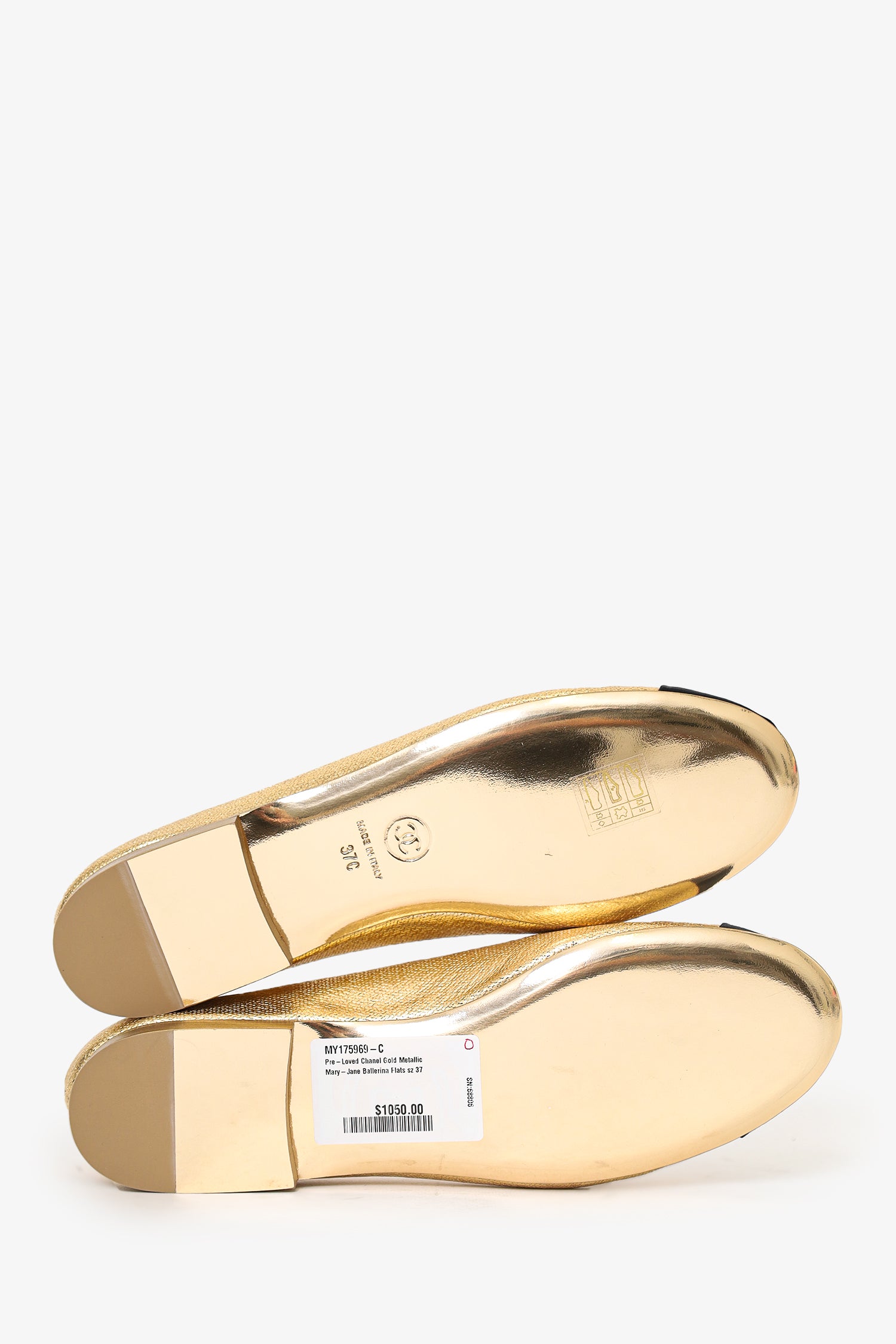 Pre-Loved Chanel™ Gold Metallic Mary-Jane Ballerina Flats Size 37
