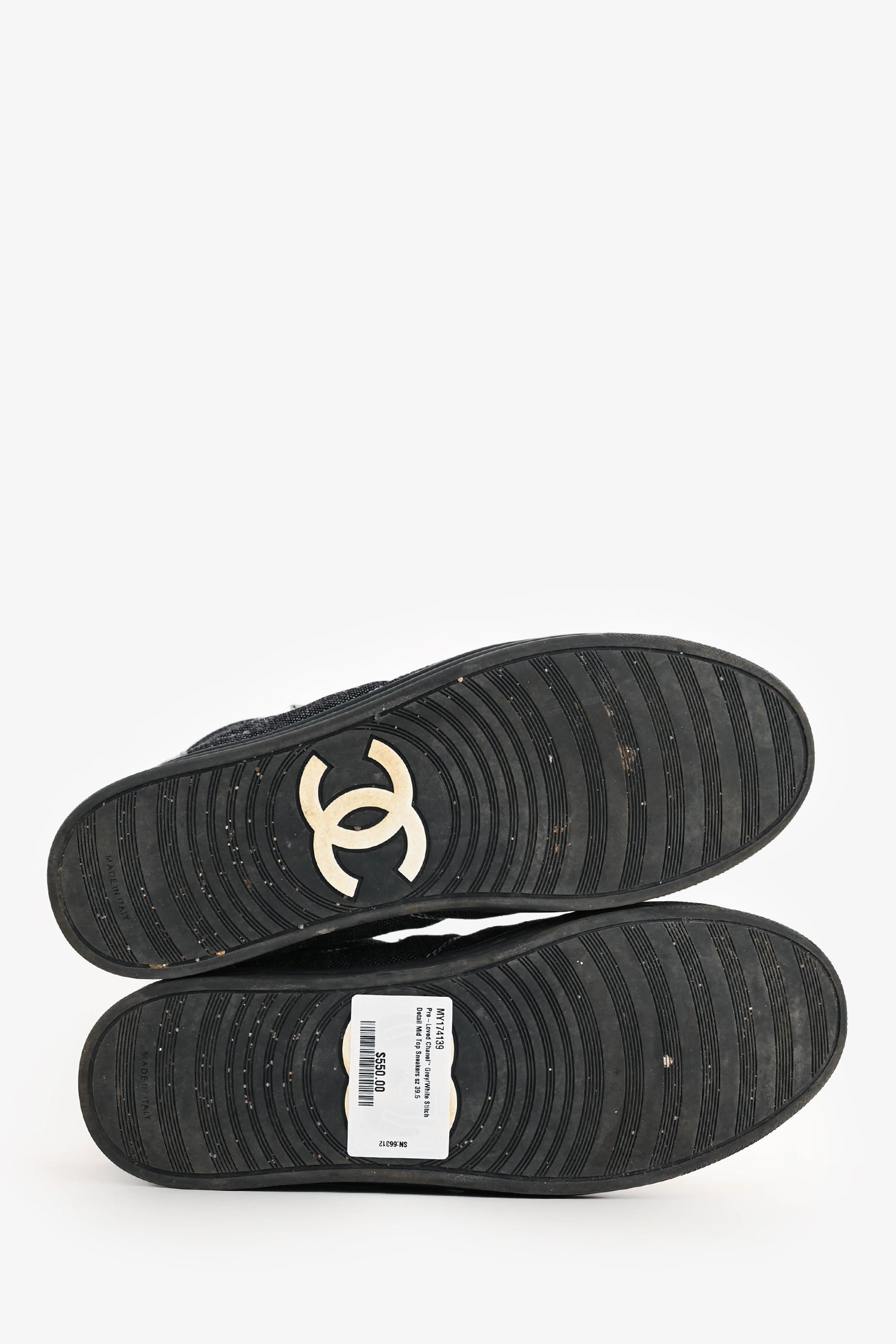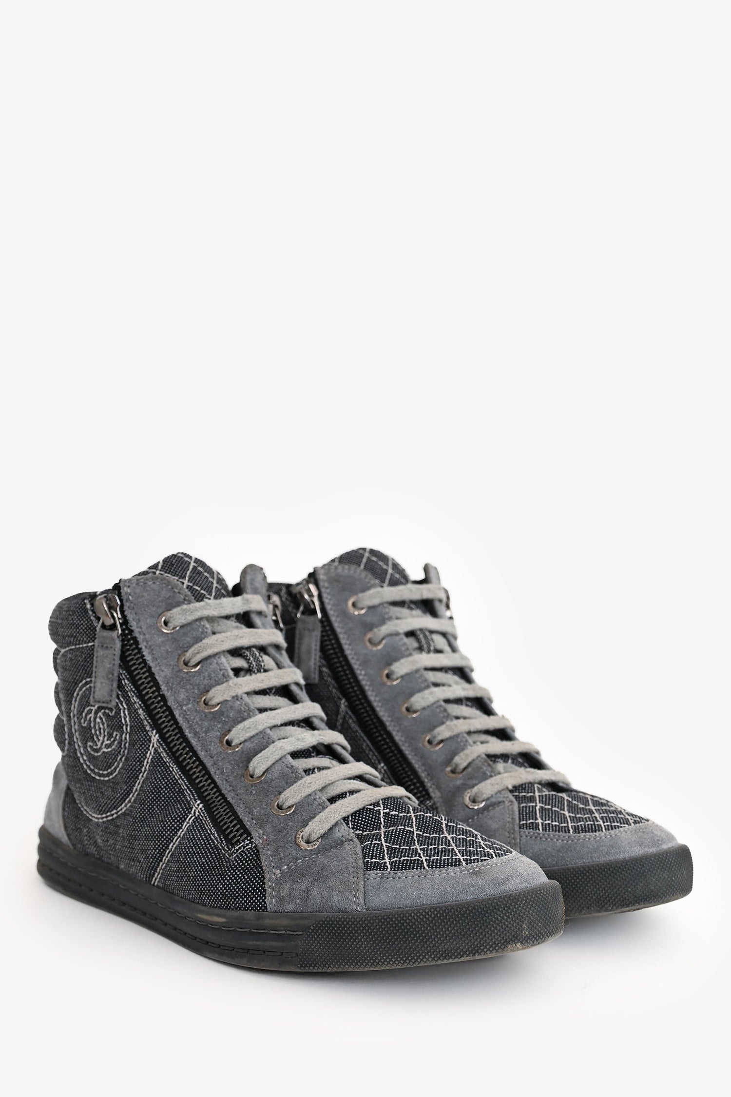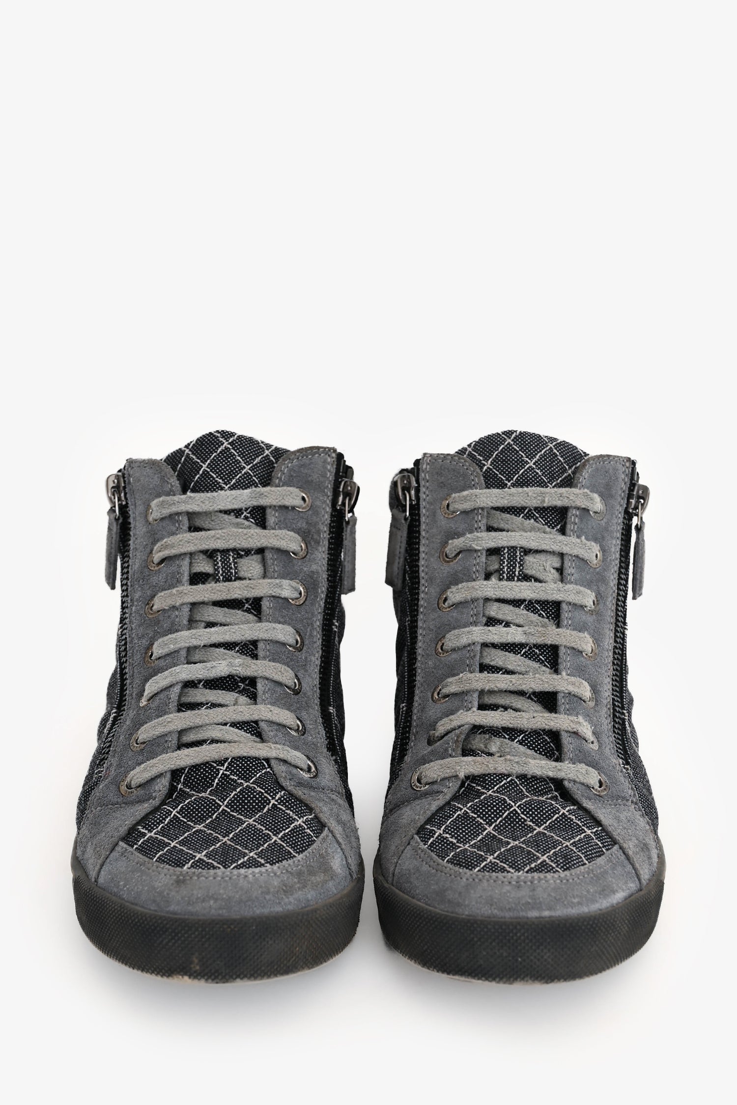 Pre-Loved Chanel™ Grey/White Stitch Detail Mid Top Sneakers Size 39.5