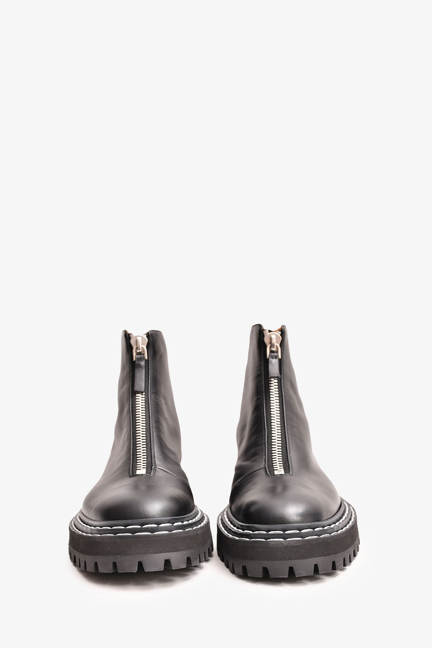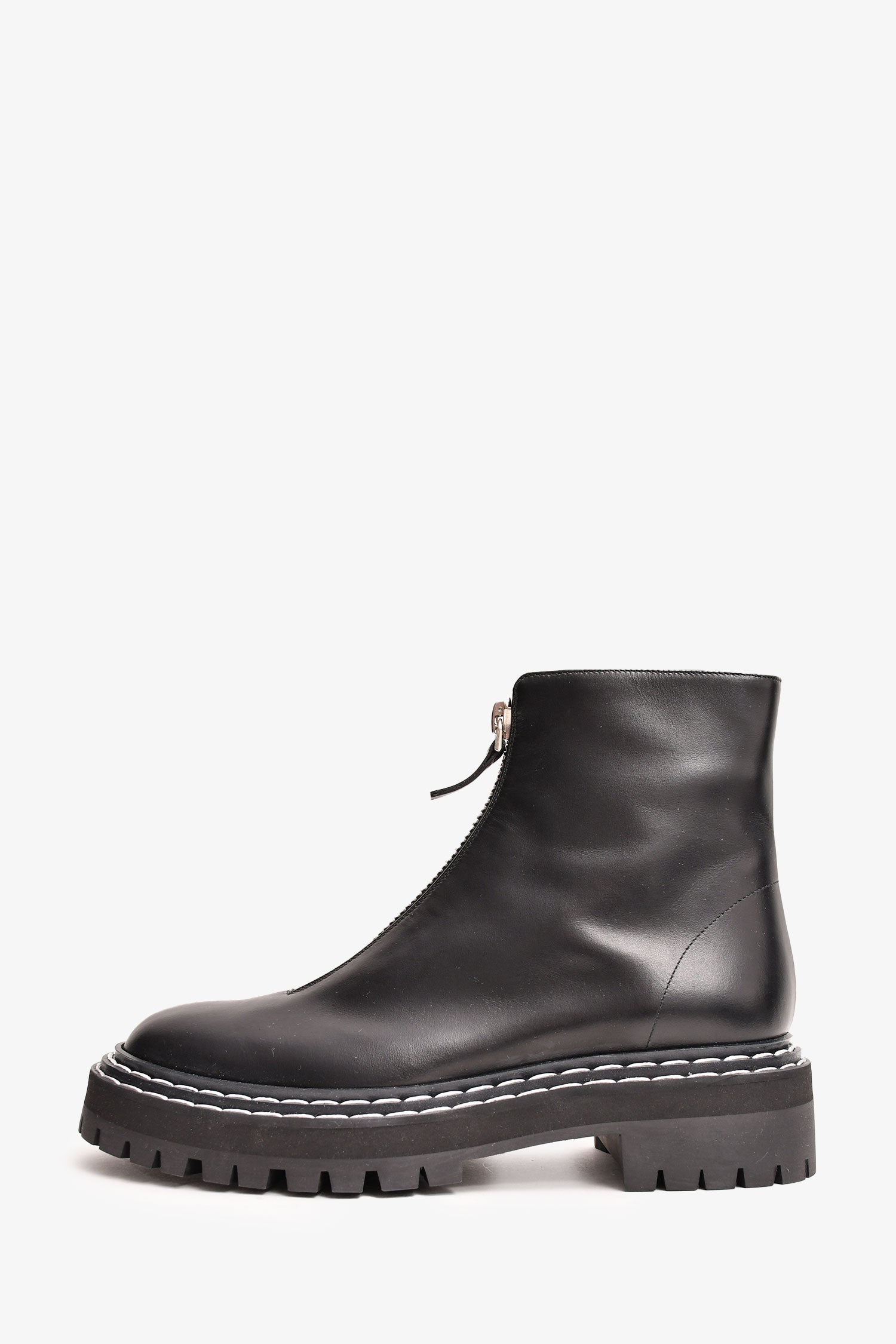 Refresh availabilityProenza Schouler Black Leather Lug Sole Zip Boot. Round toe. Front zip closure.