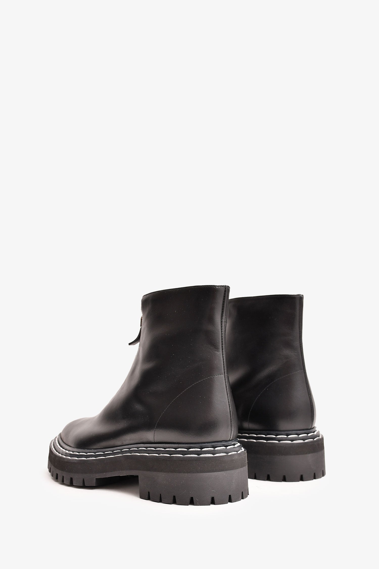Proenza Schouler Black Leather Lug Sole Zip Boot Size 36.5