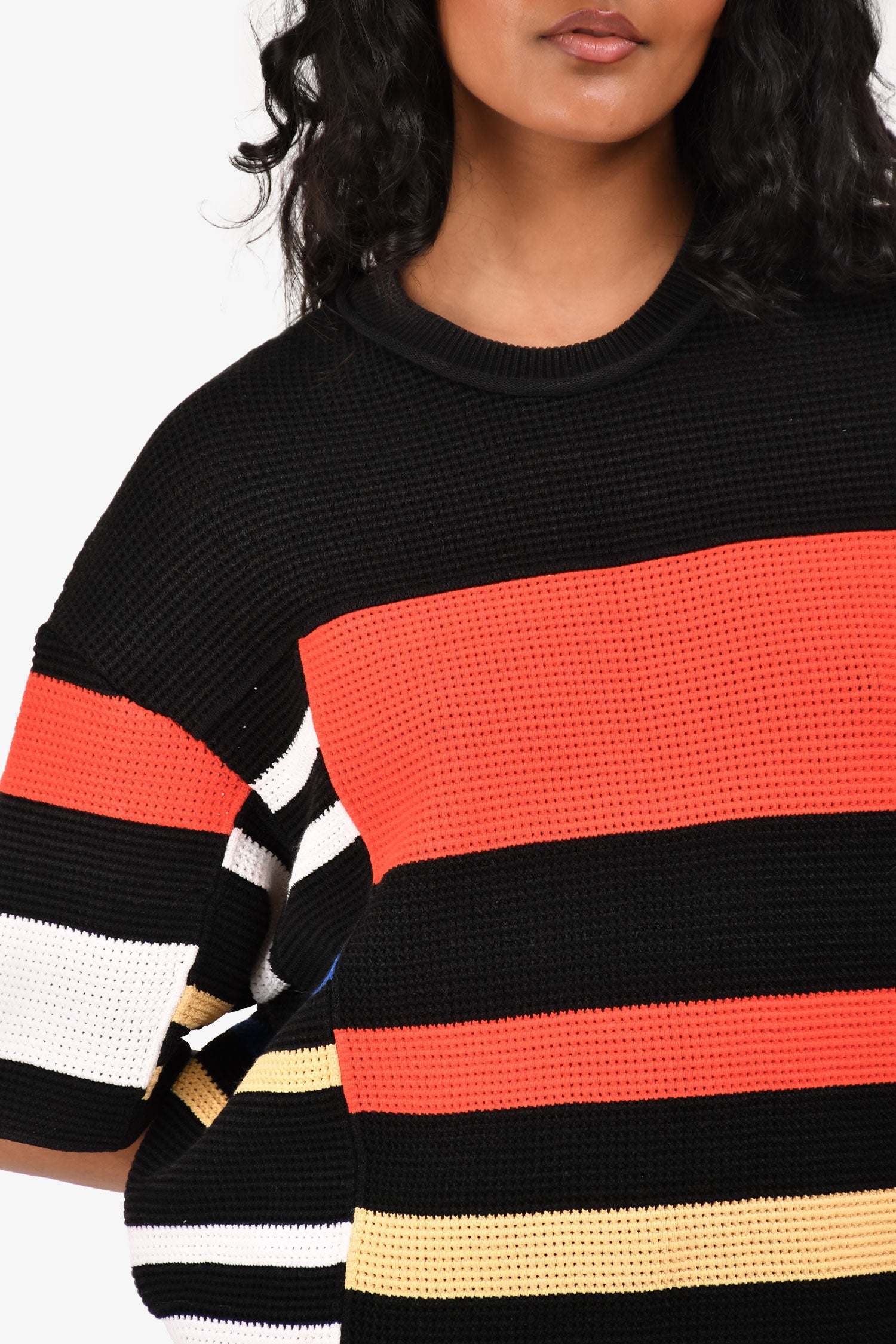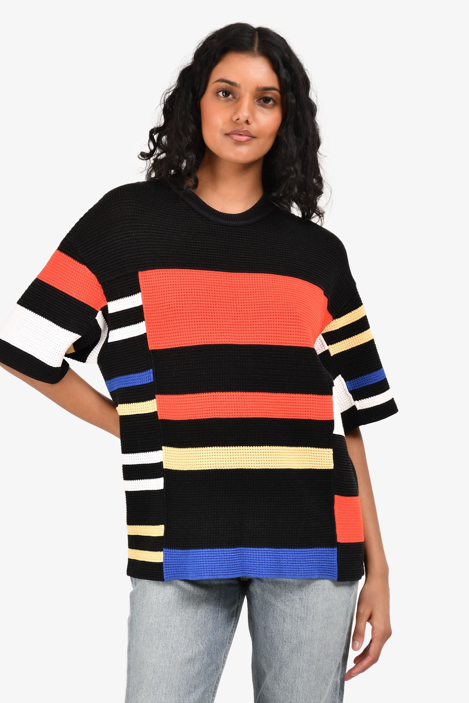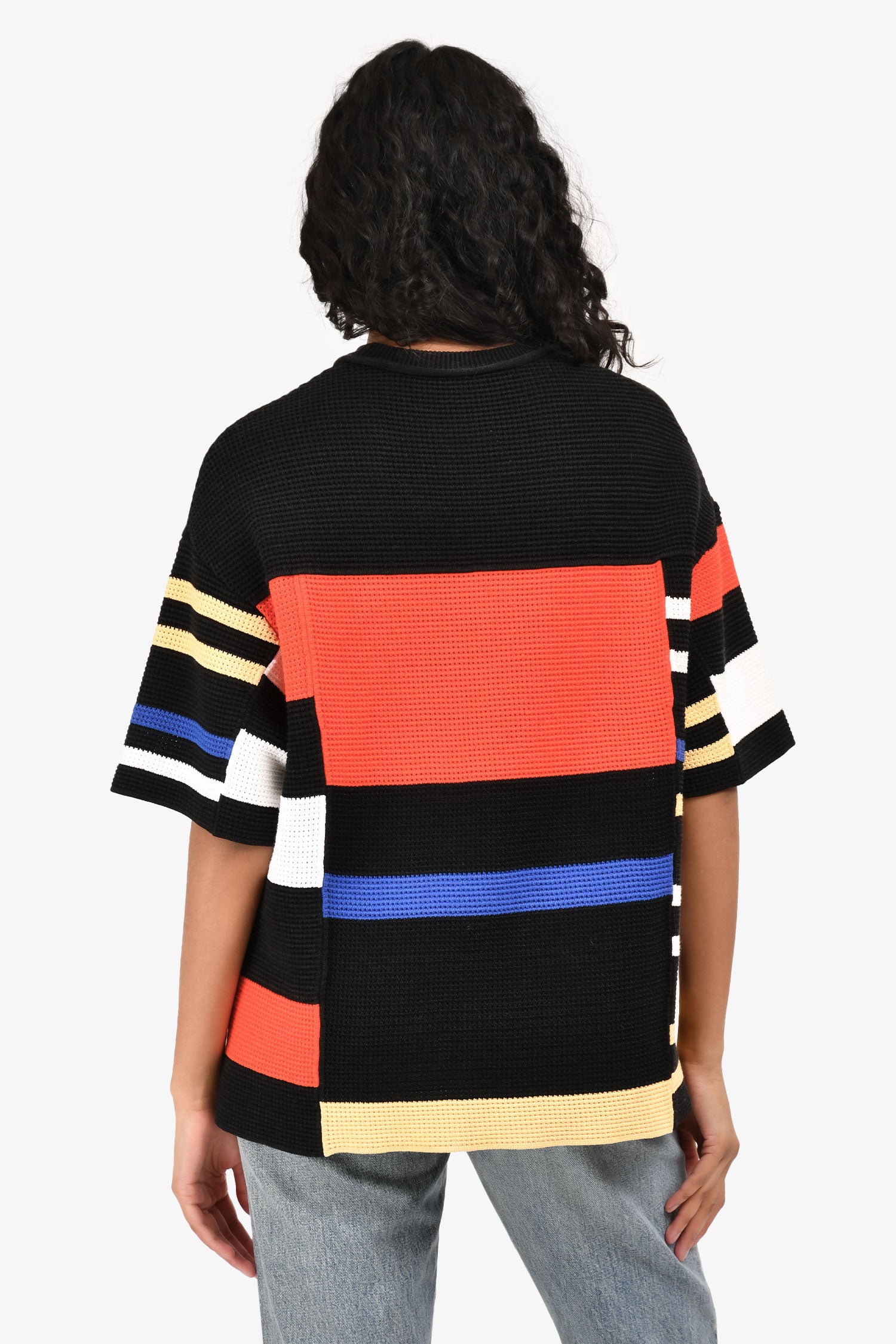 Refresh availabilityProenza Schouler Black/Red Colour Block Crochet Knit Boxy Top. Pull-on. Round and ribbed neckline. Unlined. Tonal stitching.