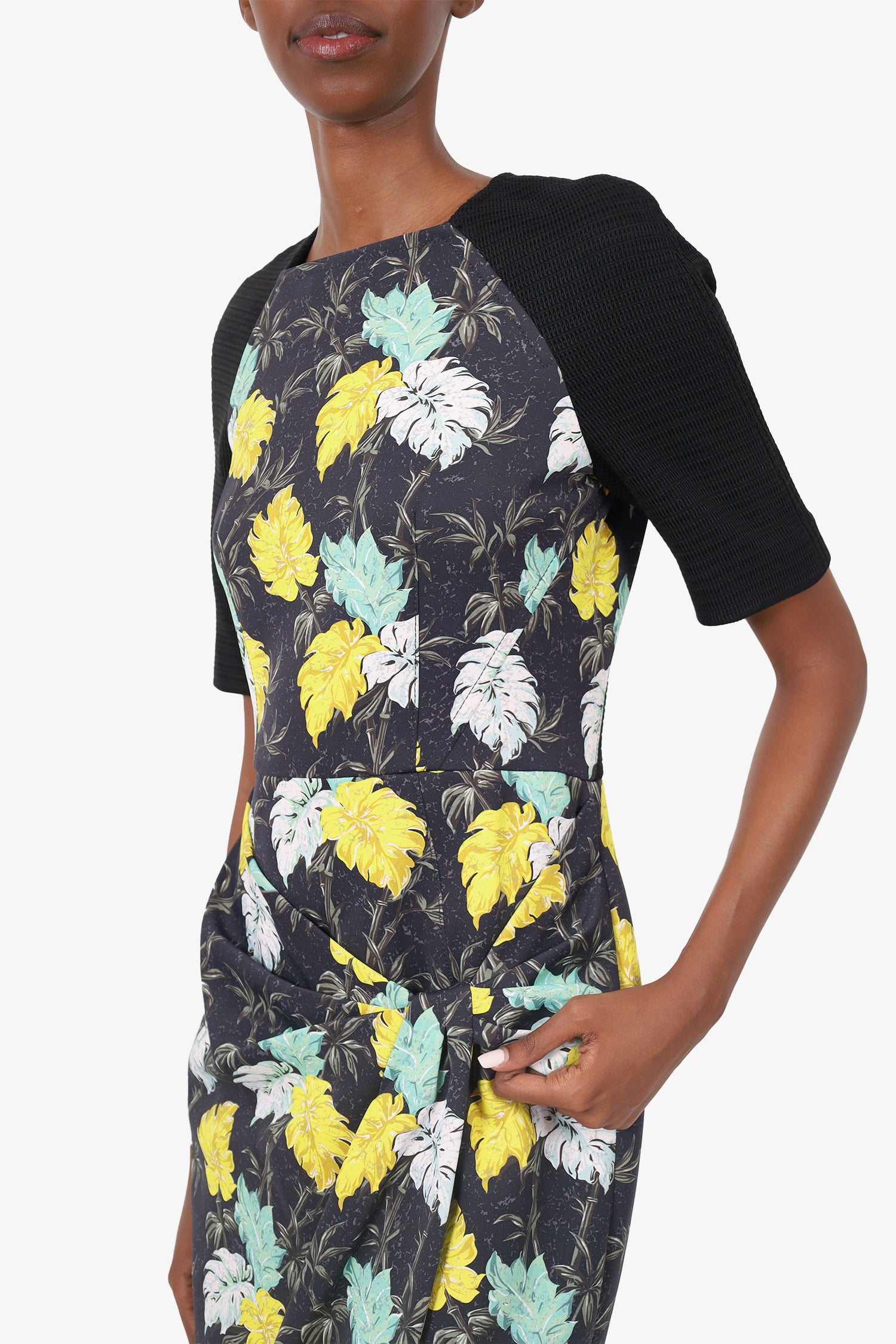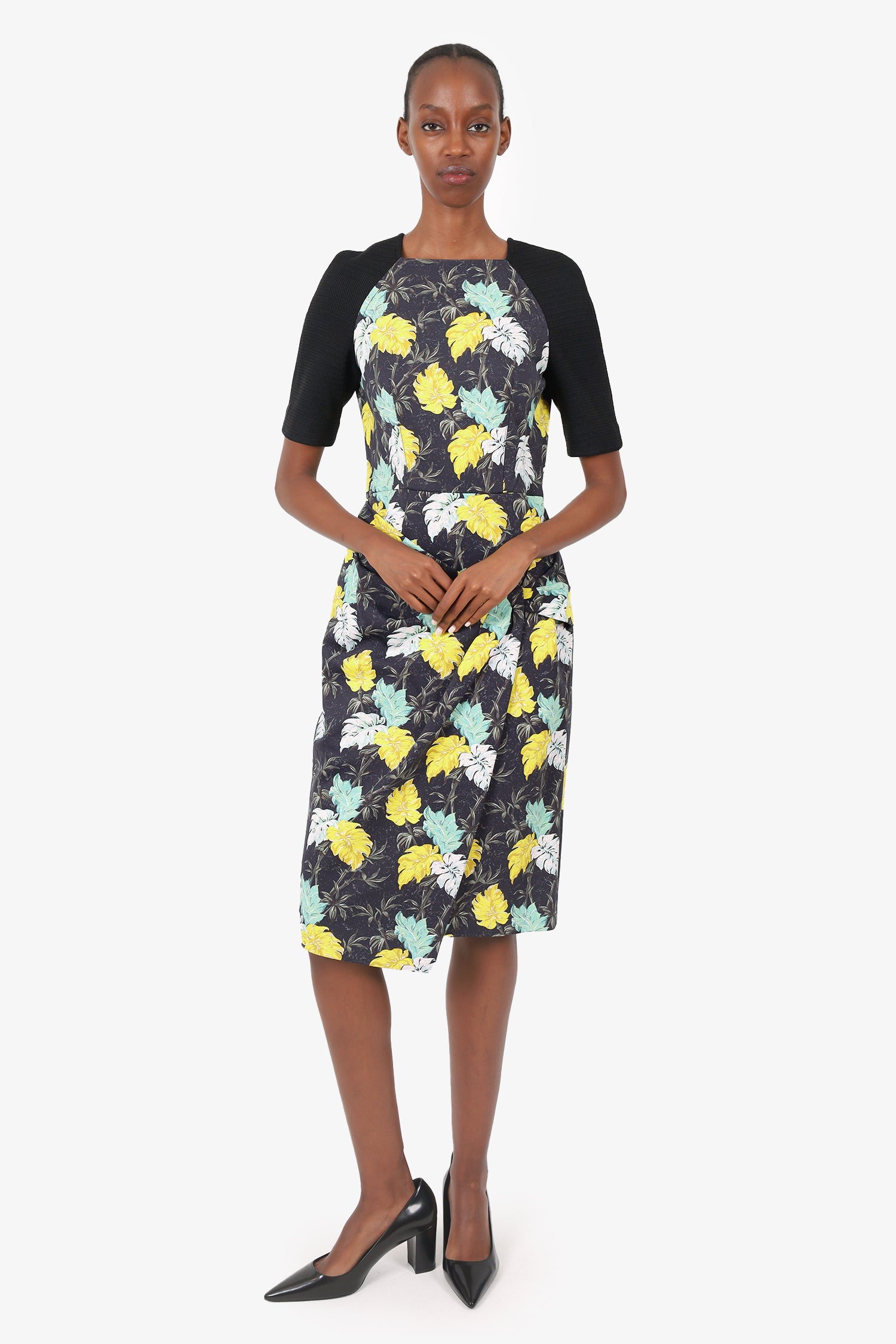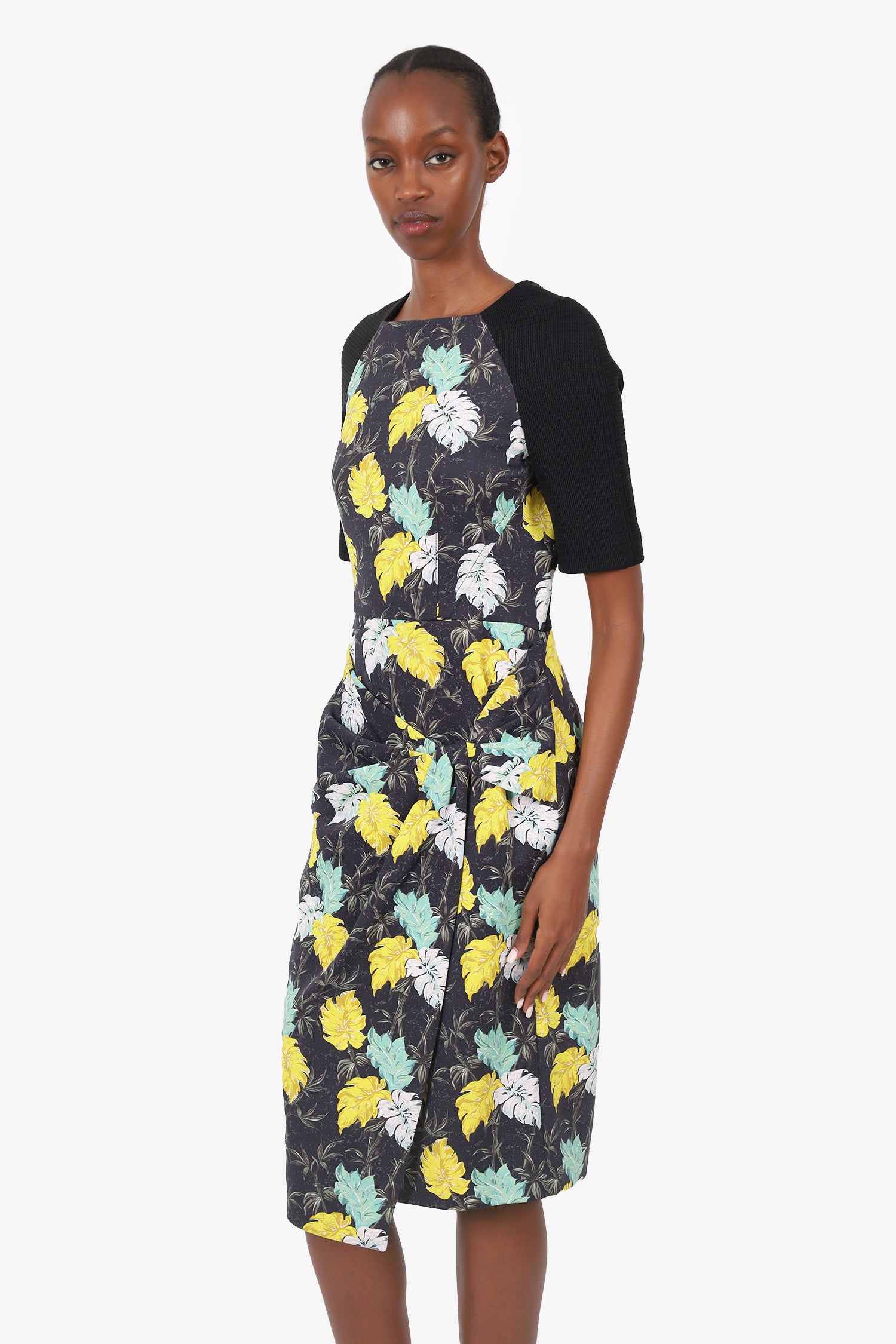 Refresh availabilityProenza Schouler Black/Multicolour Floral Print Twisted Midi Dress. Pull on. Rounded-square neckline. Rear zip and hook closures. Tonal stitching.