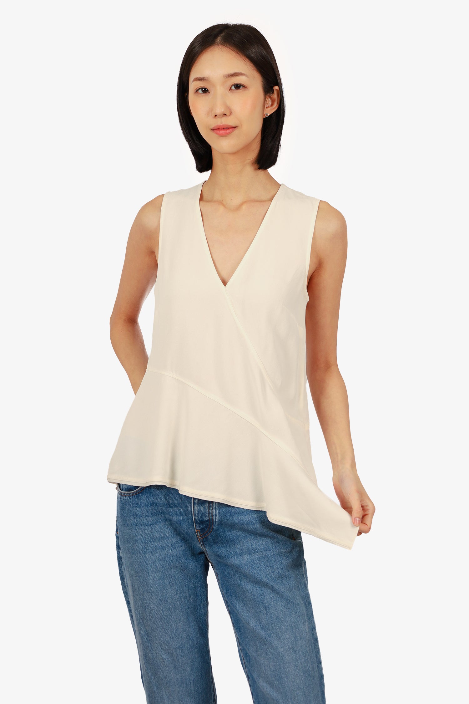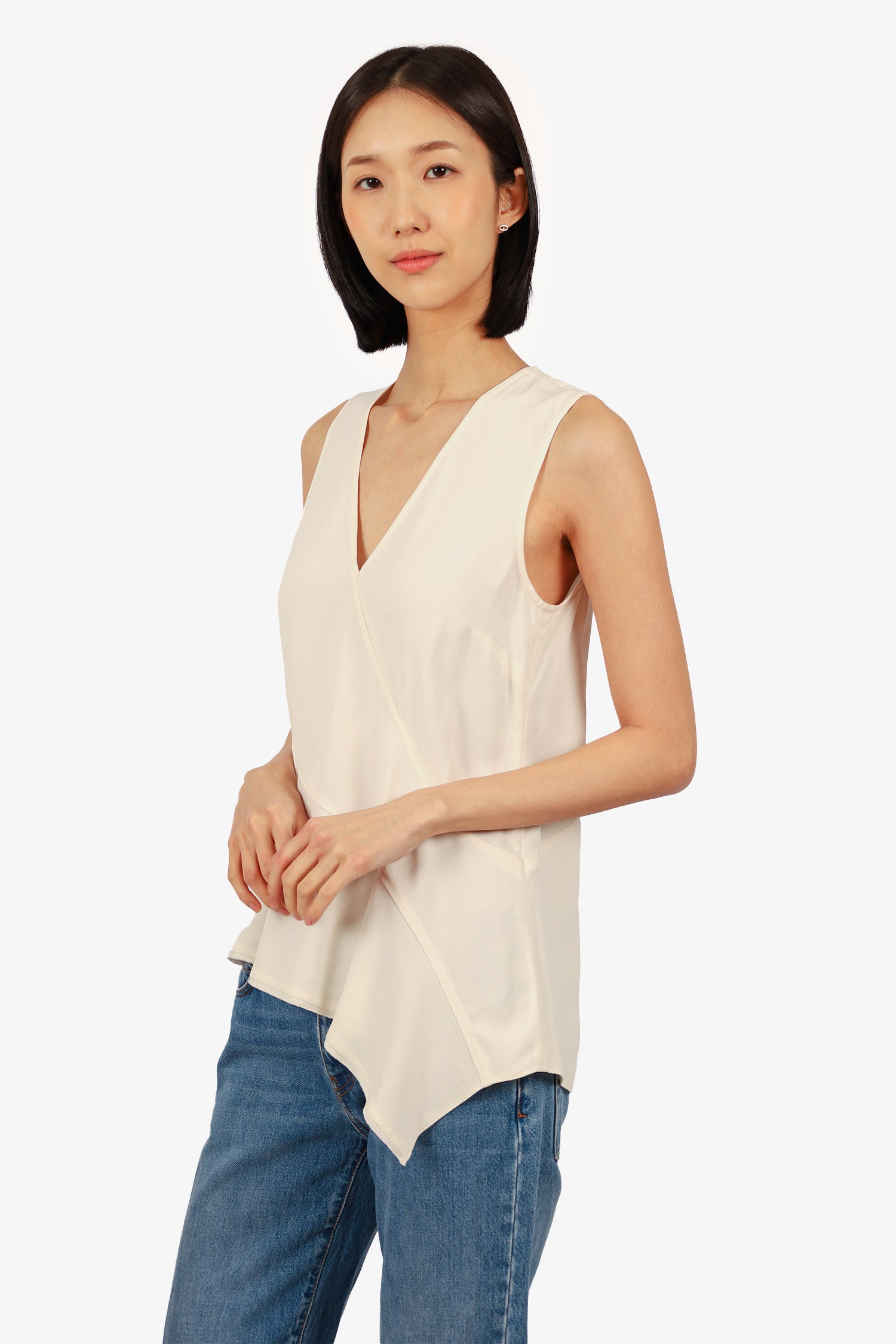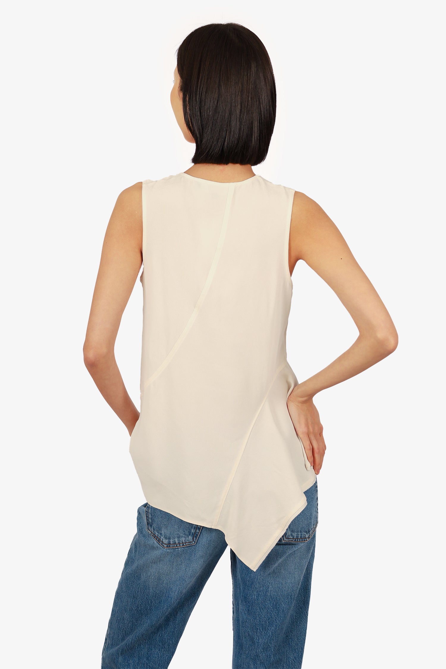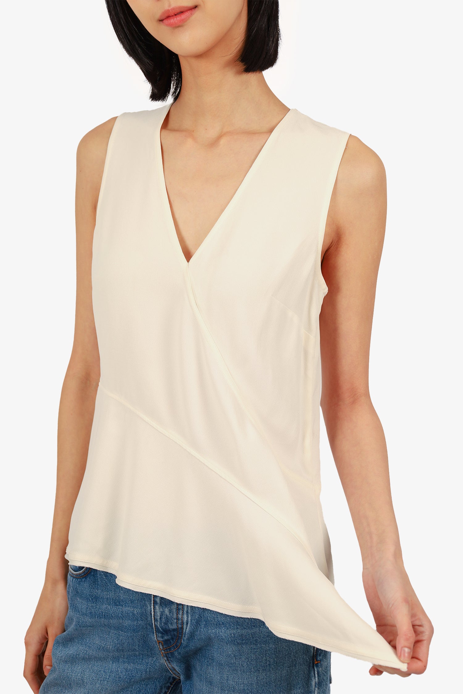 Refresh availabilityProenza Schouler Cream V-Neck Sleeveless Asymmetric Blouse. Pull-on. Tonal stitching.