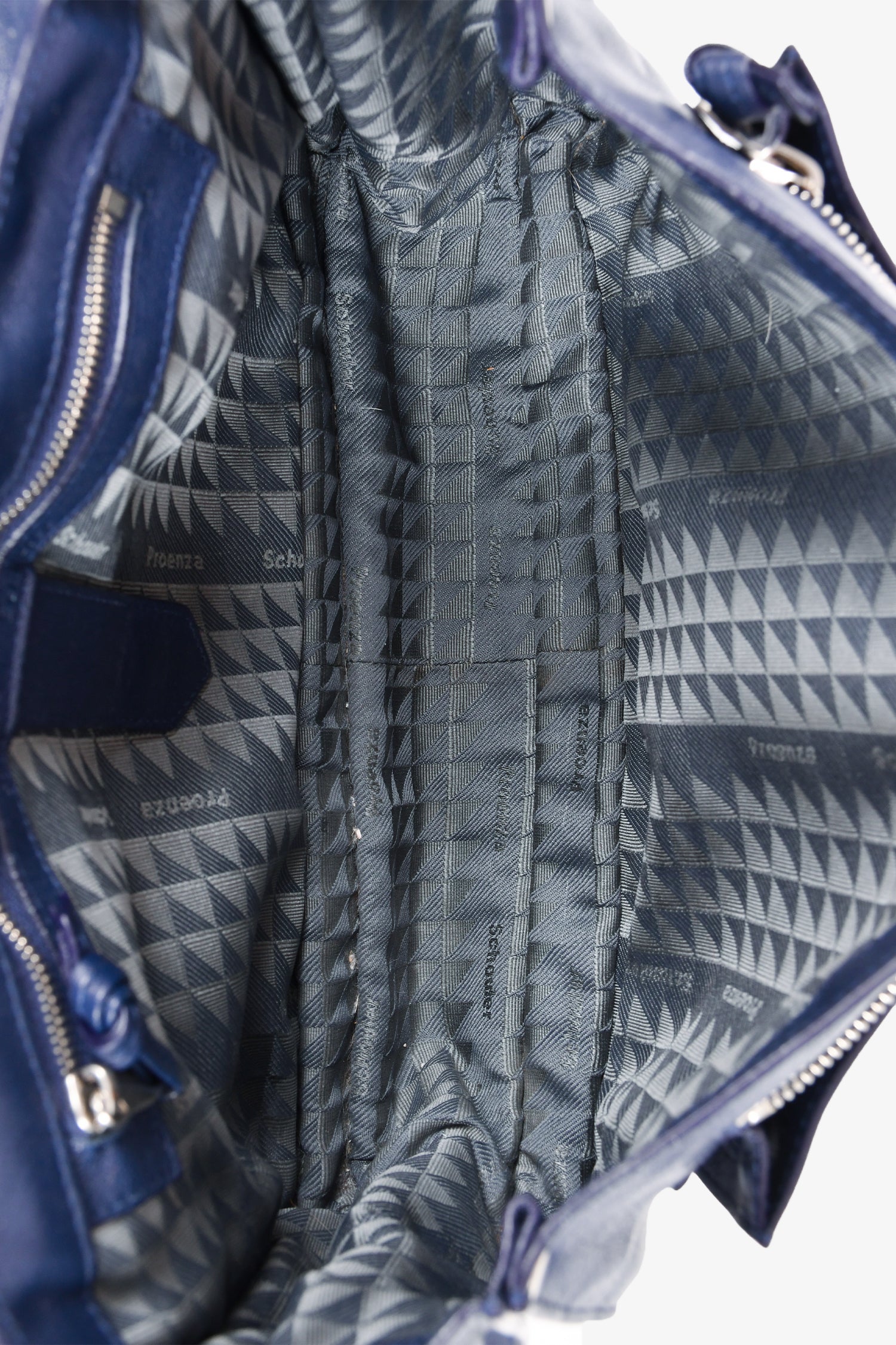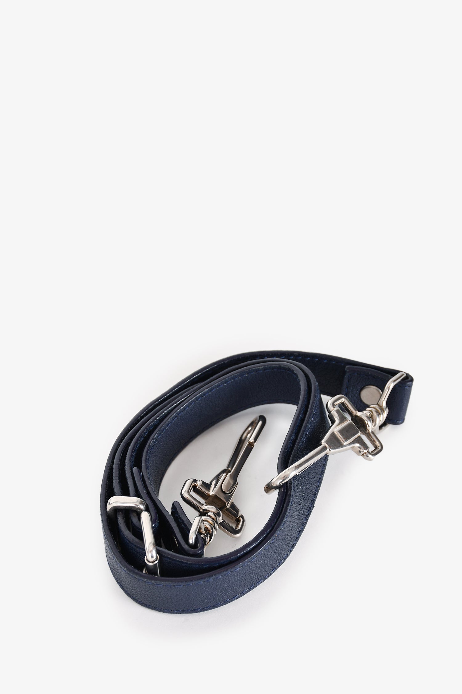 Refresh availabilityProenza Schouler Navy Leather PS1 Messenger Crossbody Bag. Silver-tone hardware. Top handle. Keychain detailing on the side. Clasp opening. 3 compartments. Snap-on and zipper closures.