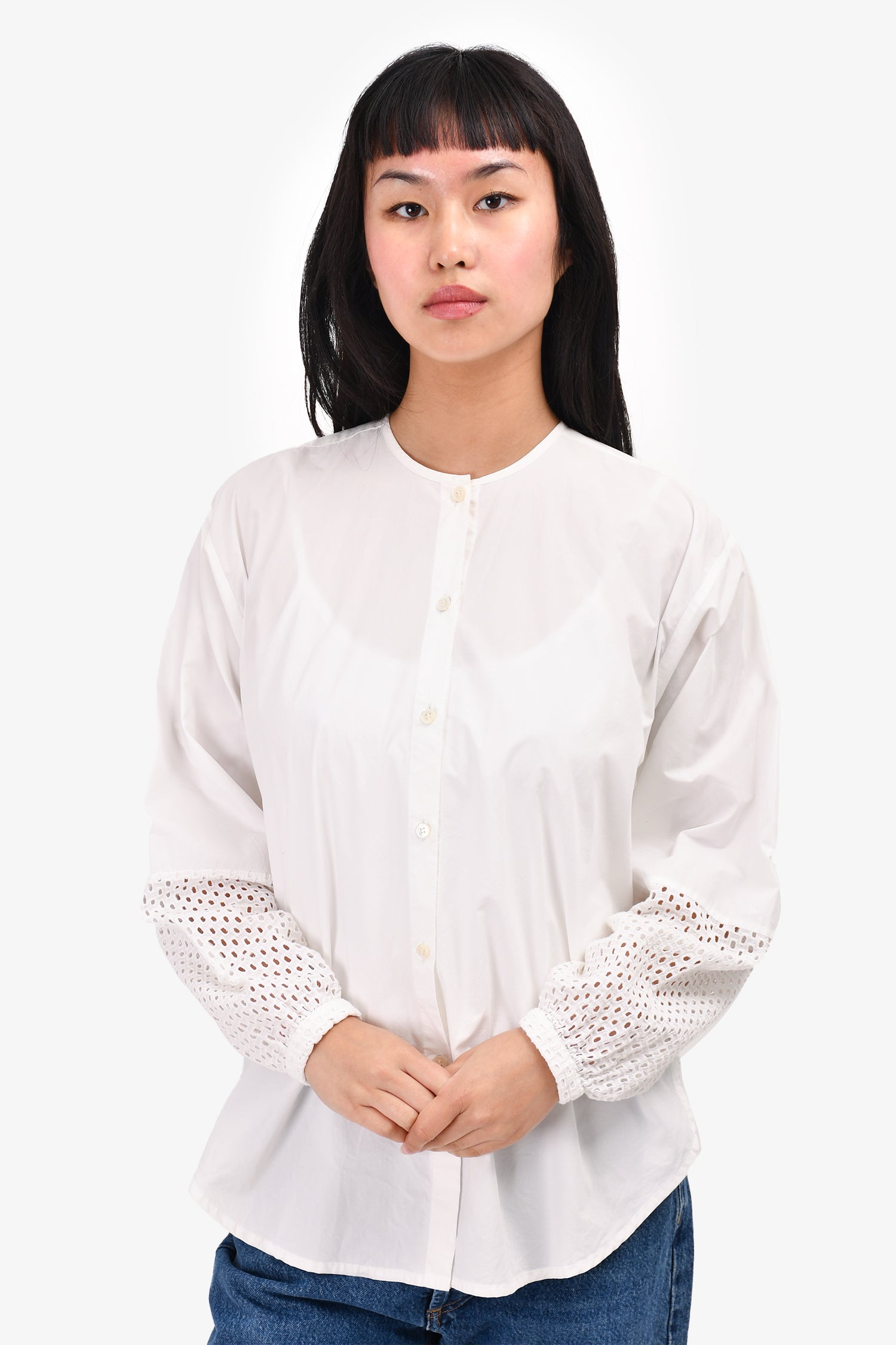 Refresh availabilityQueene and Belle White Perforated Top. Front button-up closure. Button closure on the cuffs.