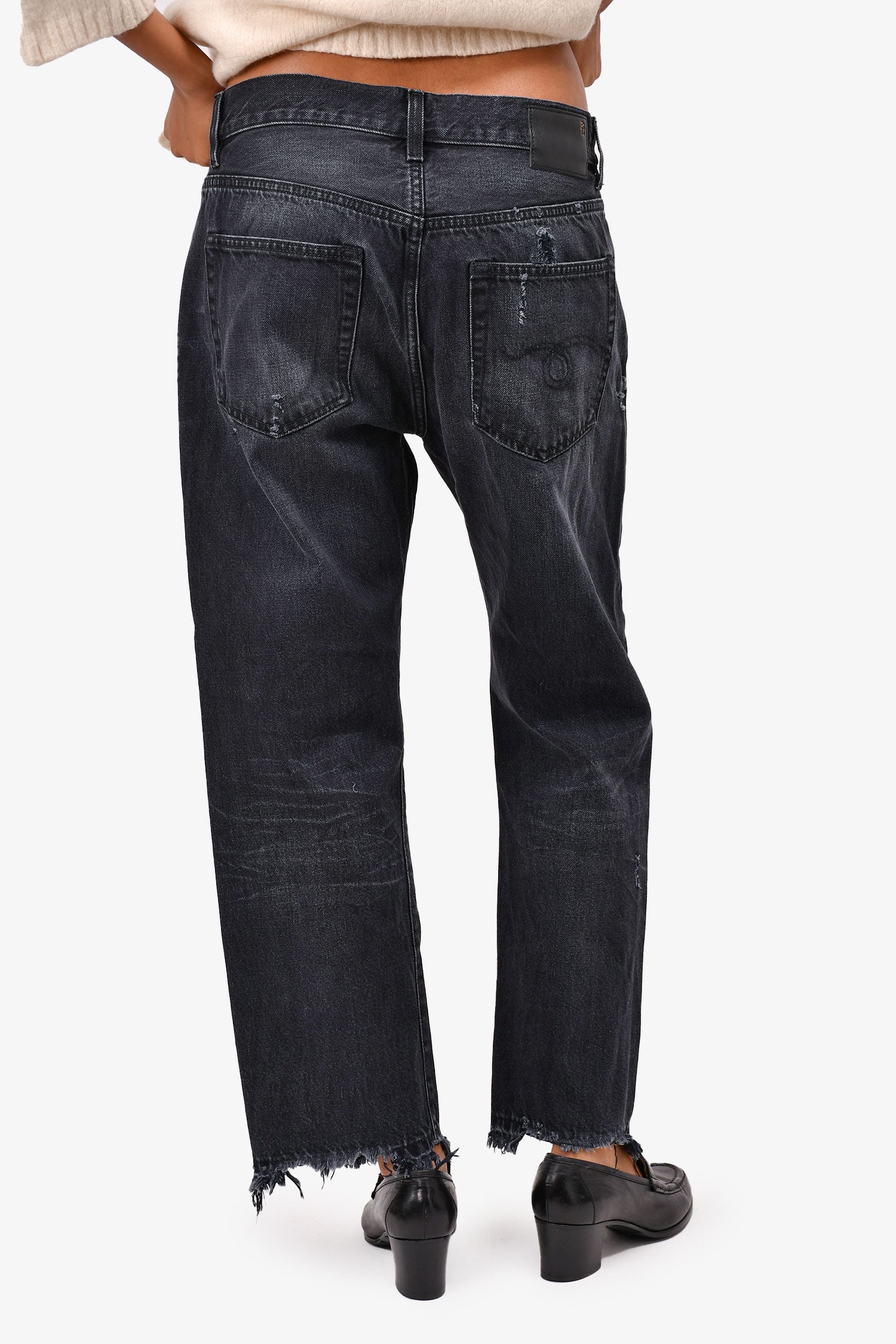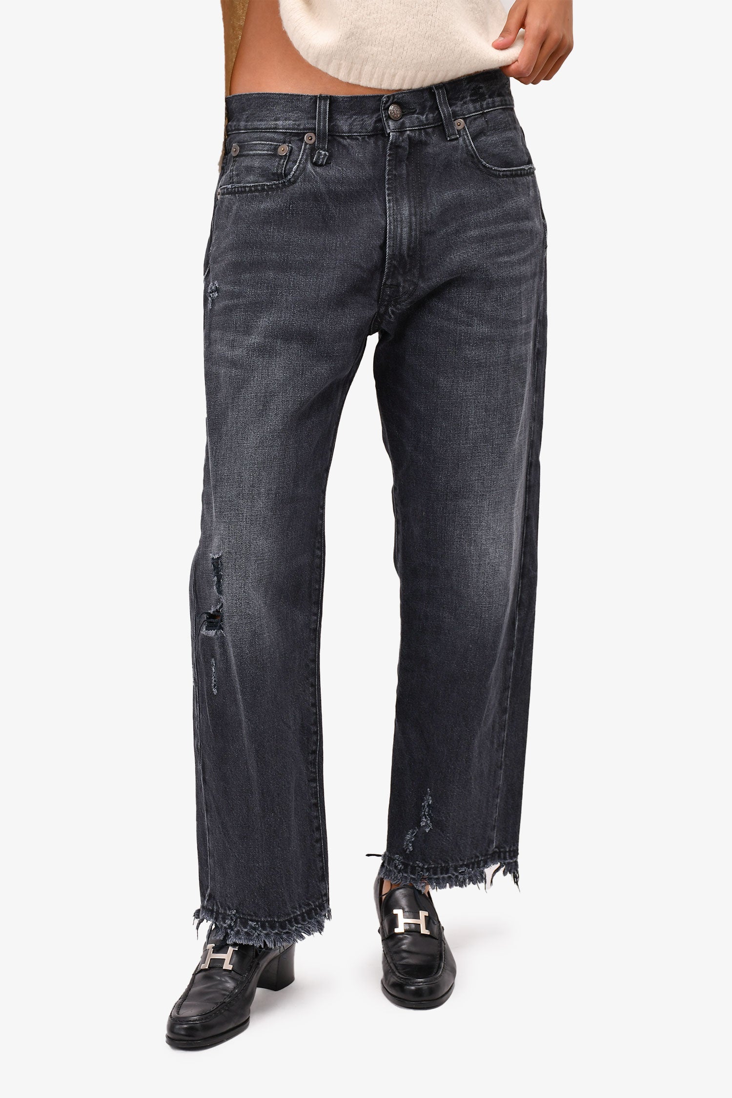 R13 Black Denim Distressed Tapered Jeans Size 27