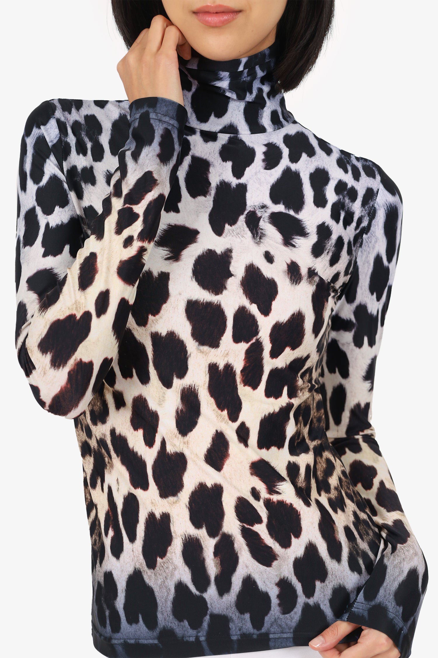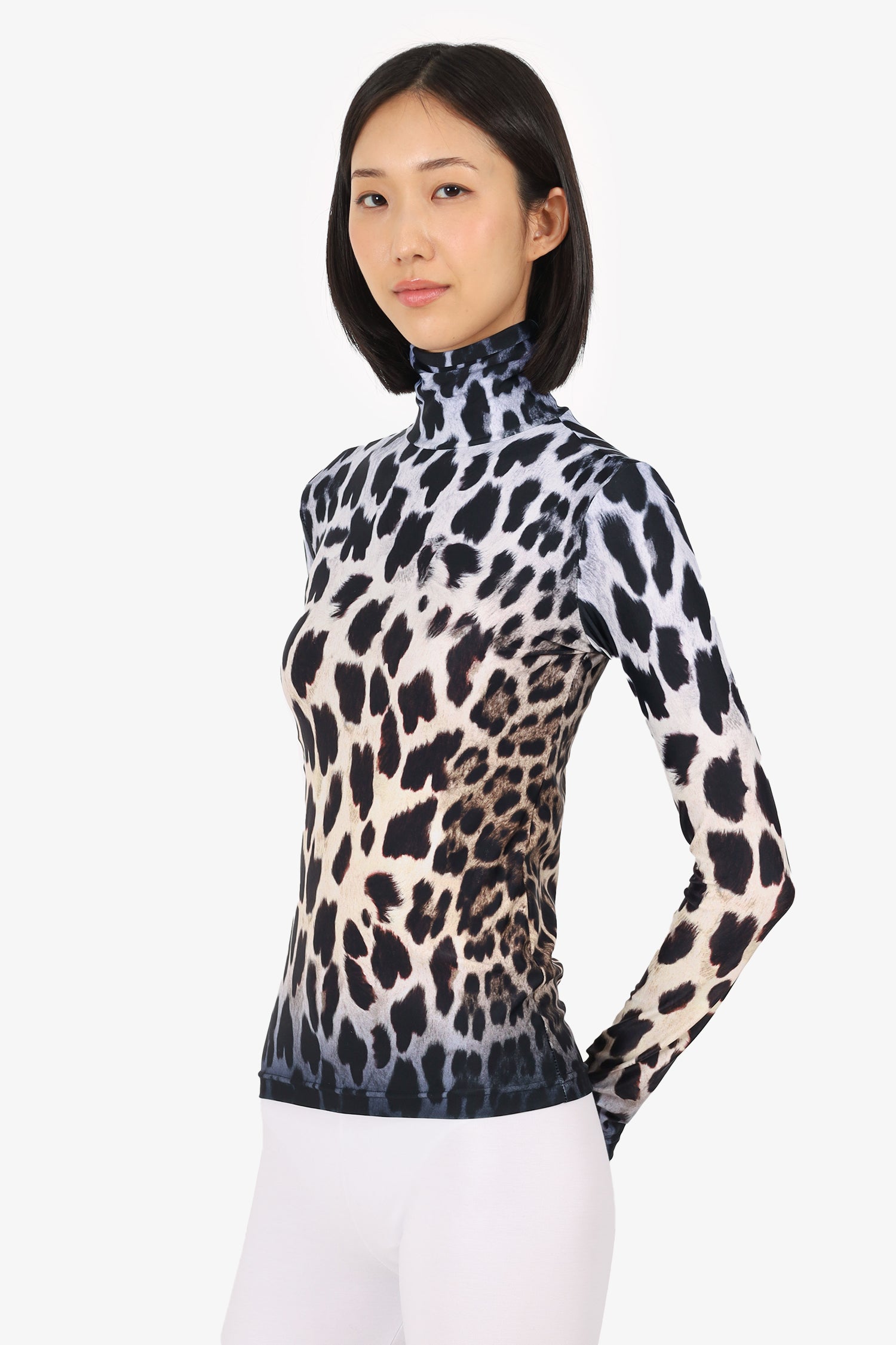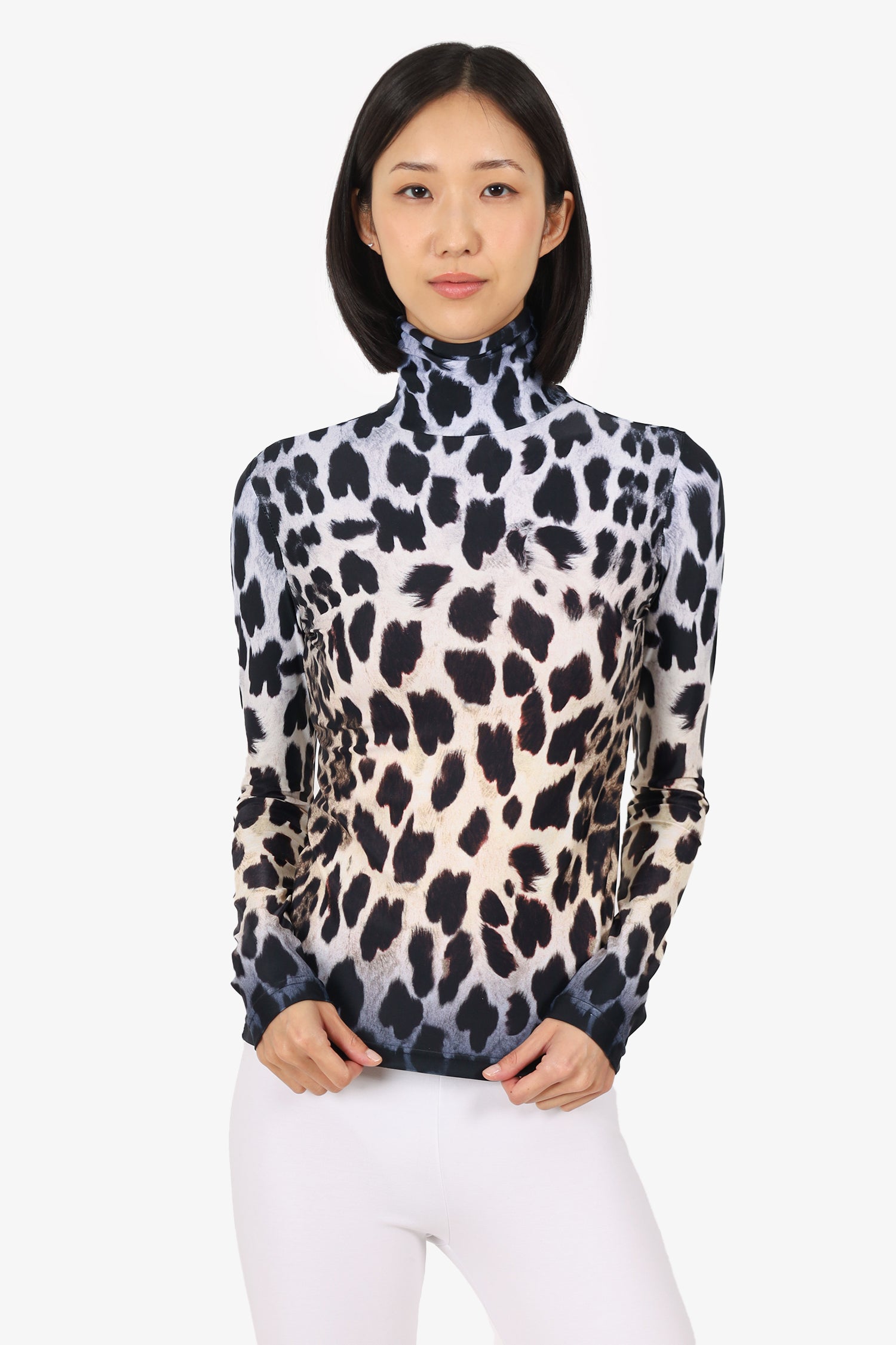 Refresh availabilityR13 Faded Leopard Turtleneck Top. Pull-on. Turtle-neckline. Tonal stitching.