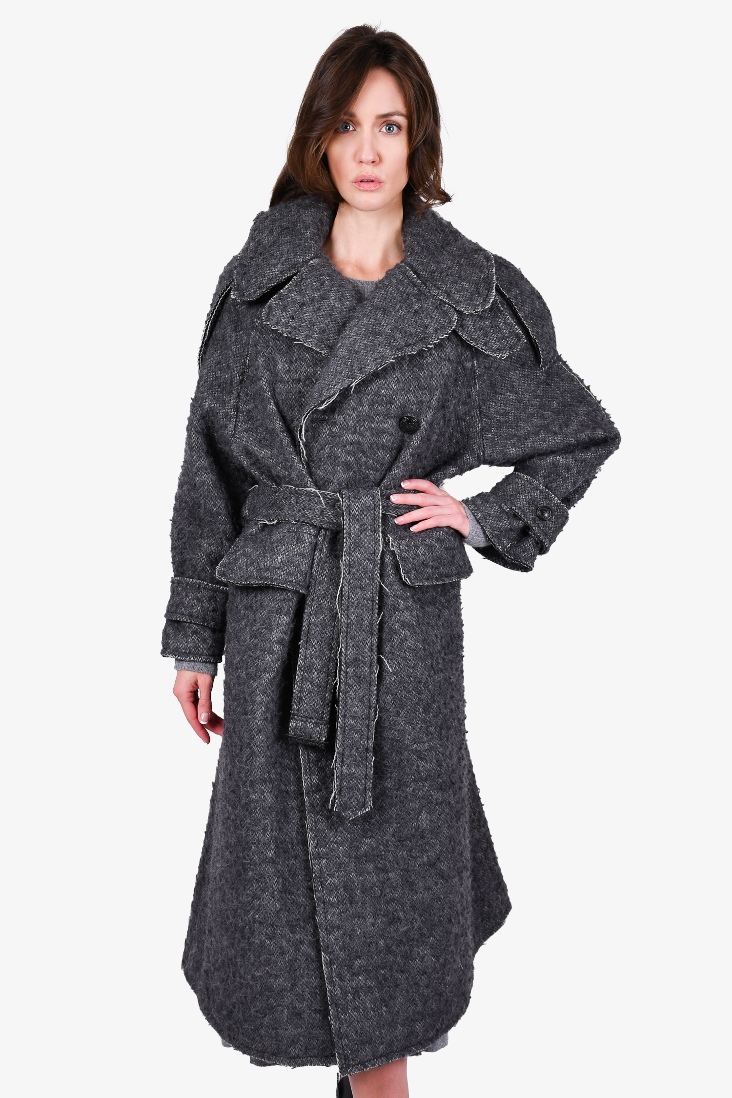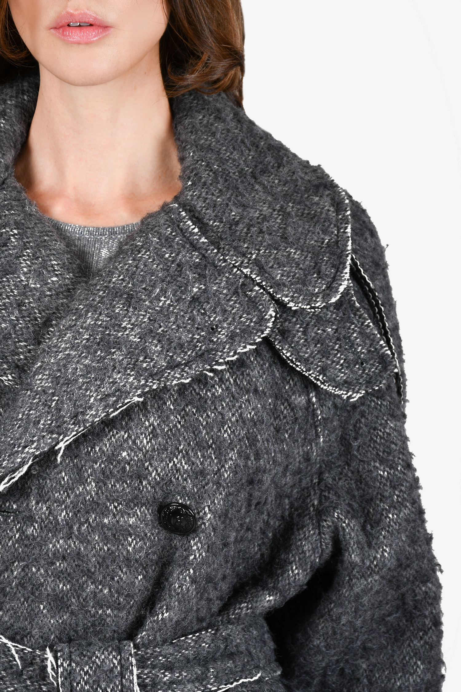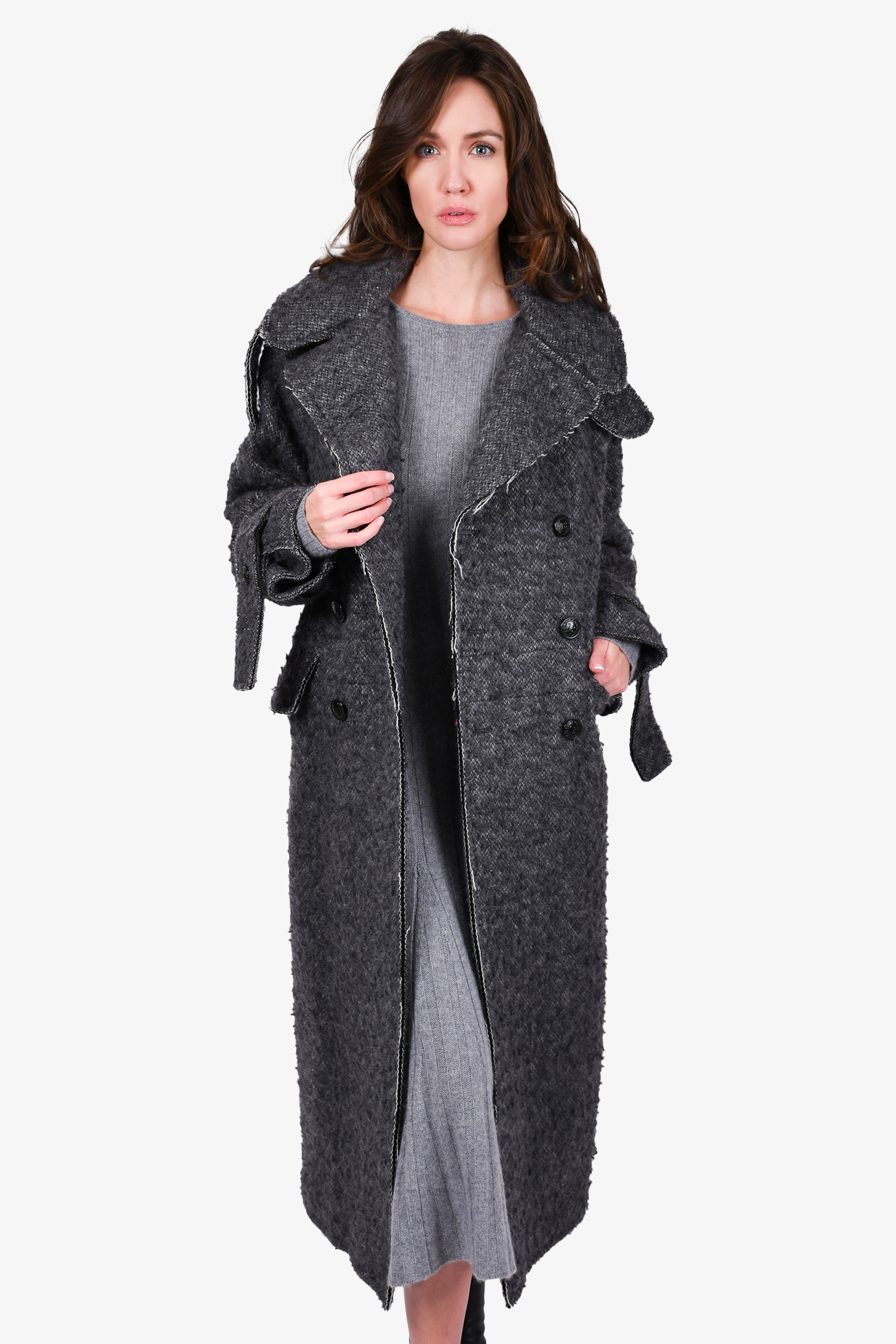 Refresh availabilityR13 Grey Wool Belted 'Jumbo Military' Coat. Front button-up closure. Lined. Front pockets. Tonal stitching.