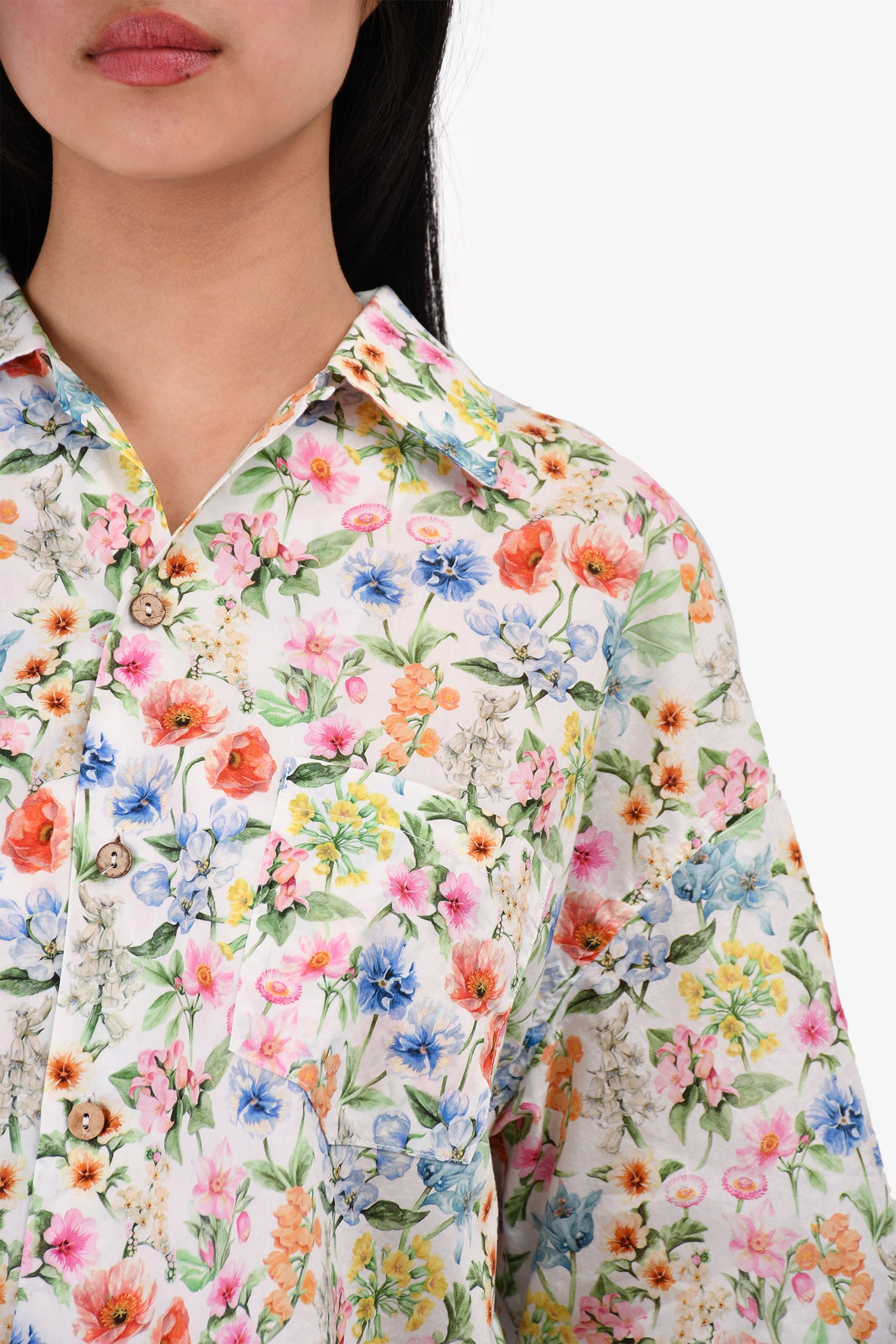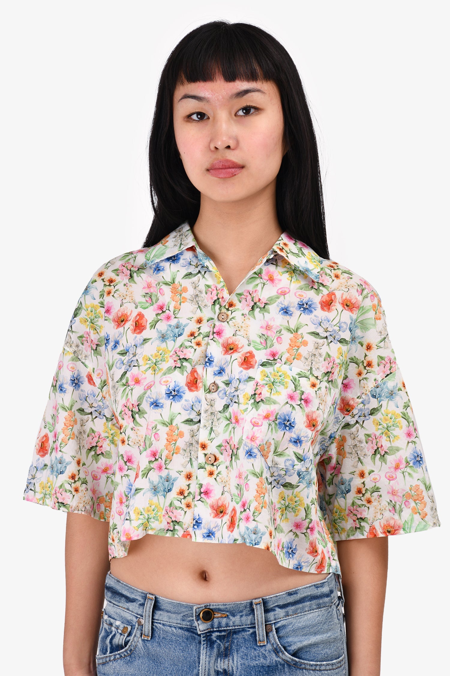 Refresh availabilityR13 X Liberty of London Floral Cropped Button Down Top. Single chest pocket. Unlined.
