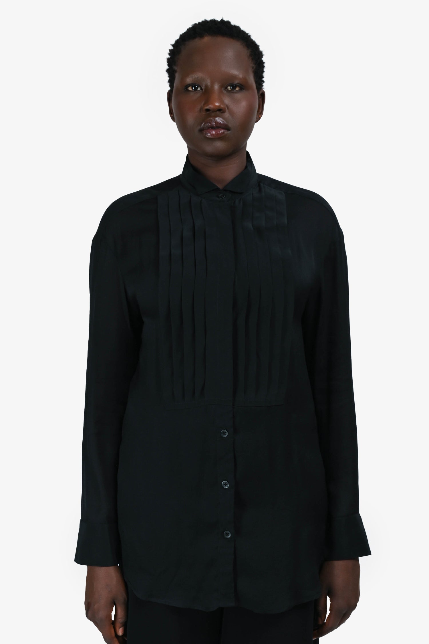 Refresh availabilityRag & Bone Black Pleated Silk Sheer Top. Button closures on the cuffs.