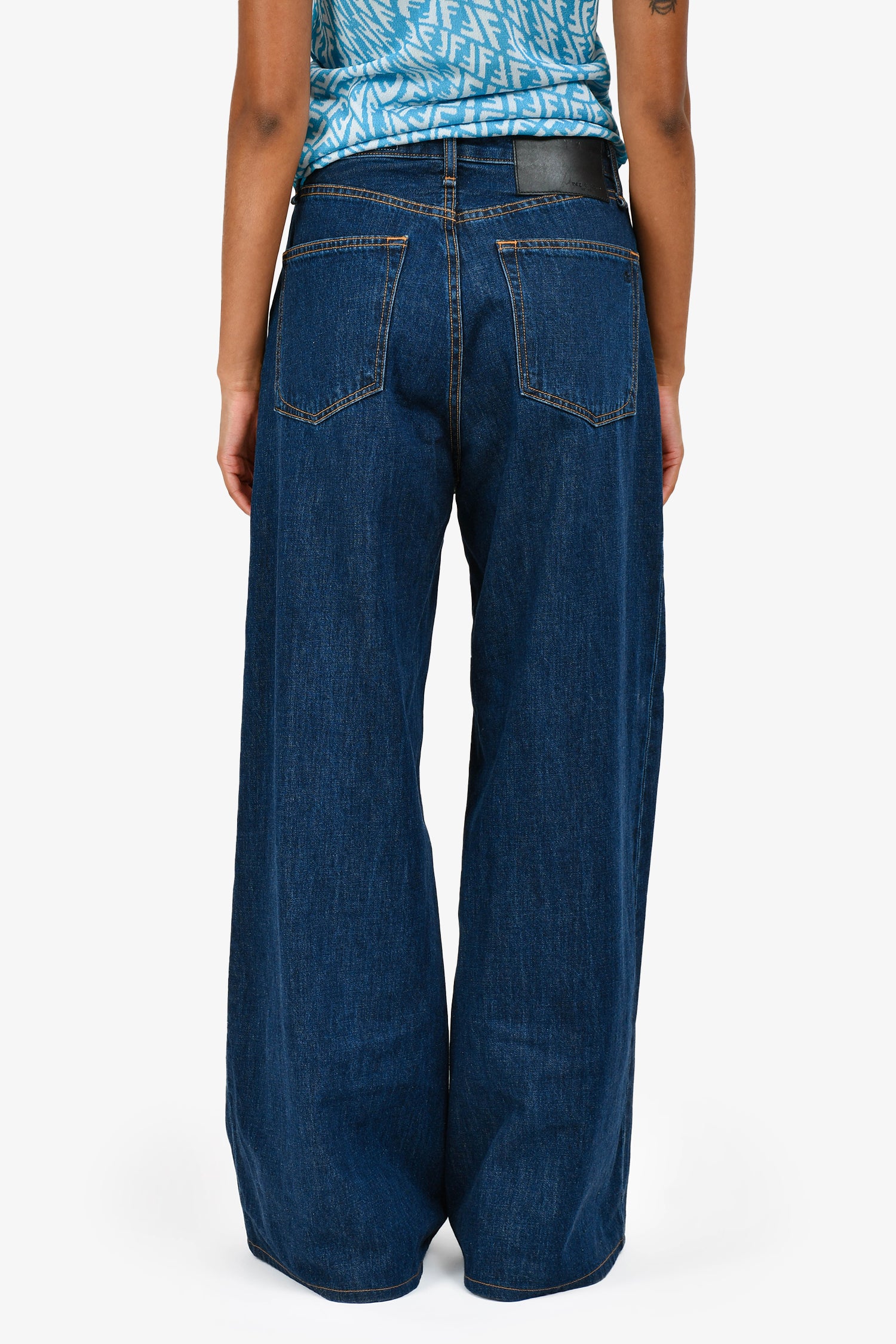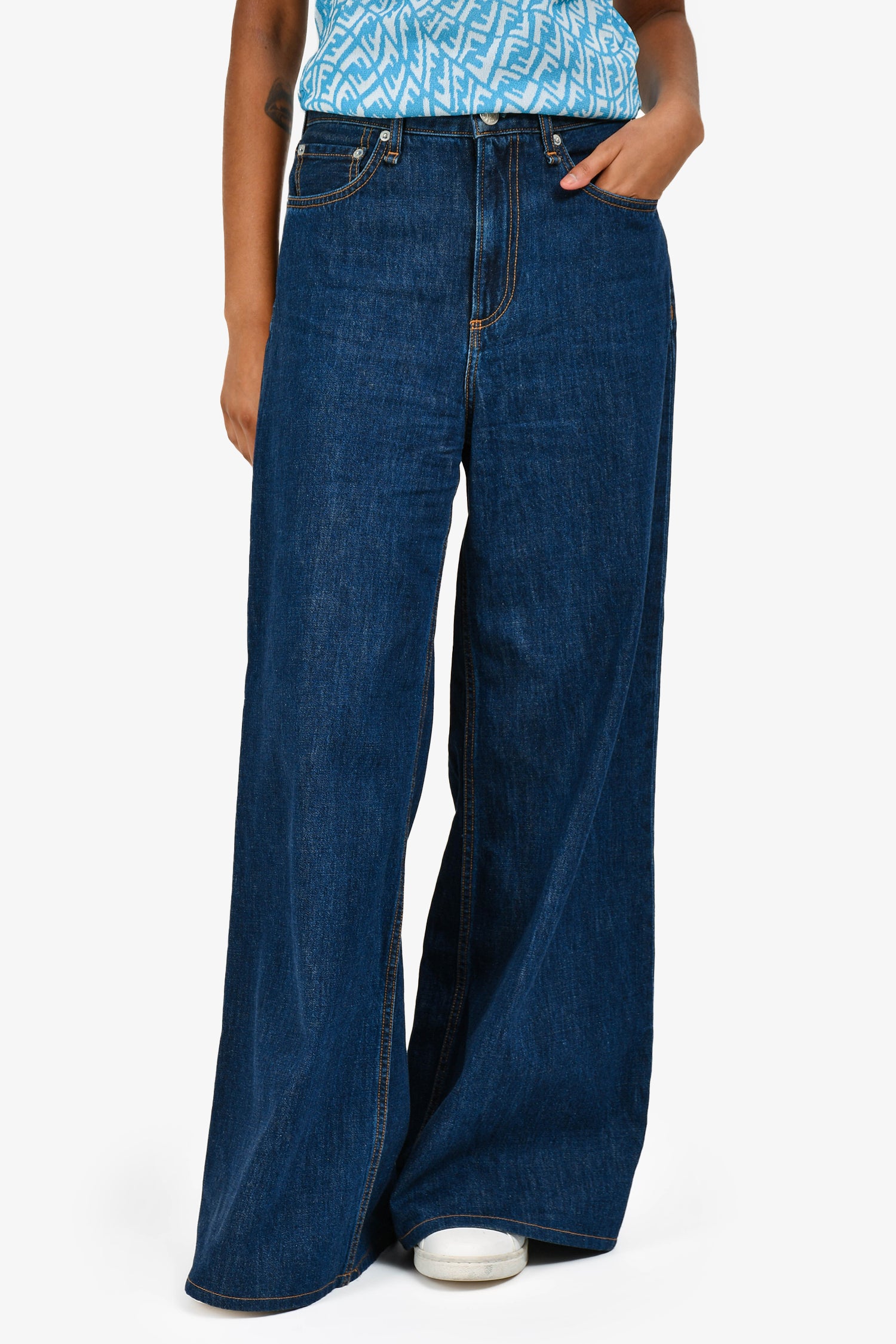 Refresh availabilityRag & Bone Blue Denim Dark Wash Wide Leg Jeans. High-rise waist. Classic five-pocket style. Wide leg silhouette. Zip fly with button closure. Contrast stitching.