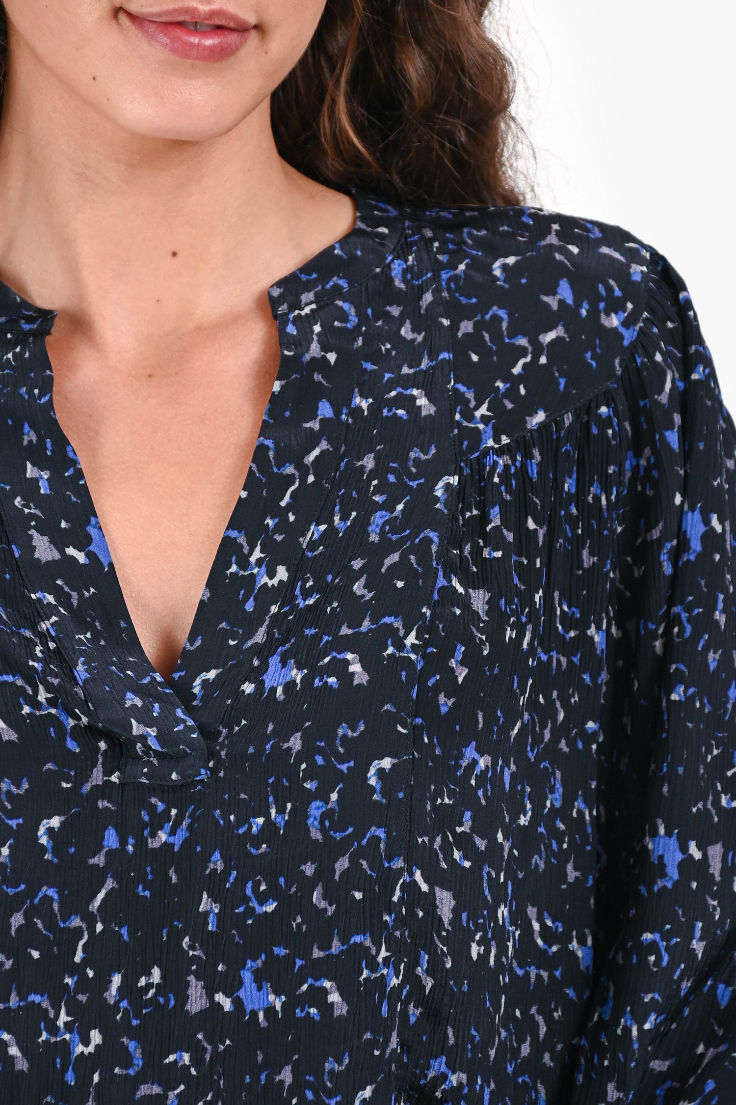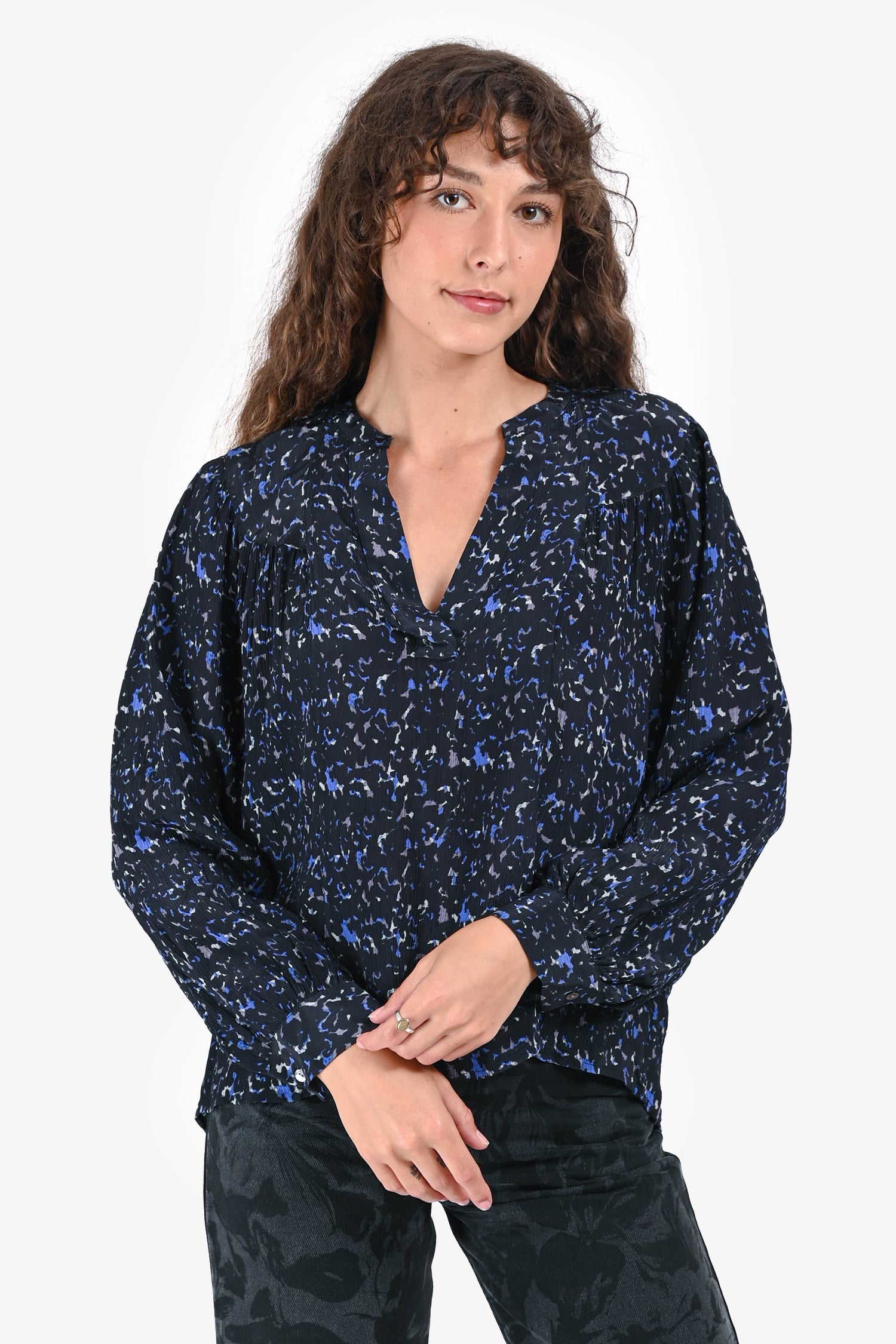 Refresh availabilityRails Black/Blue Printed 'Fable' Blouse. Split V-neckline. Long sleeves with buttoned cuffs. Tonal stitching.