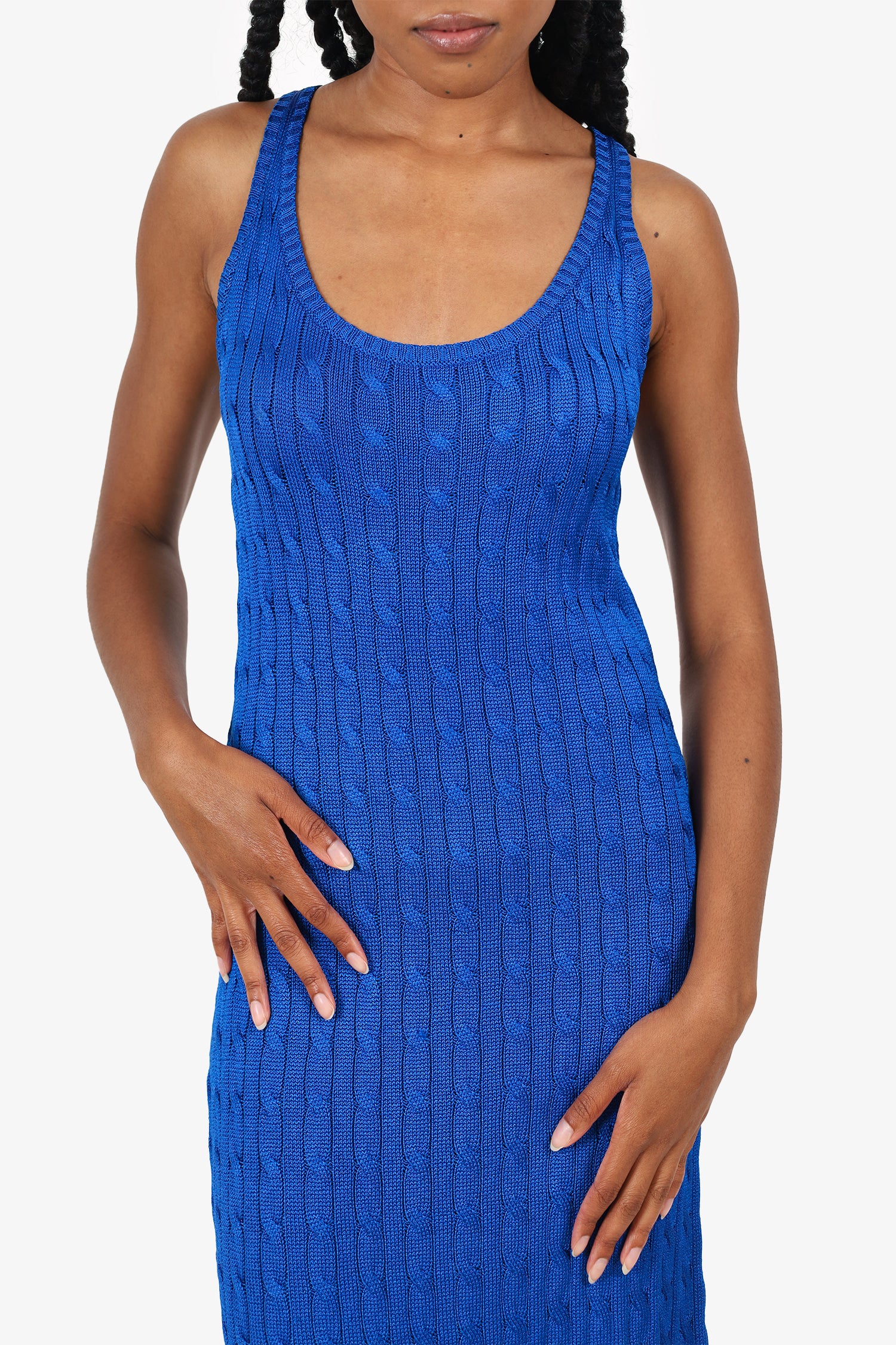 Refresh availabilityRalph Lauren Blue Silk Cable Knit Dress. Pull-on. Round neckline. Tonal stitching.