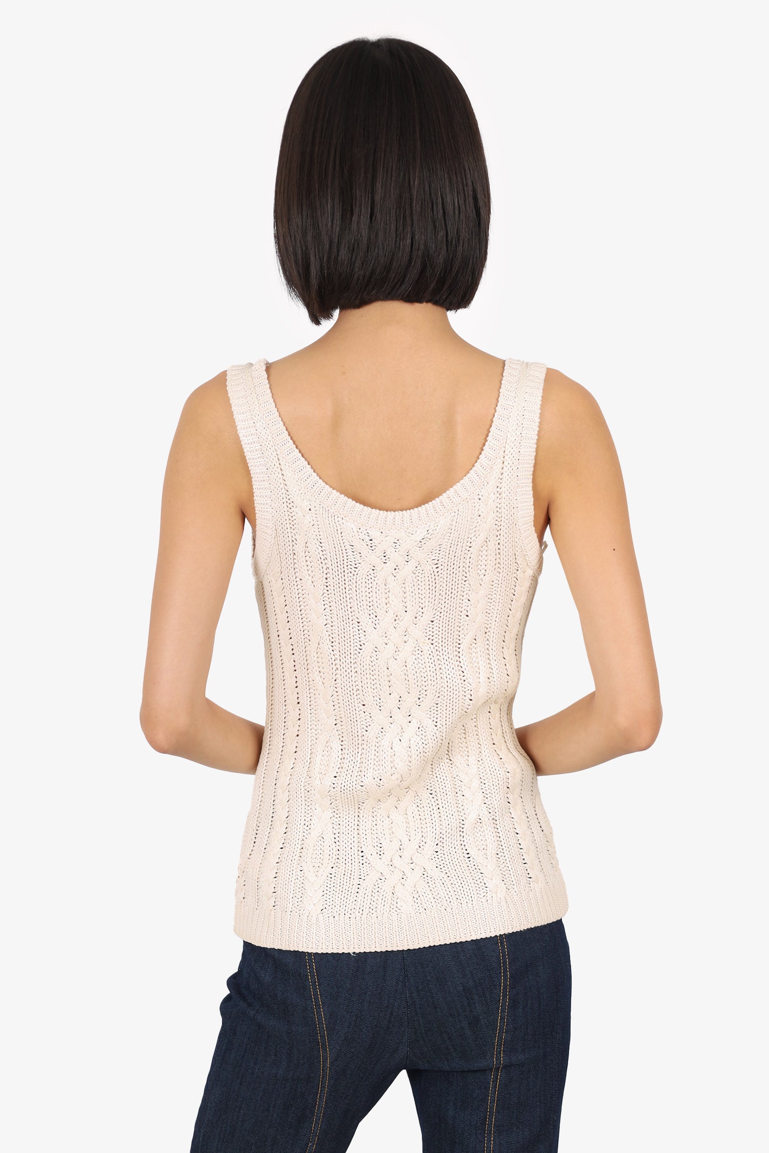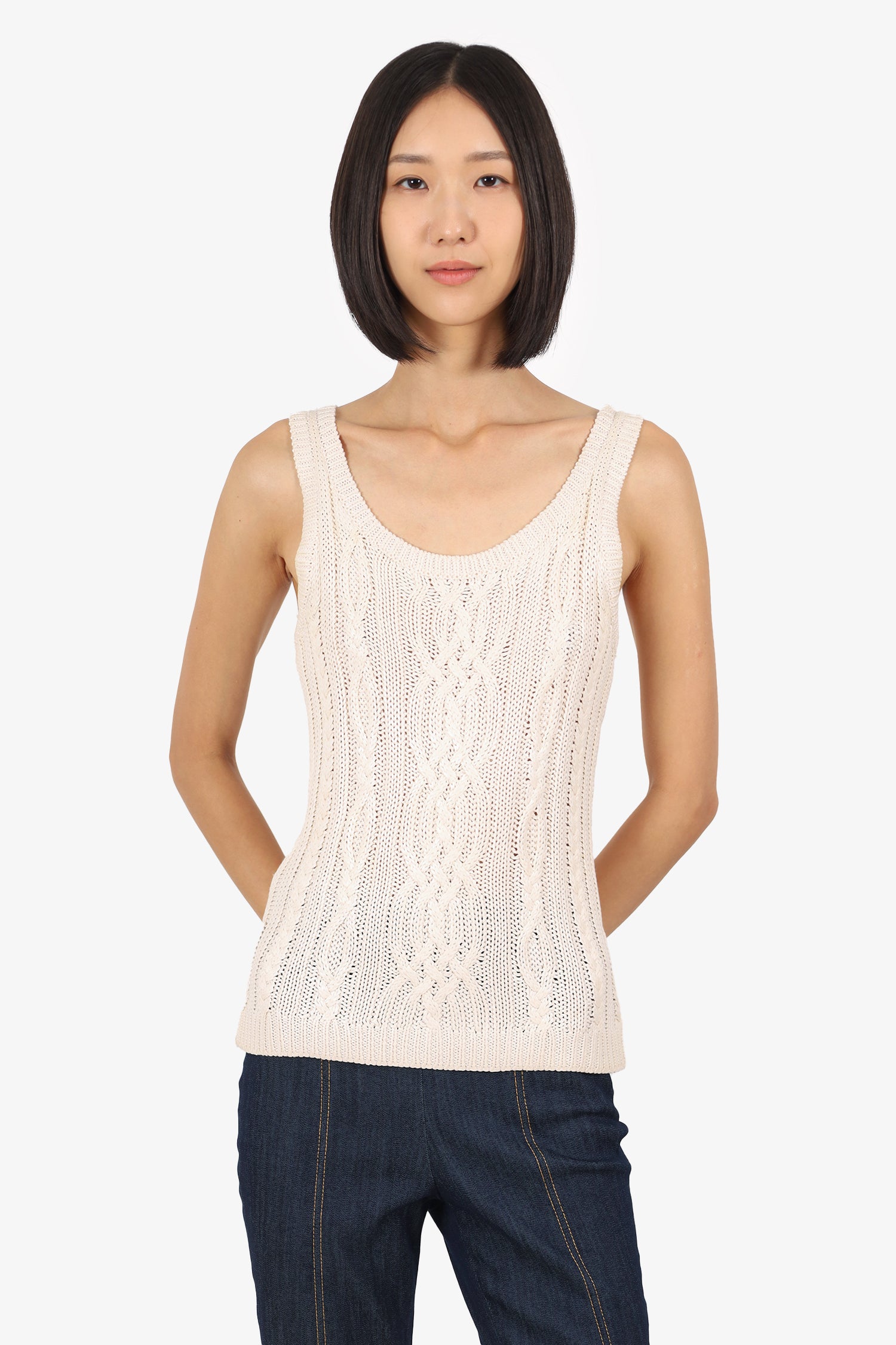 Ralph Lauren Cream Silk Cable Knit Sweater Vest Size S