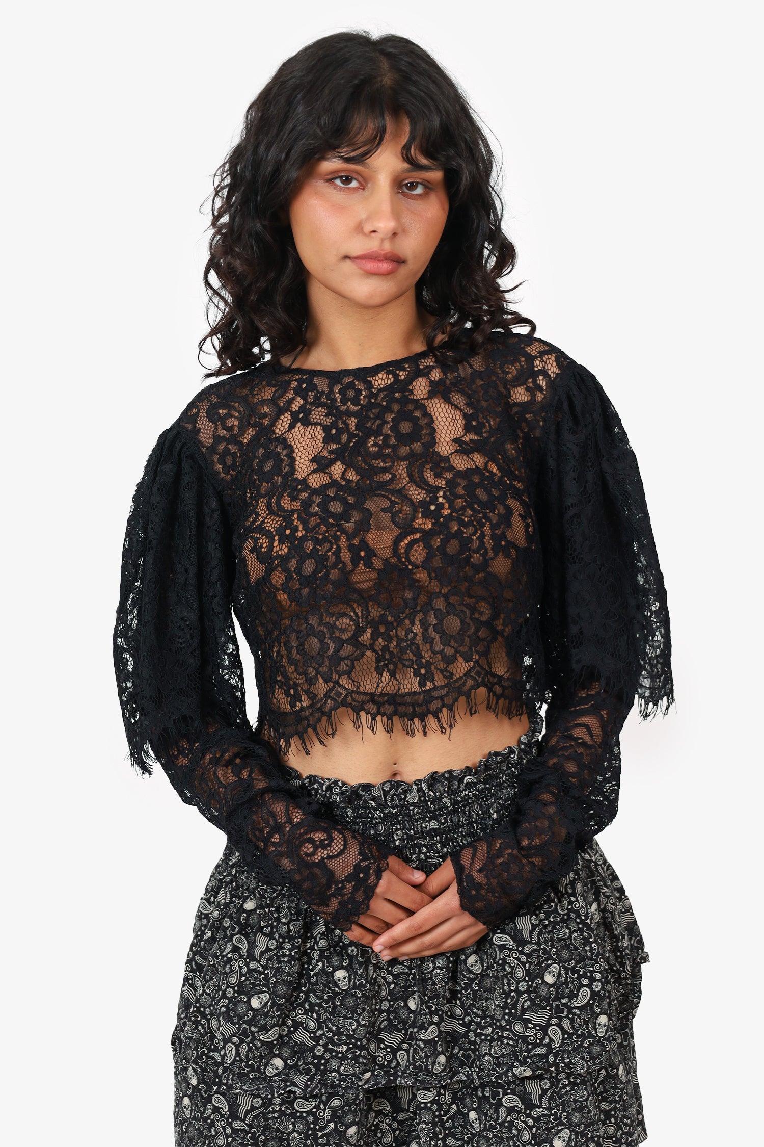 Rasario Black Lace Long Sleeve Ruffle Detail Top Size 42