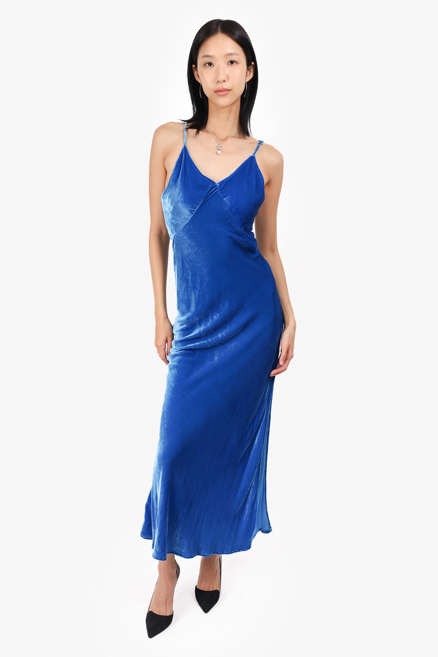 Refresh availabilityRat & Boa Blue Silk Velvet Maxi Dress. Pull-on. Adjustable straps. Unlined. Tonal stitching.