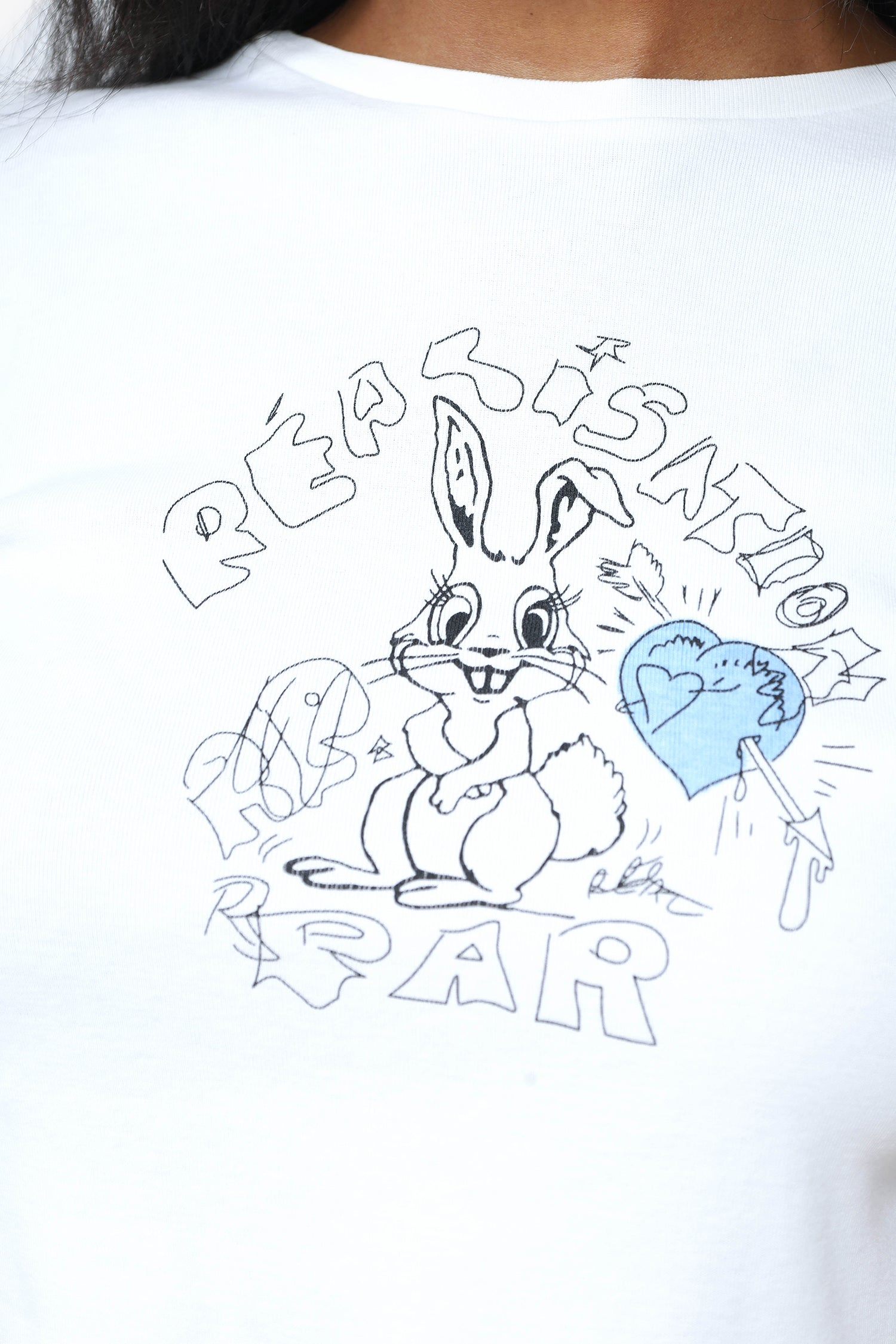 Refresh availabilityRealisation Par White/Blue Bunny Short Sleeve Tee. Scoop-neck collar. Tonal stitching.