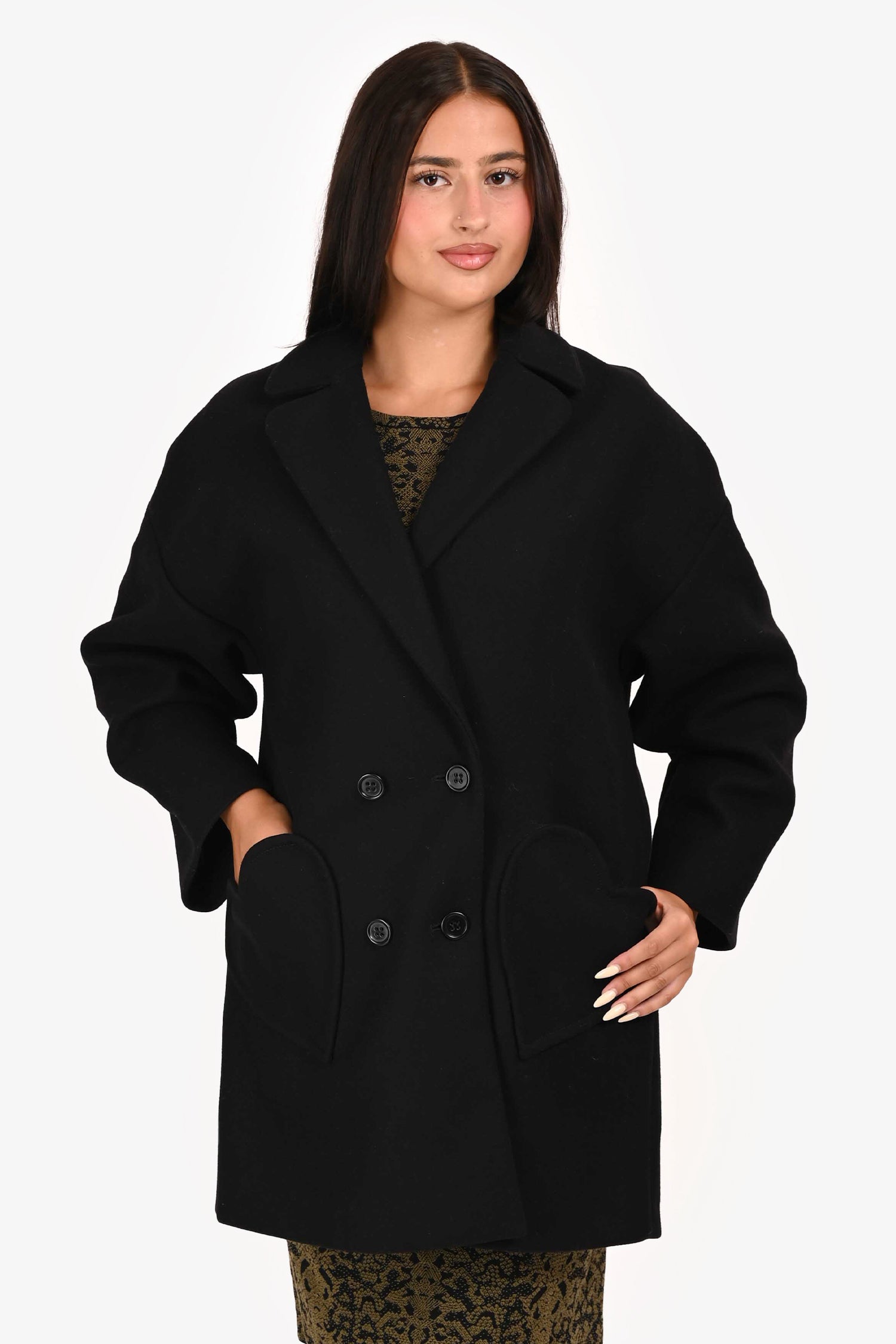 Red Valentino Black Heart Pocket Double Breasted Coat Size 42