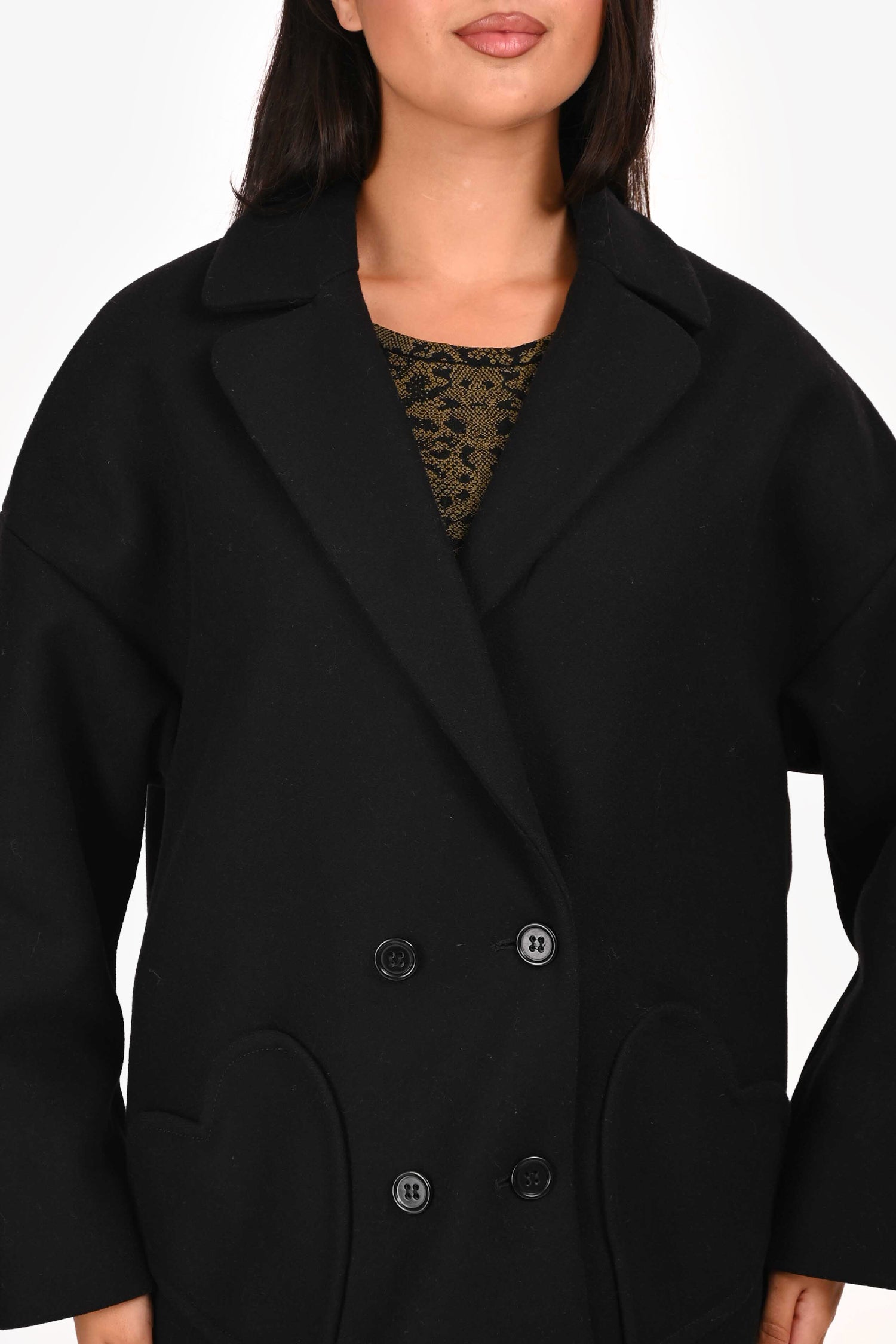 Refresh availabilityRed Valentino Black Heart Pocket Double Breasted Coat. Front button-up closure. Front pockets.
