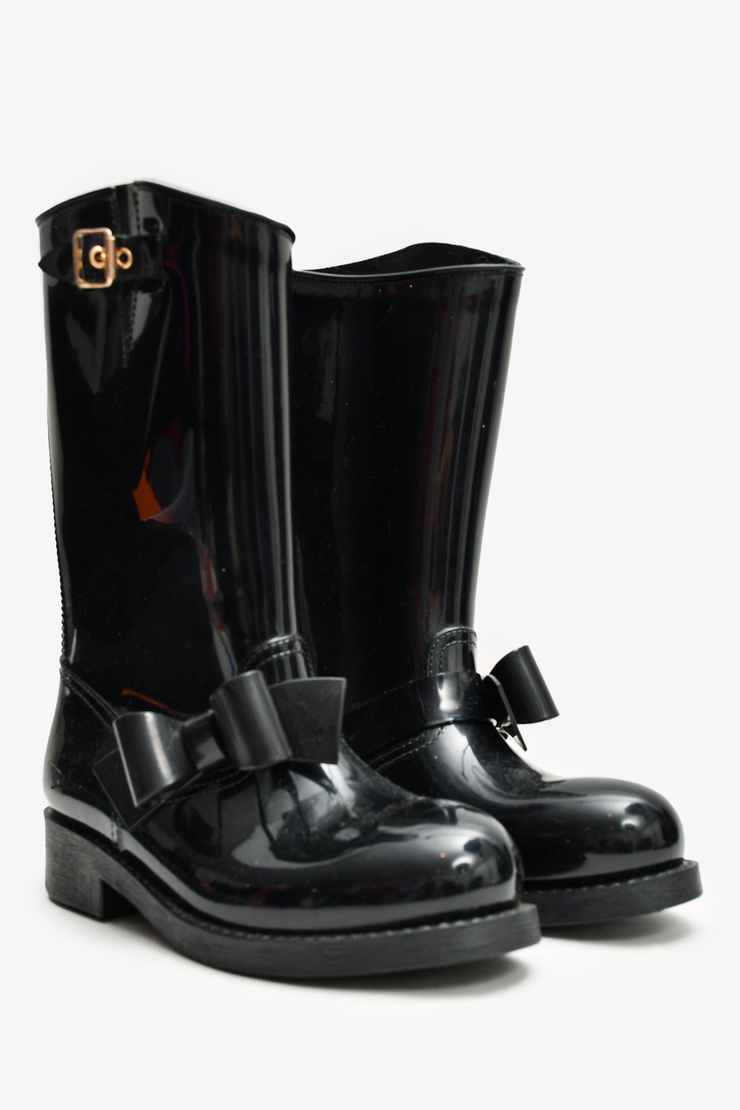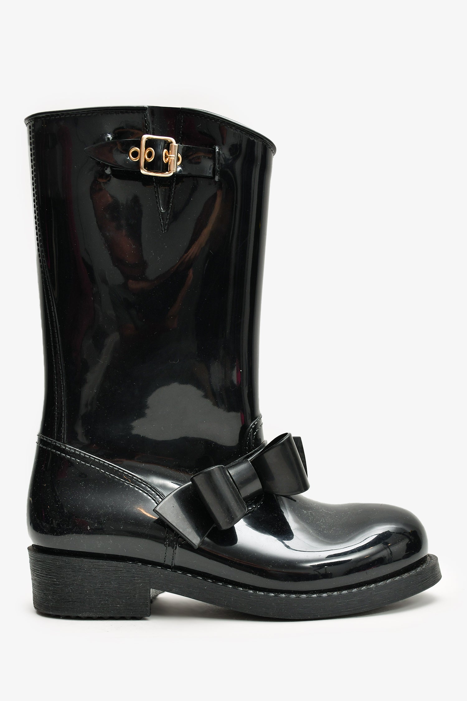 Red Valentino Black Rubber Bow Detailed Rain Boots Size 38