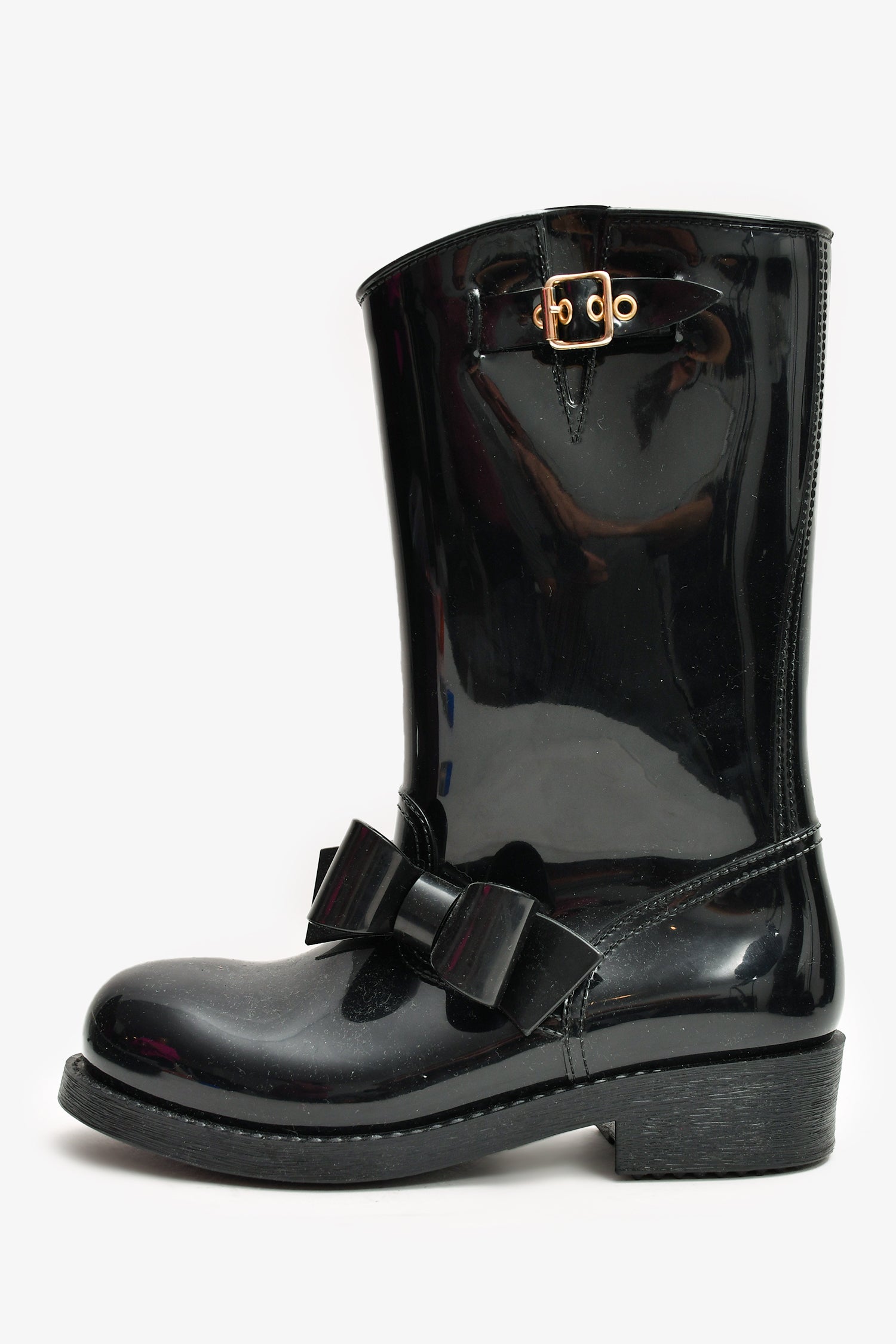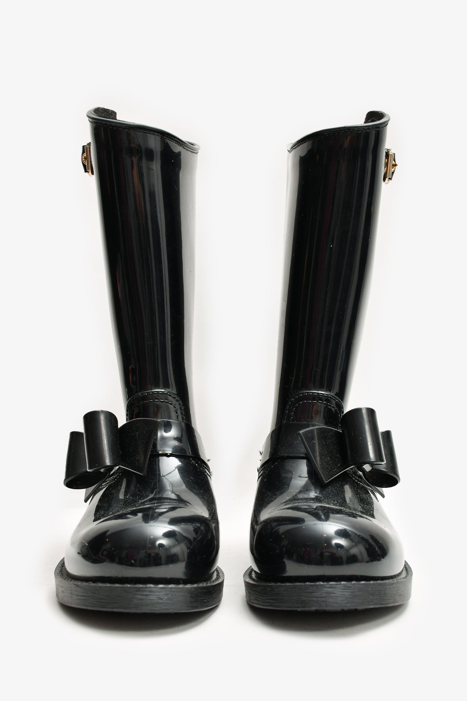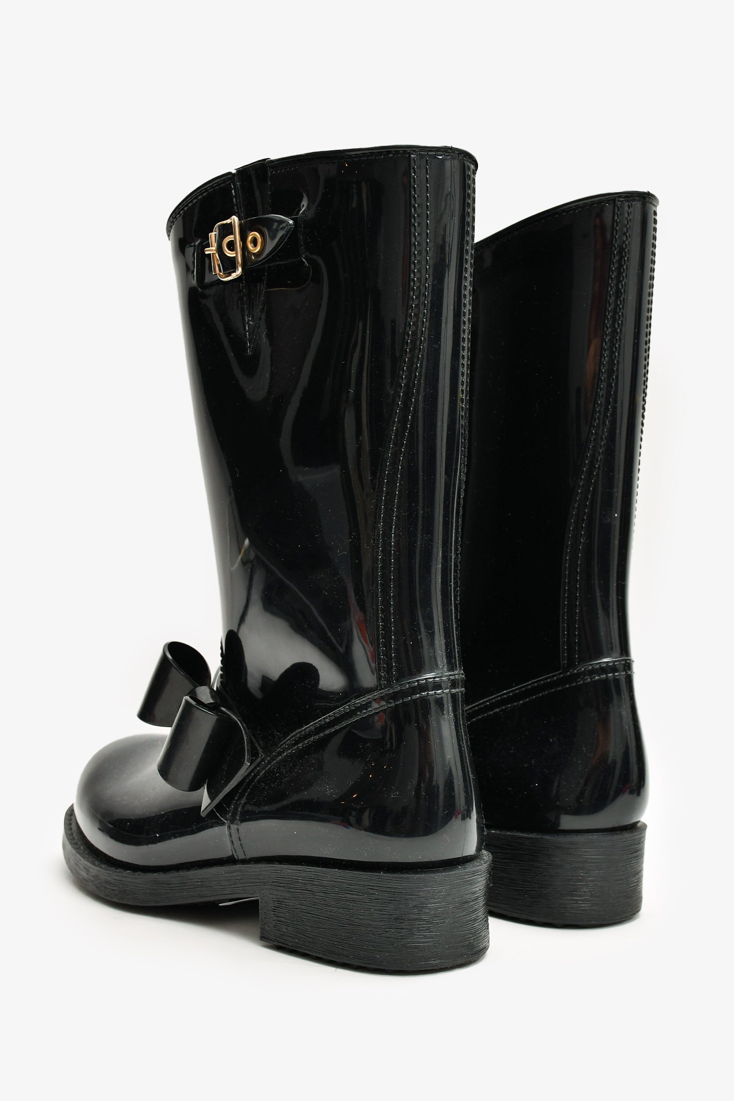 Refresh availabilityRed Valentino Black Rubber Bow Detailed Rain Boots. Slip on. Tonal stitching.