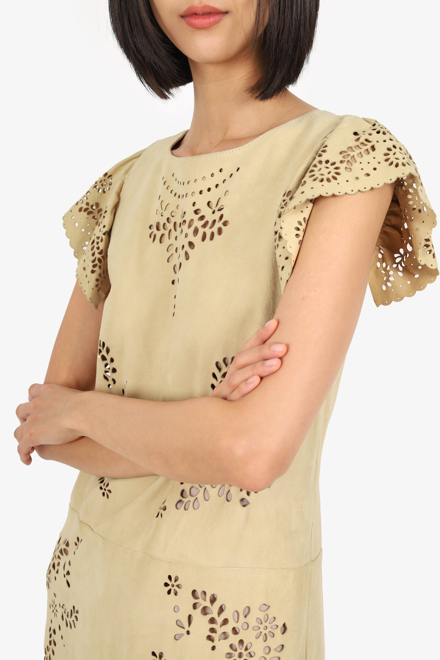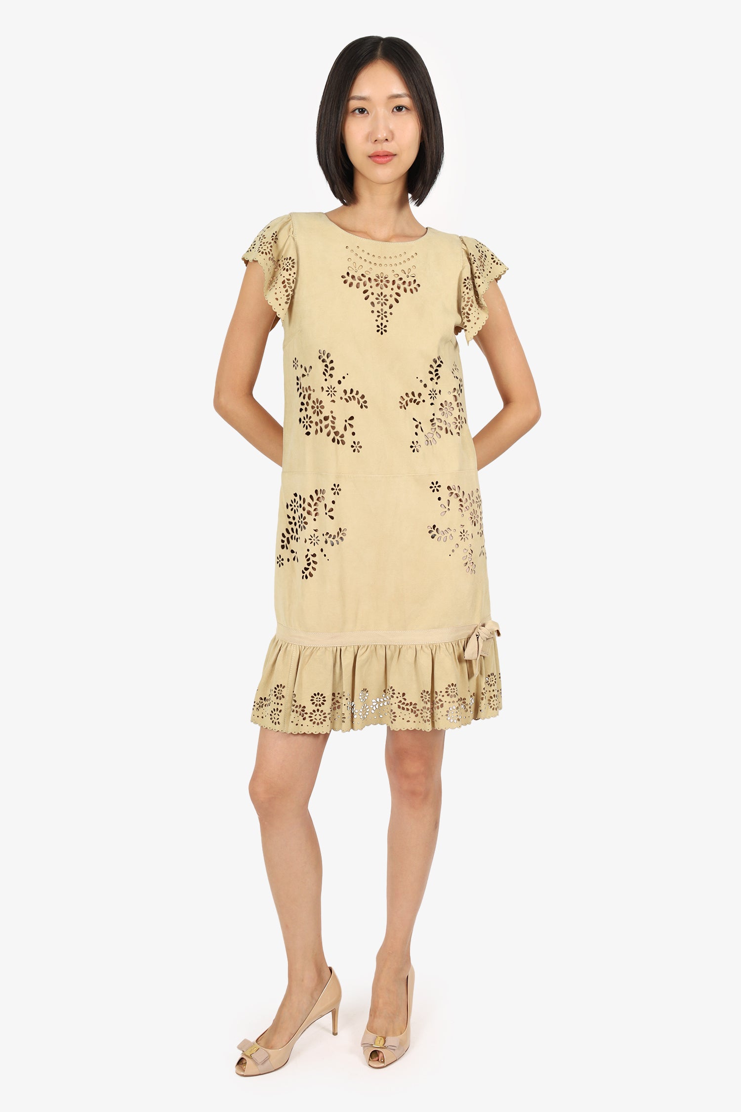 Red Valentino Brown Suede Eyelet Dress Size 46