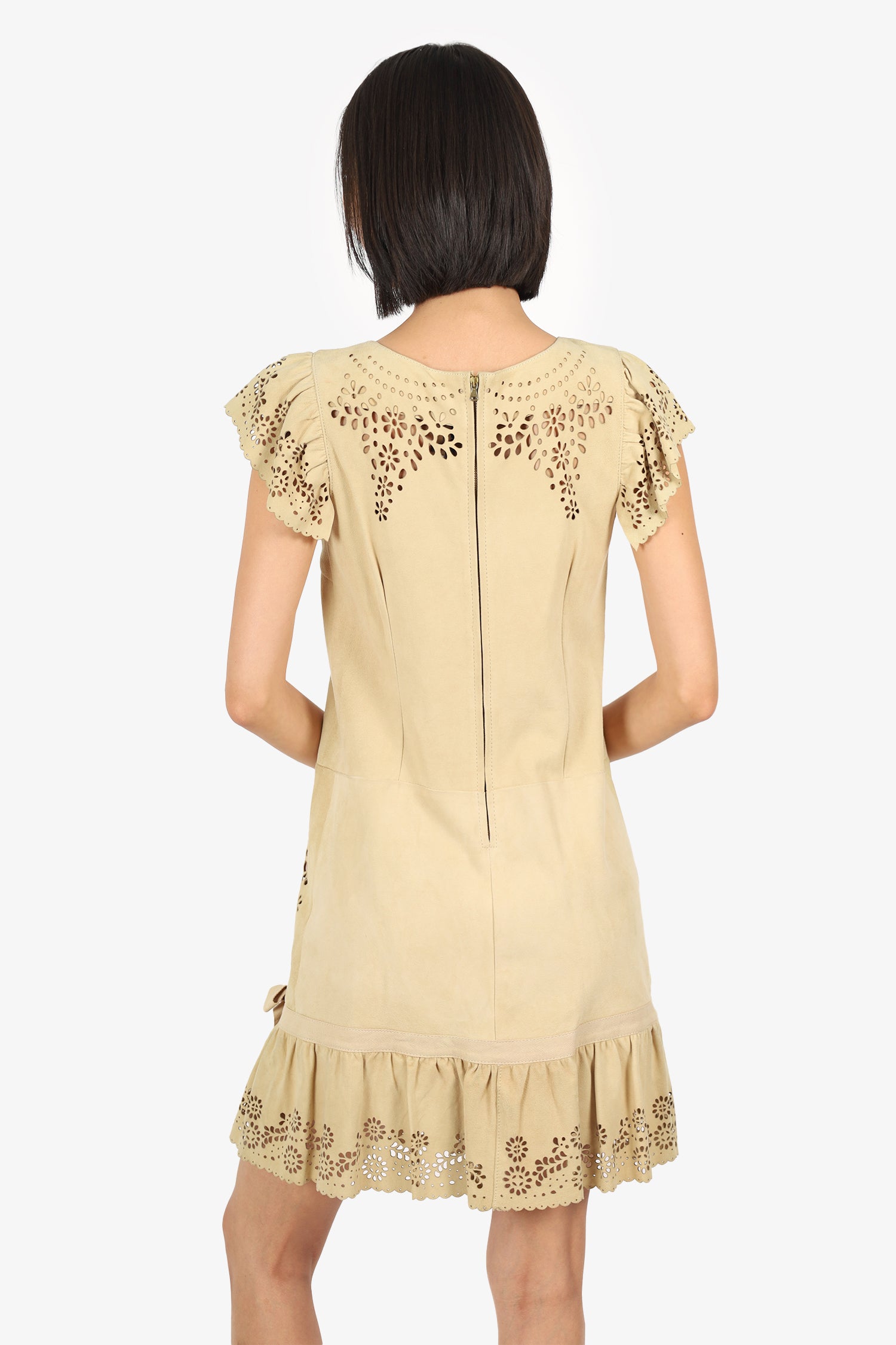 Refresh availabilityRed Valentino Brown Suede Eyelet Dress. Slip-on. Rear zip closure. Perforated design. Includes slip dress. Gold-tone hardware. Tonal stitching.