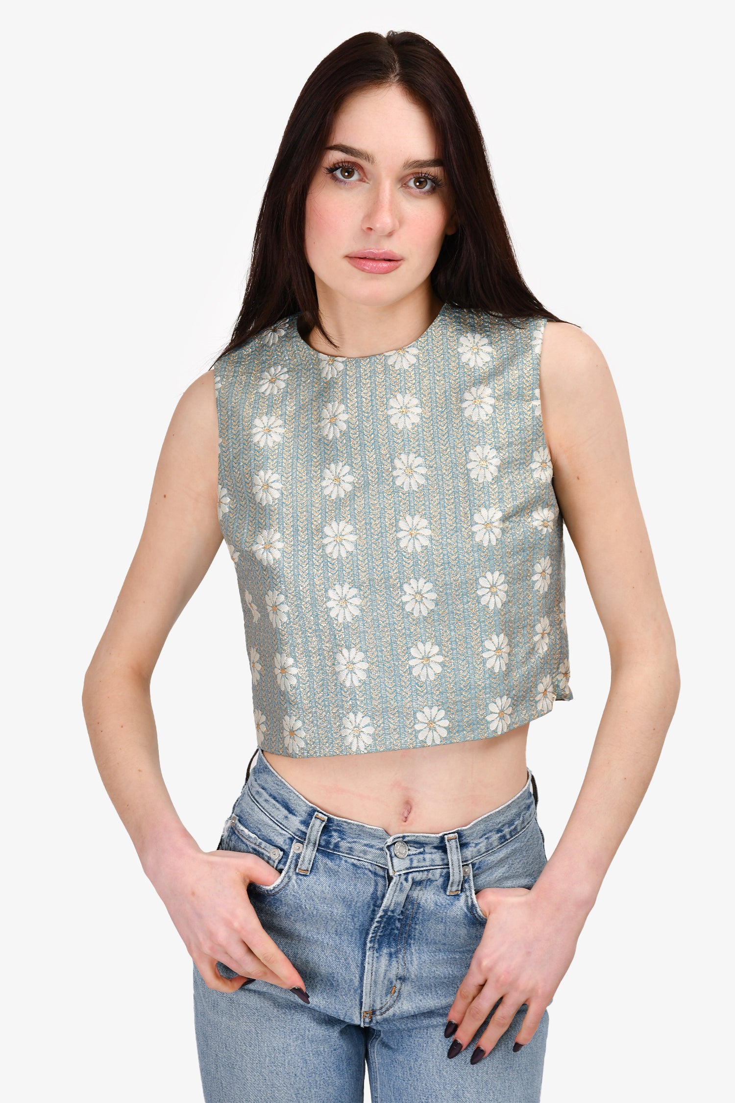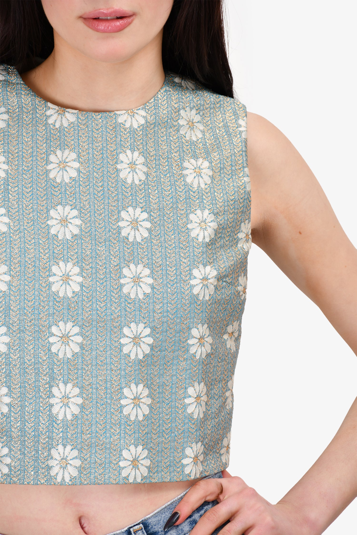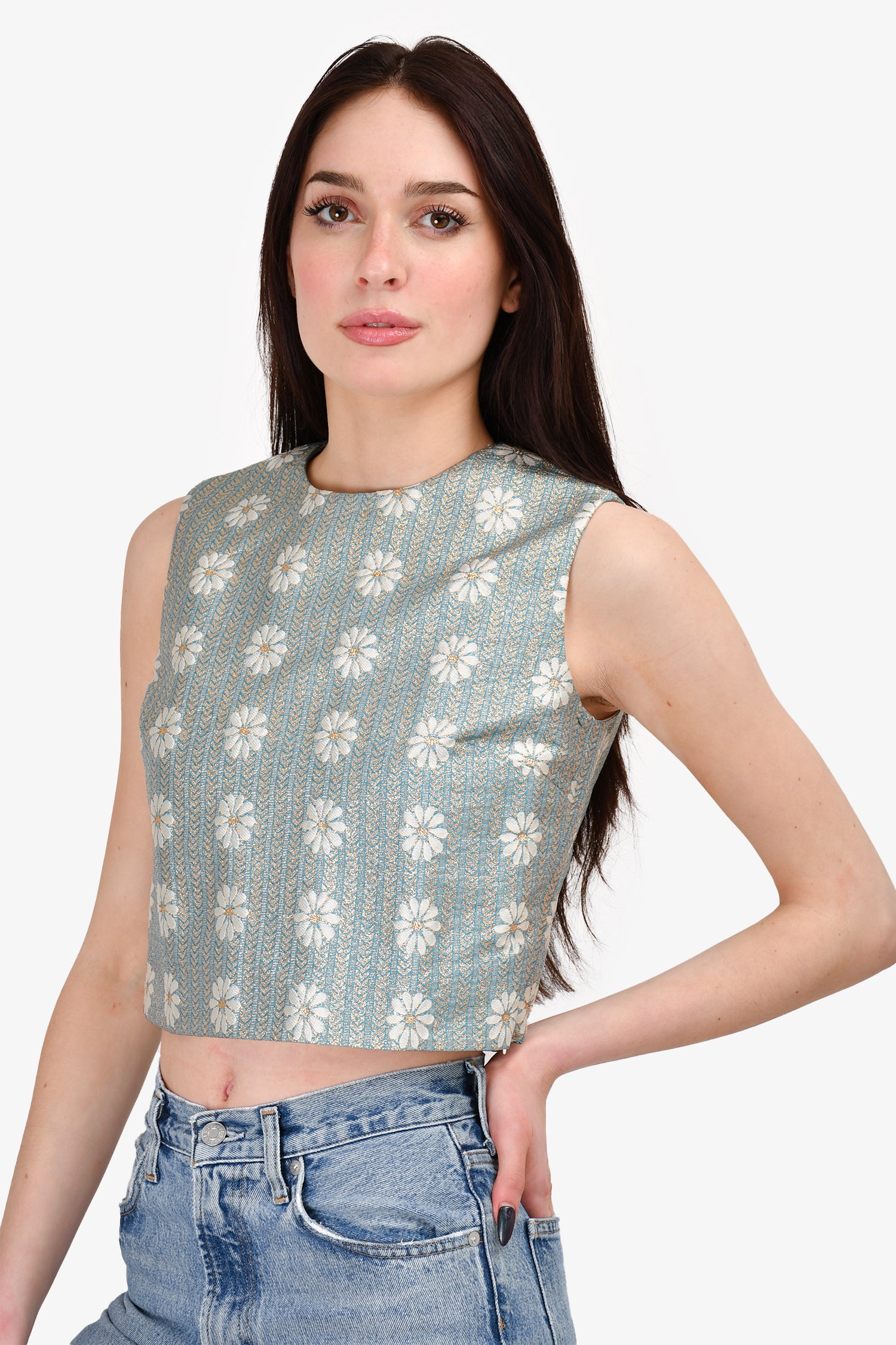 Refresh availabilityRed Valentino Mint Floral Jacquard Top. Round neck. Rear zip and hook closure. Lined. Tonal stitching.