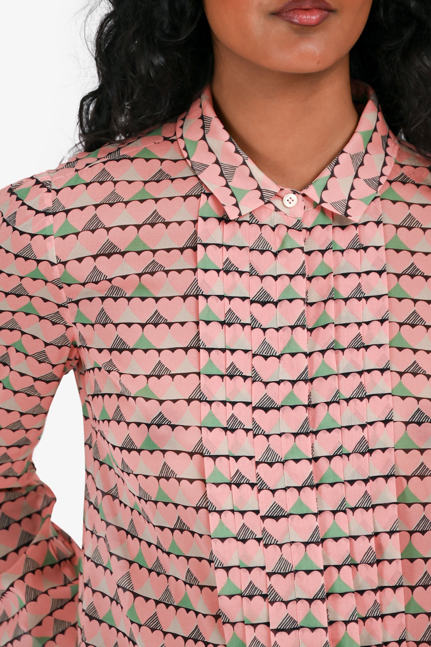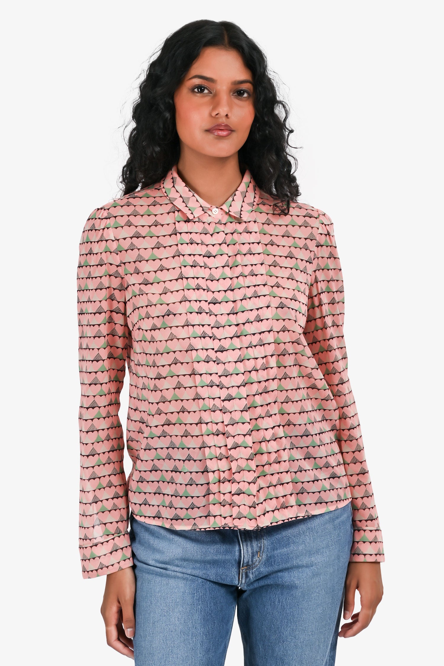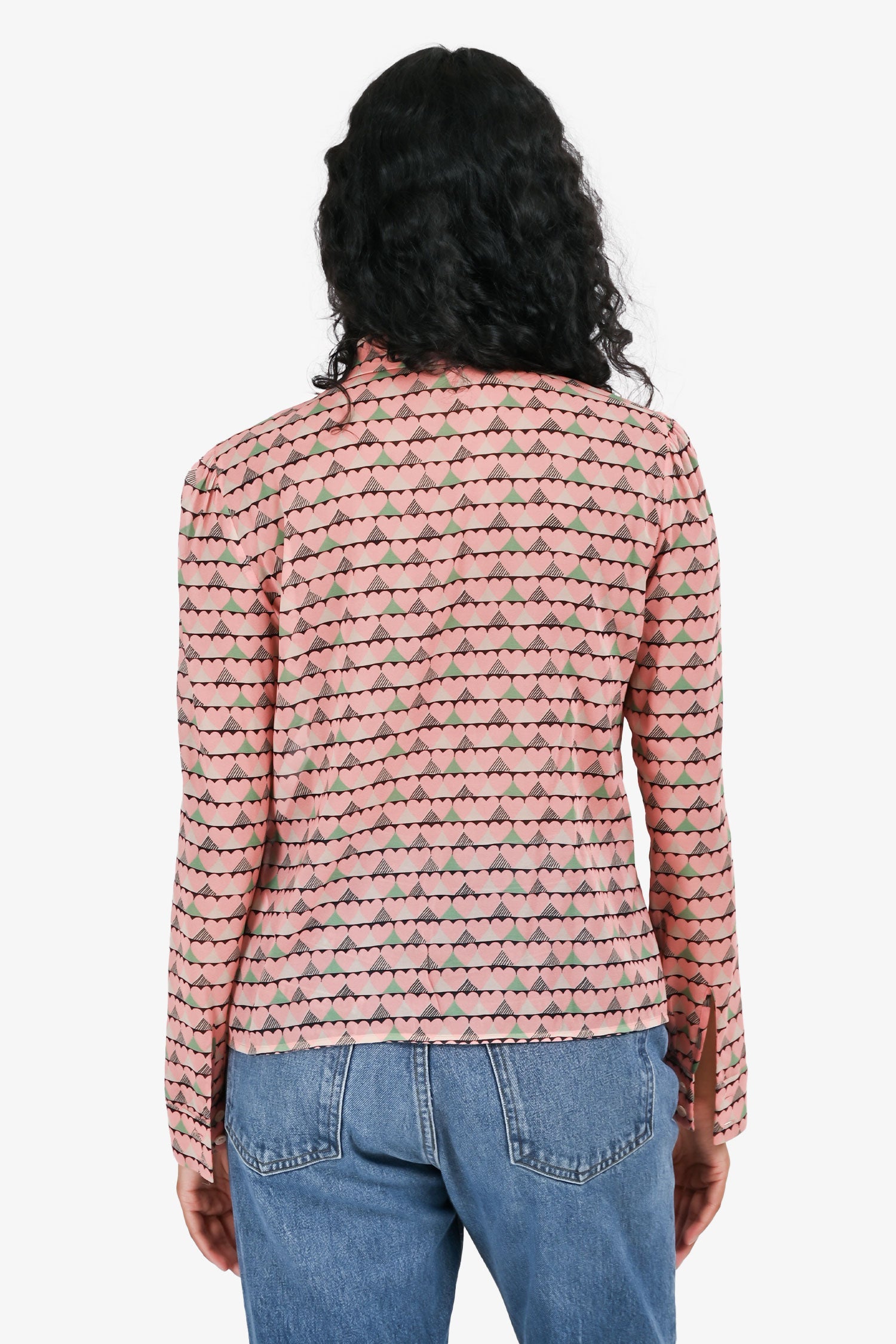 Red Valentino Pink Heart Silk Sheer Blouse Size 40