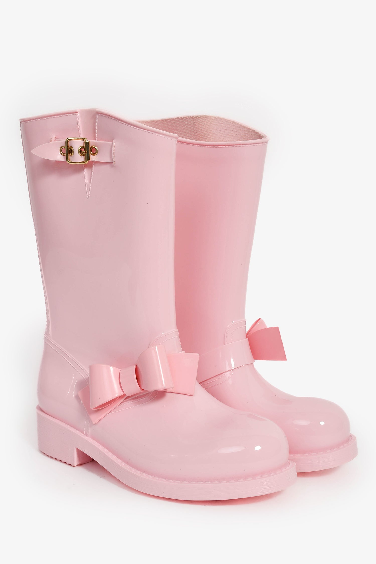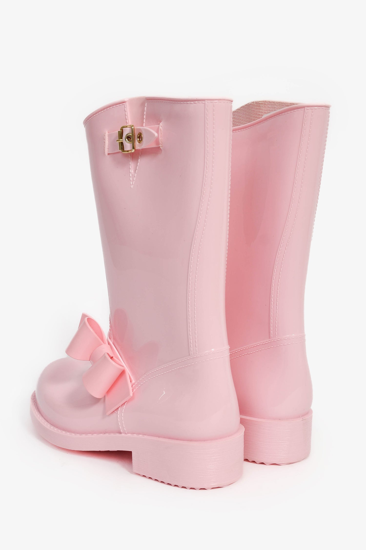 Refresh availabilityRed Valentino Pink Rubber Bow Detail Rain Boots. Pull-on. Round toe. Textile interior. Gold-tone hardware.