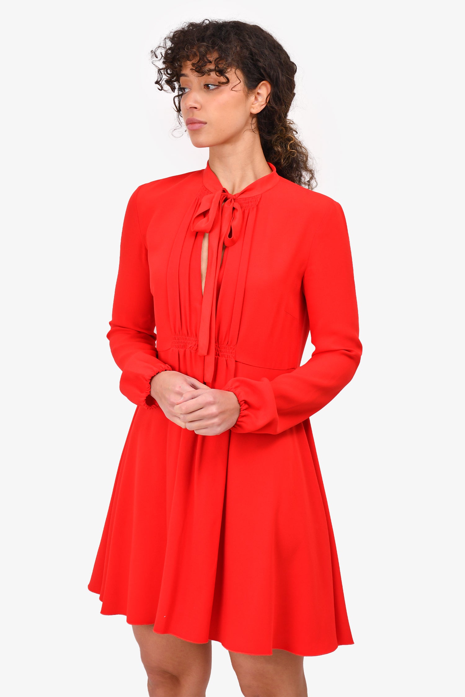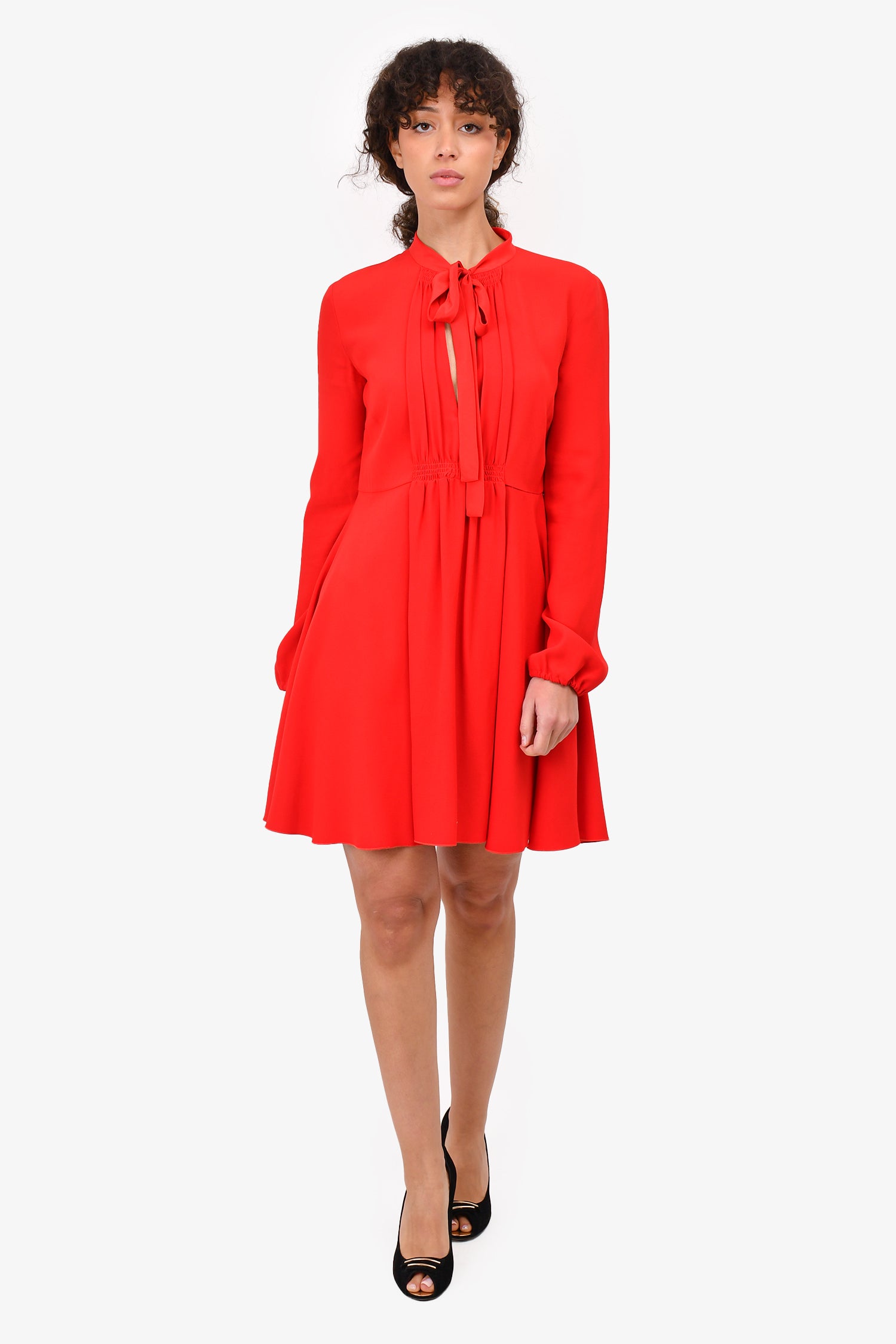Refresh availabilityRed Valentino Red Neck Tie Mini Dress. Back zipper. Elasticated cuffs. Tonal stitching.
