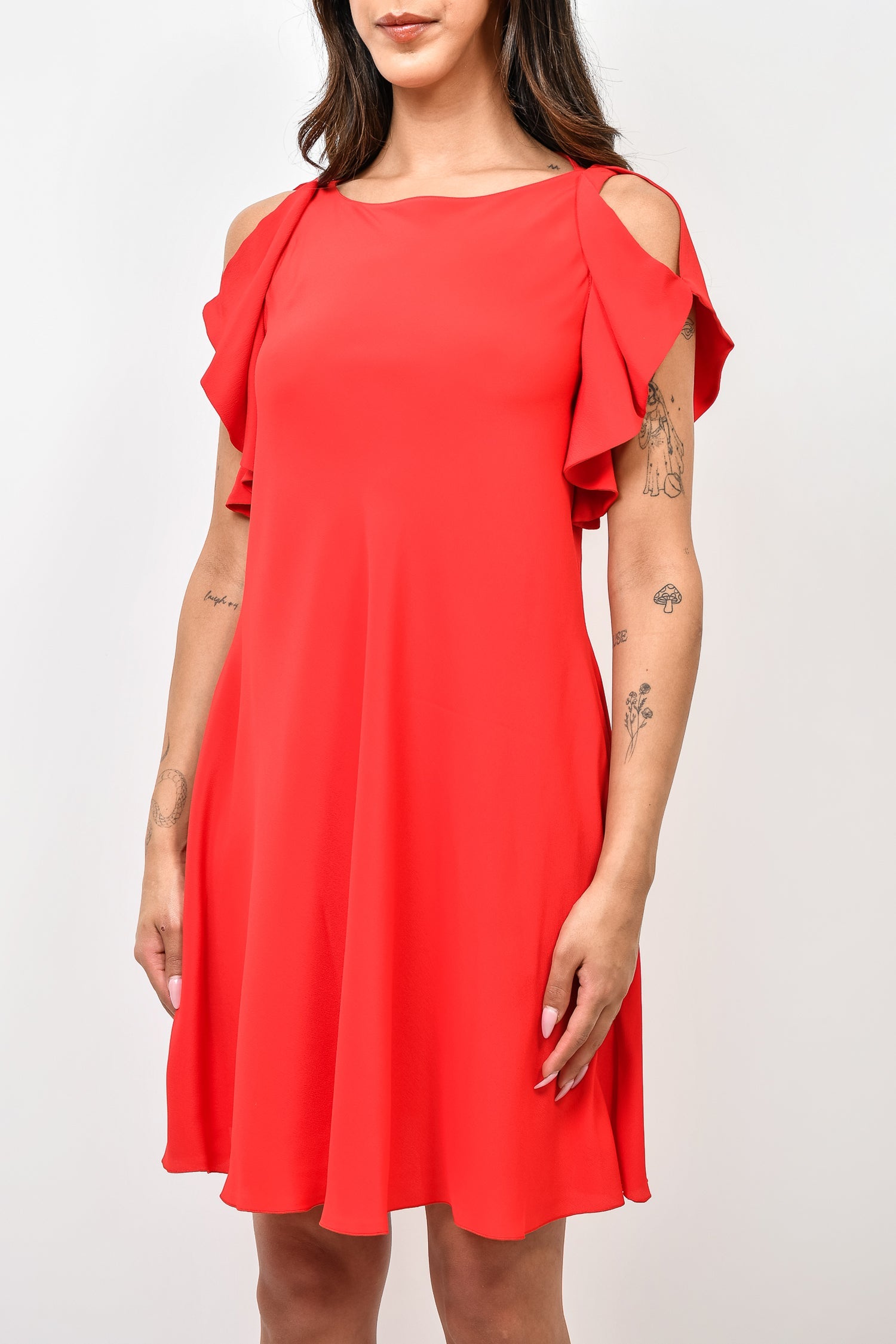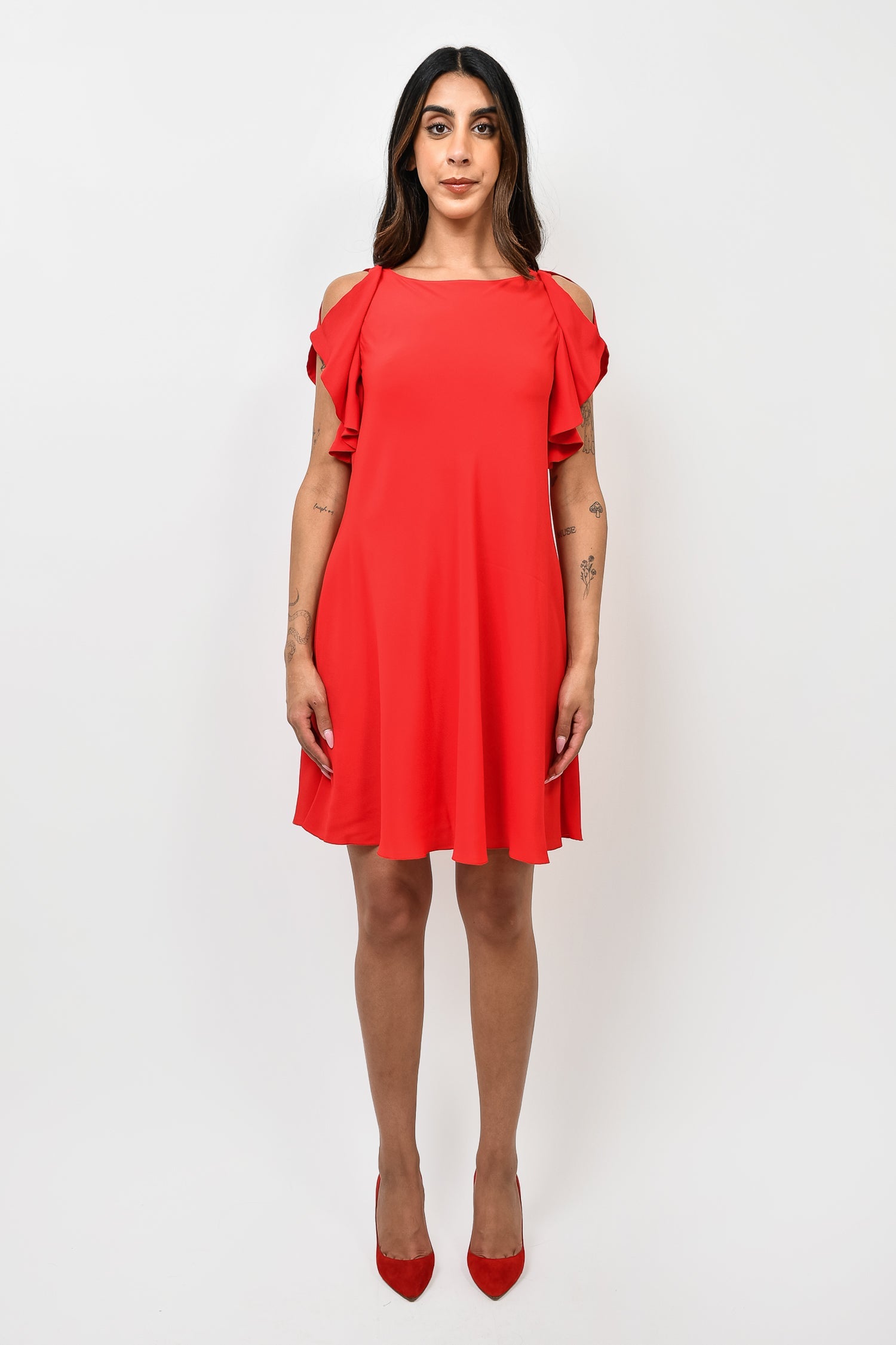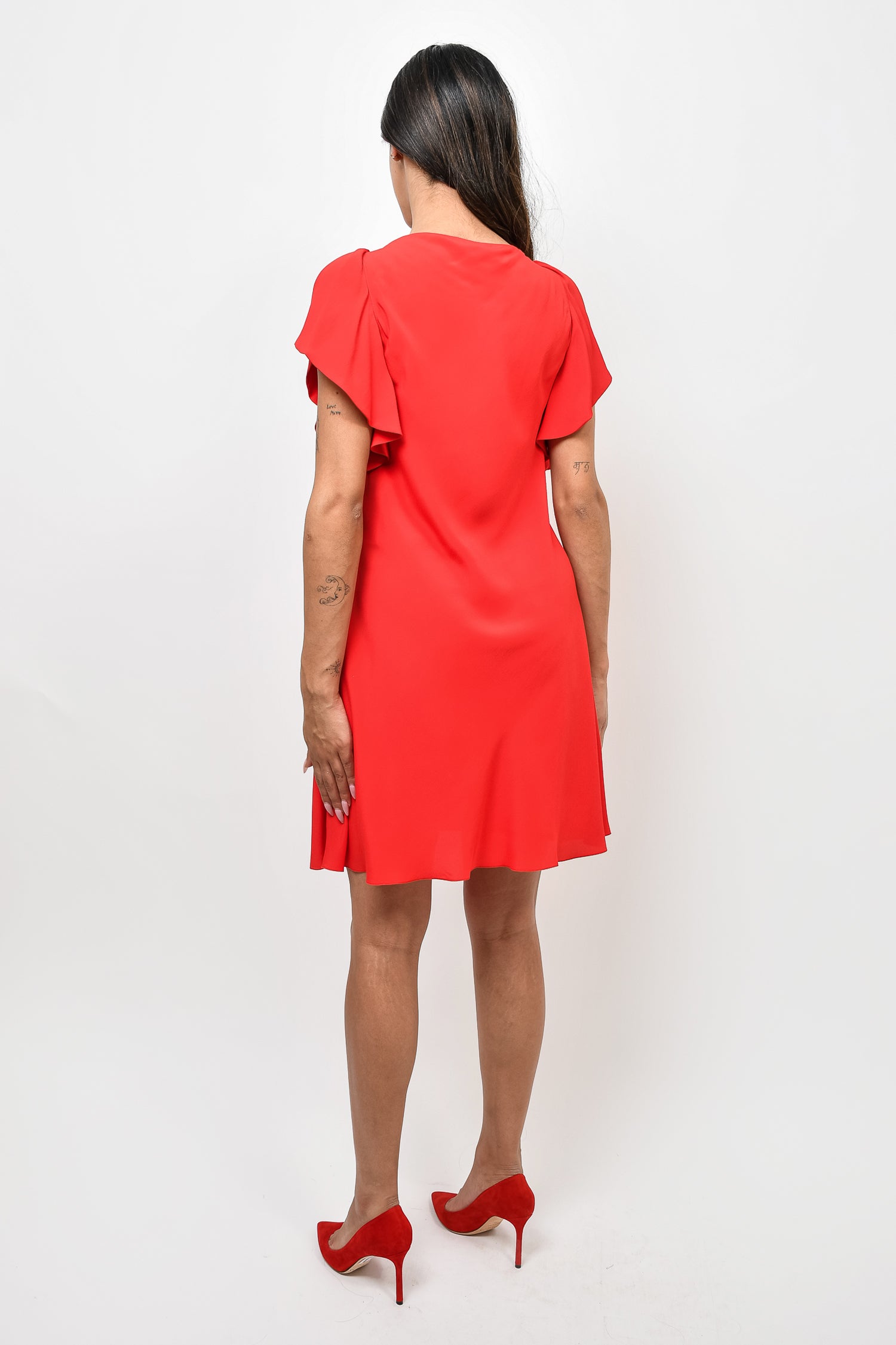 Refresh availabilityRed Valentino Red Ruffle Shift Dress. Unlined. Slip on. Round neckline. Tonal stitching.