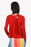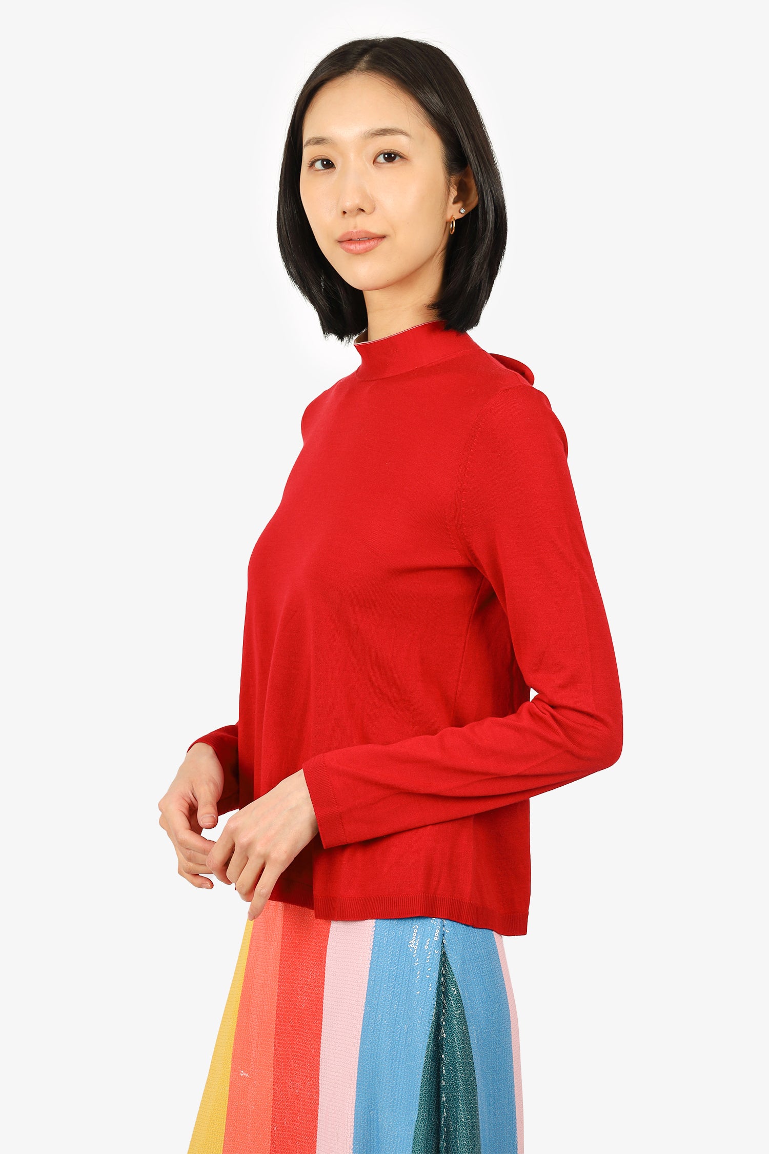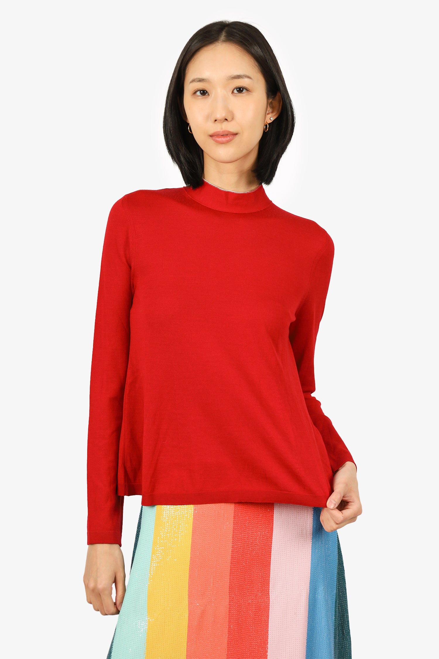 Red Valentino Red/White Wool/Silk Mock Neck Long Sleeve Sweater Size S