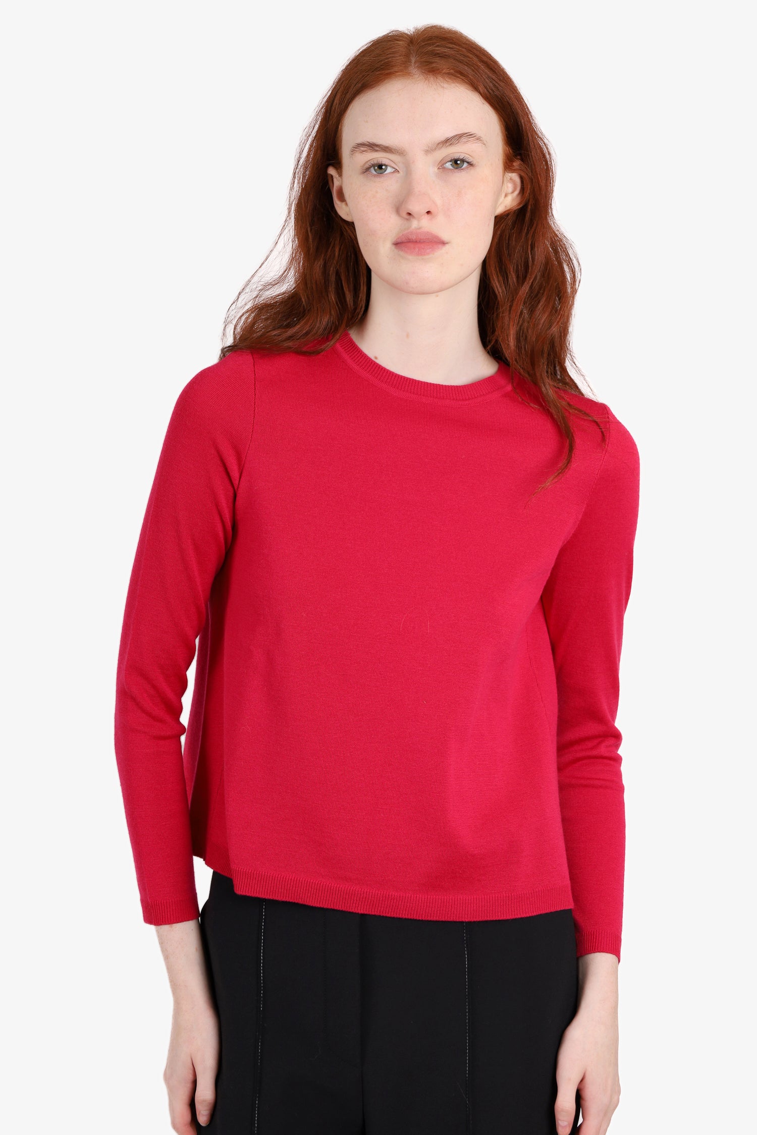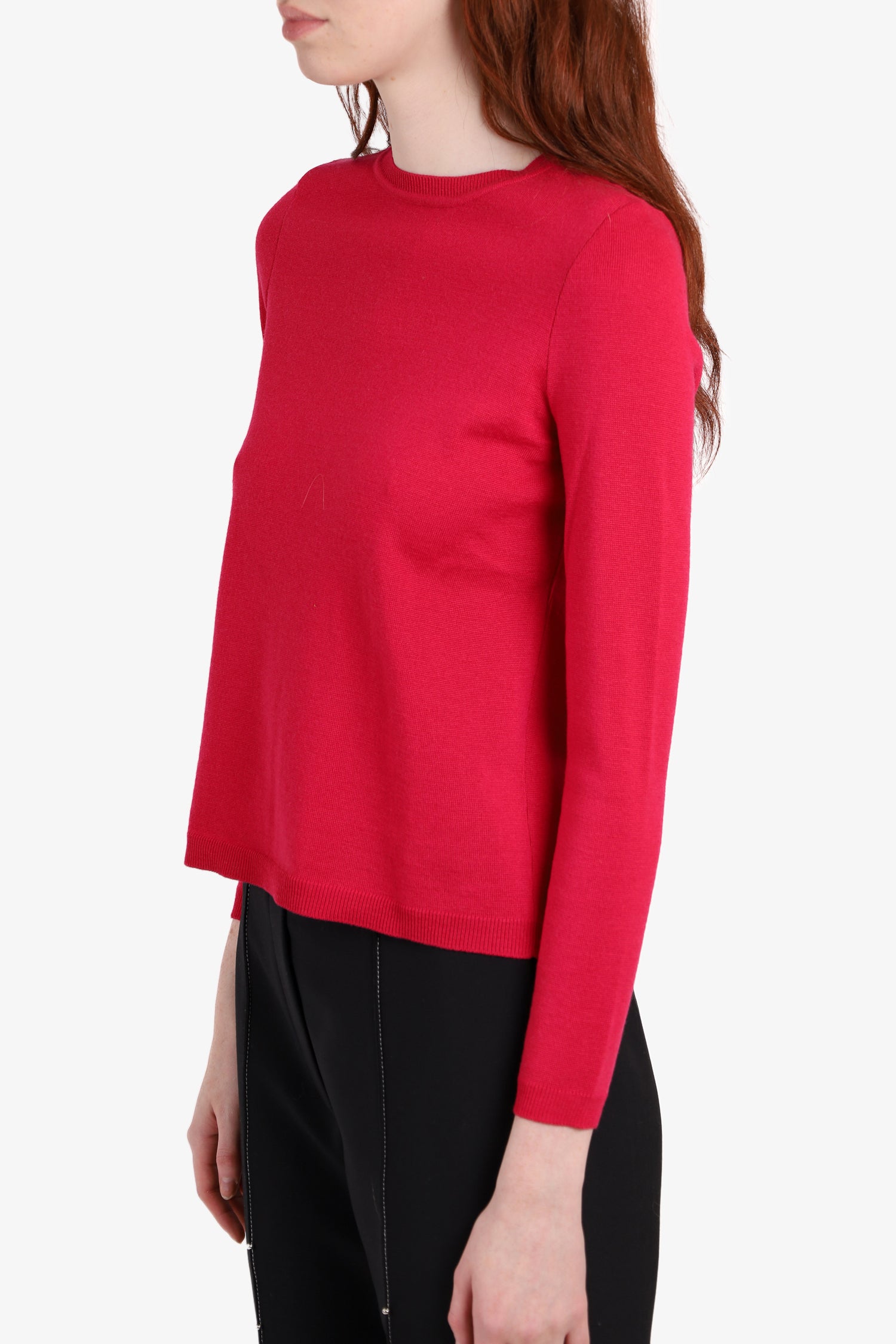 Refresh availabilityRed Valentino Red Wool Long Sleeve Sweater. Round neckline. Ribbed hem & sleeve. Ribbon detailing on the back. Tonal stitching.