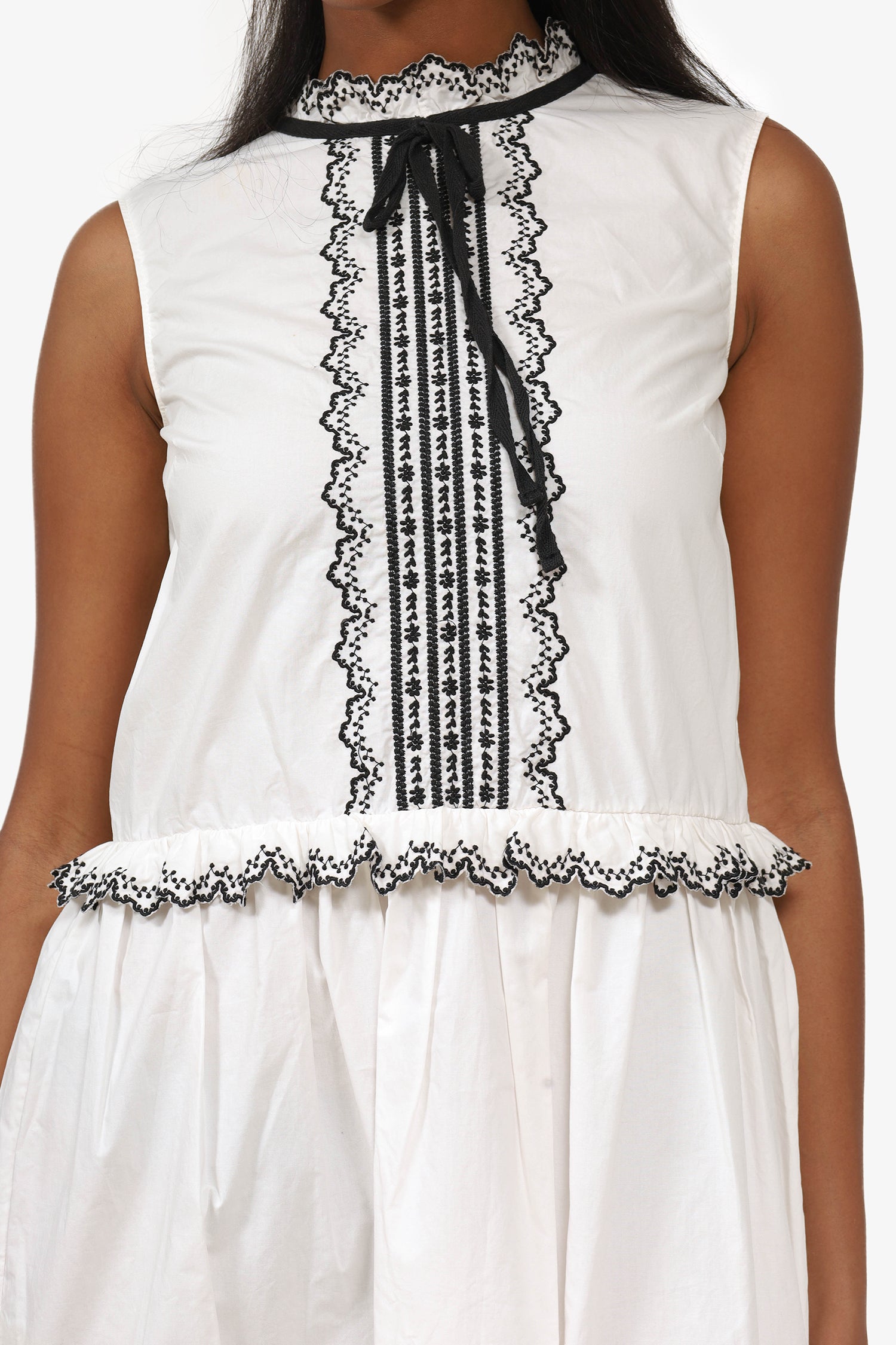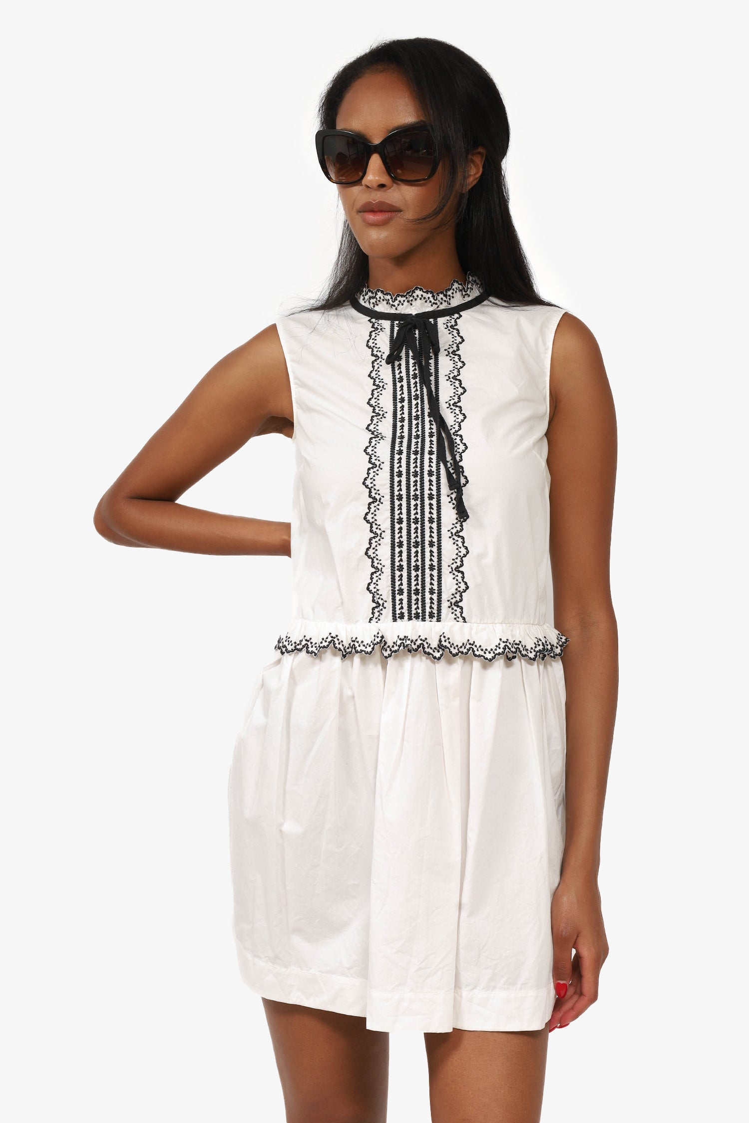 Refresh availabilityRed Valentino White/Black Sleeveless Mini Dress. Rear zip closure. High neckline. Tonal stitching.