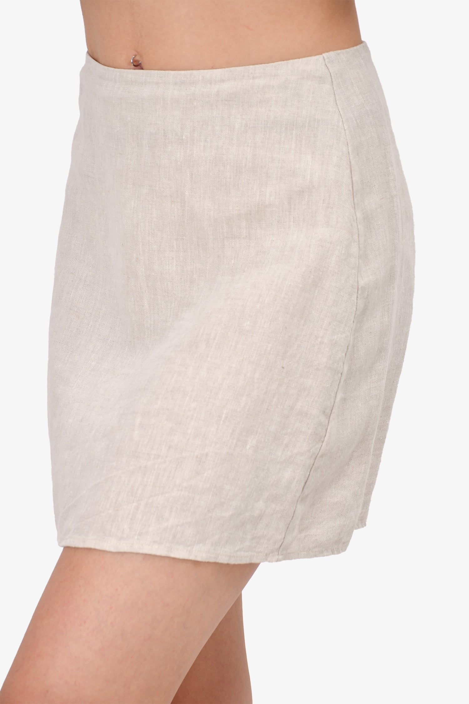 Refresh availabilityReformation Beige Linen Mini Skirt. Rear zip closure. Unlined.