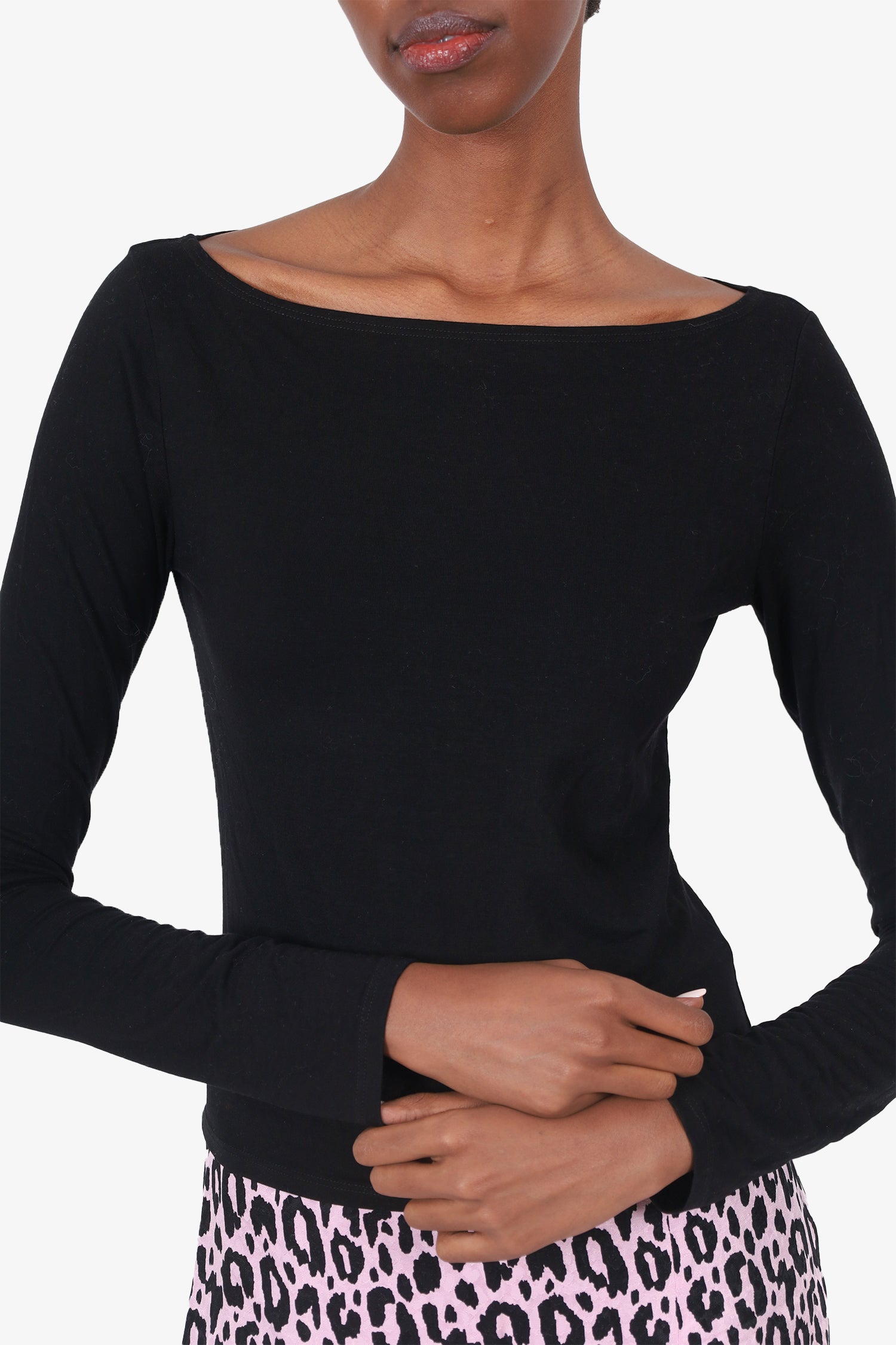 Refresh availabilityReformation Black Boat Neck Top. Pull-on. Boat-neckline. Tonal stitching.